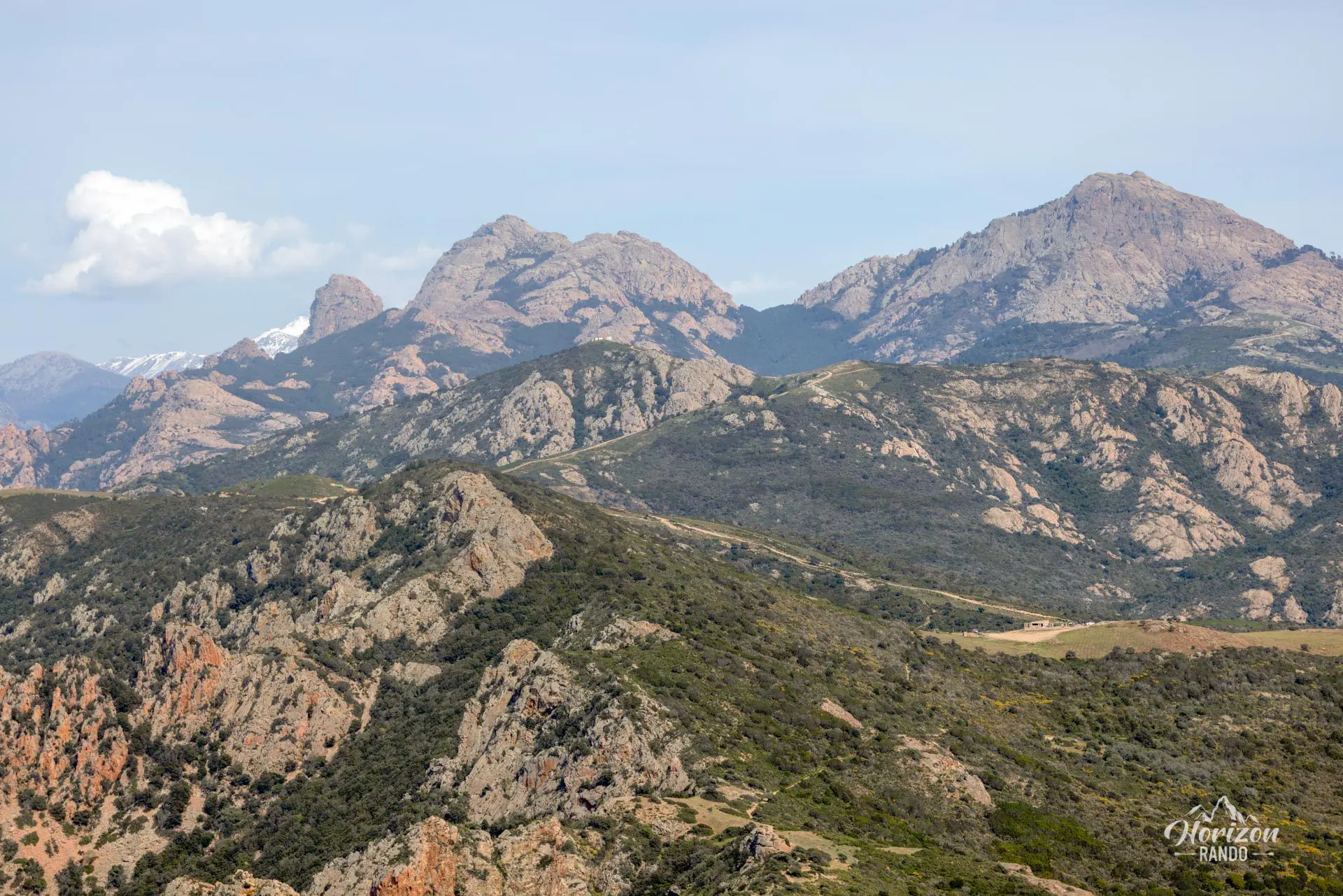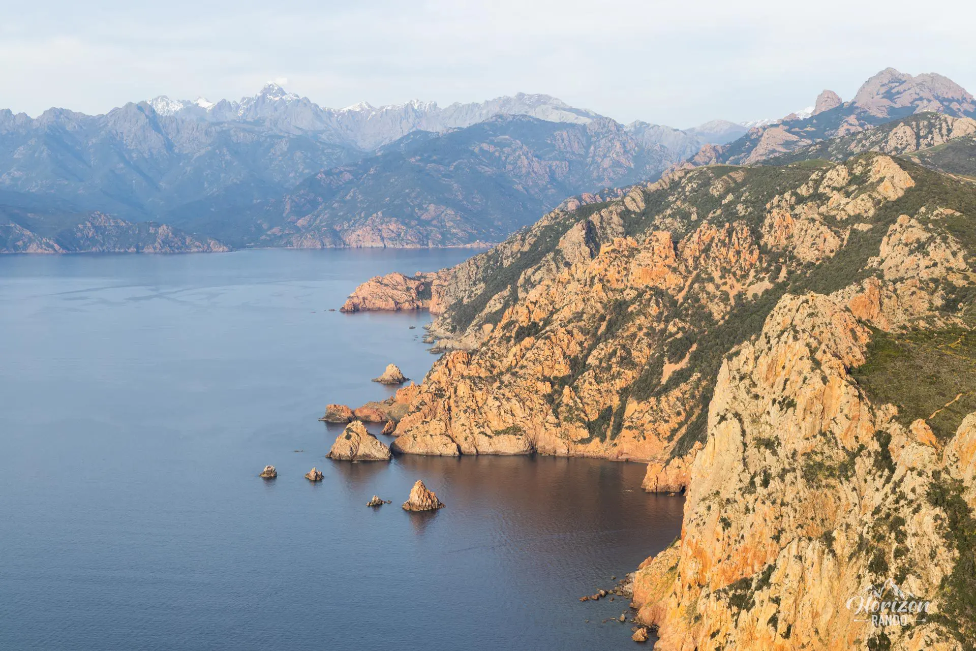 - Les panoramas exceptionnels à 360° depuis le sommet : vue plongeante sur les golfes de Porto et de Sagone, la réserve de Scandola et les sommets corses en arrière-plan.