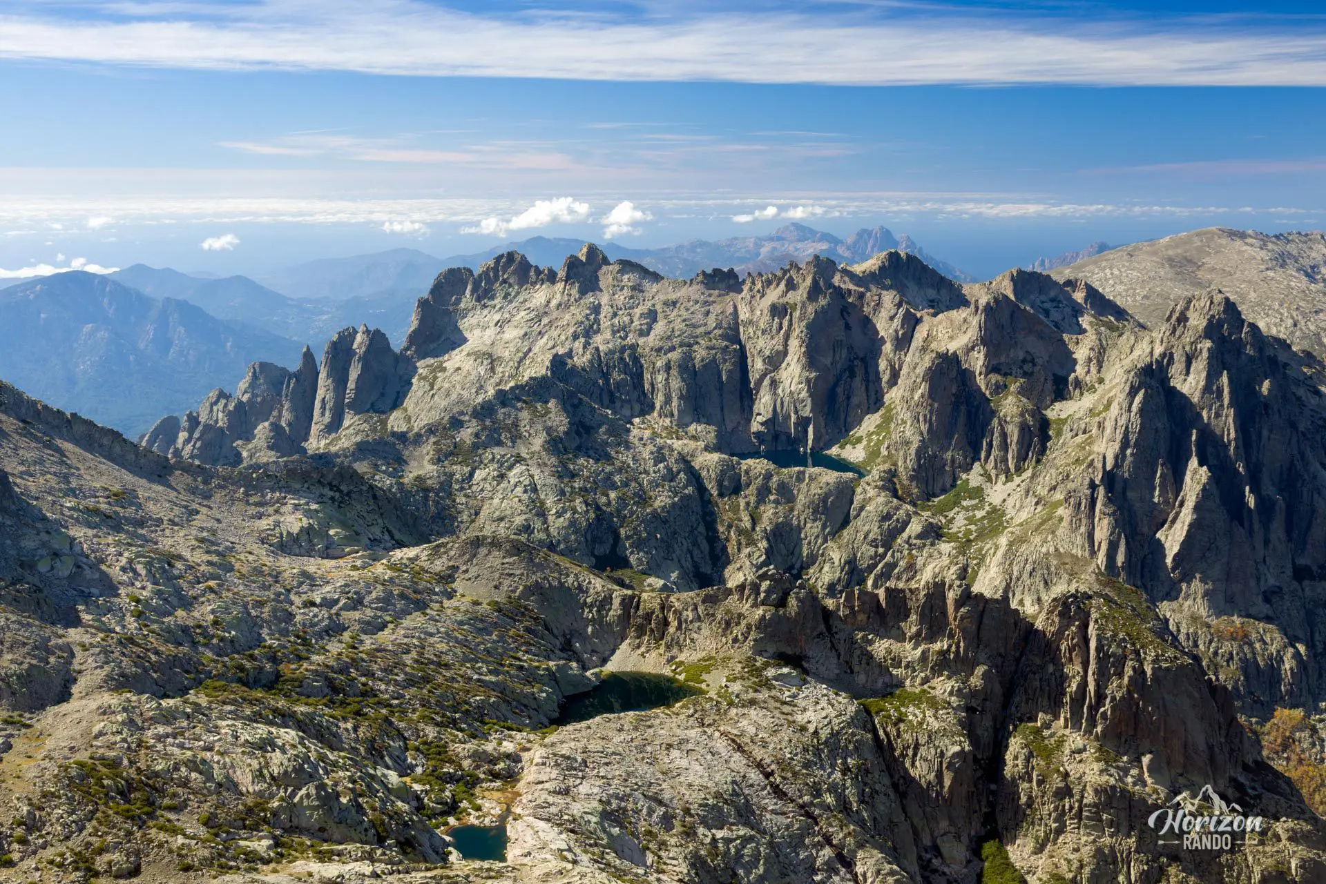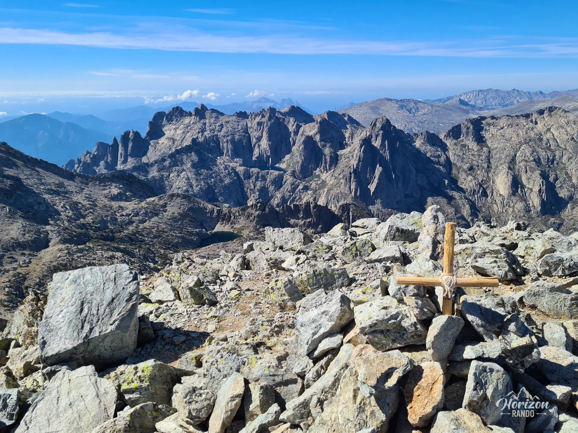 - Panorama sommital exceptionnel embrassant les grands massifs corses (Rotondo, Cinto), les lacs de Rinoso et Capitello et même jusqu'à la mer Méditerranée par temps clair