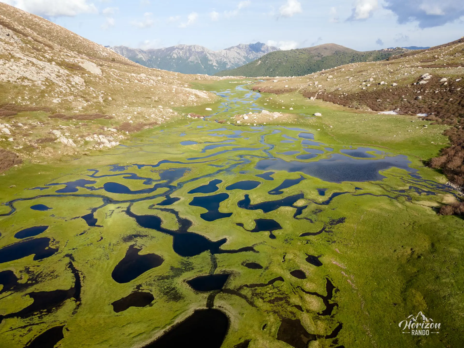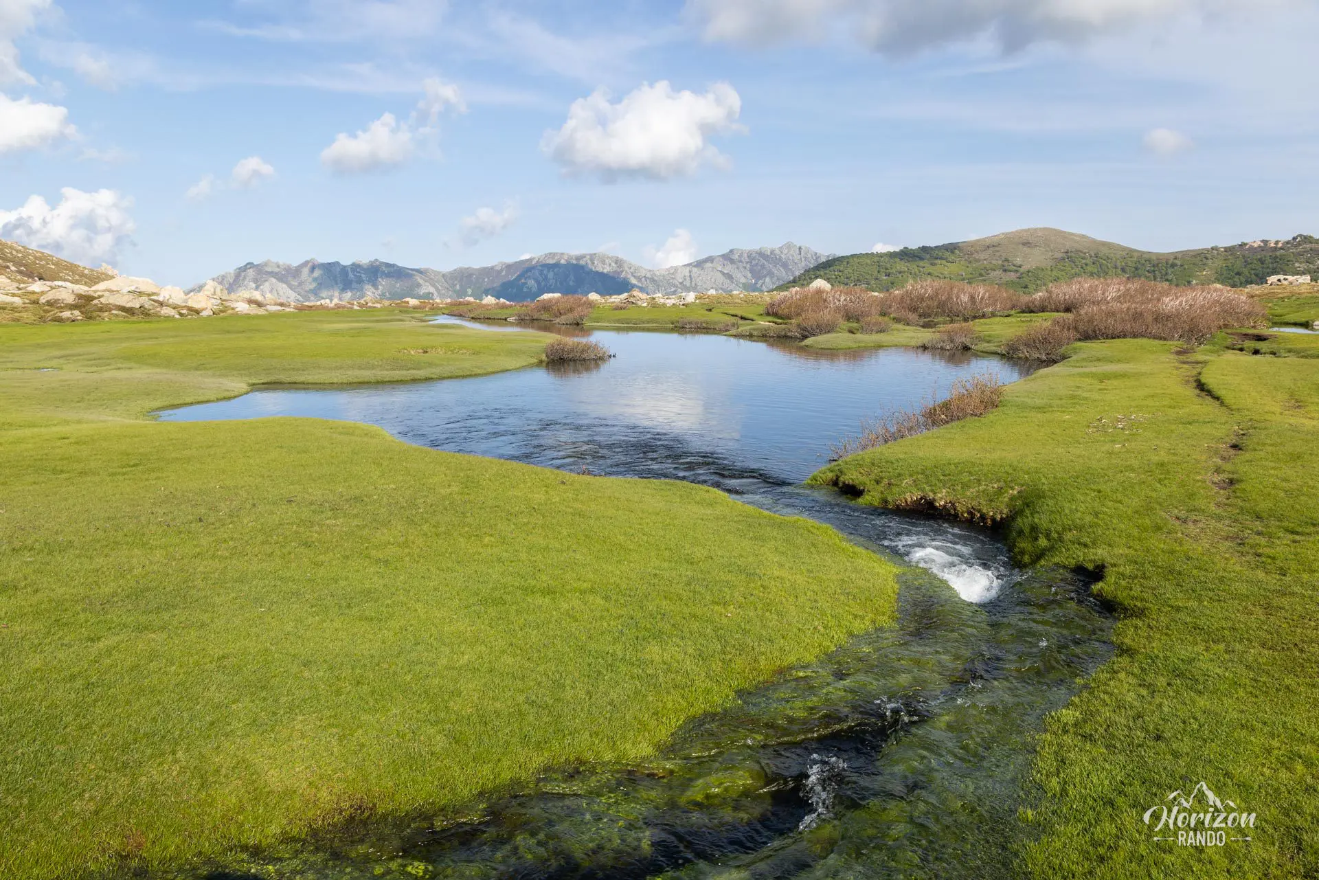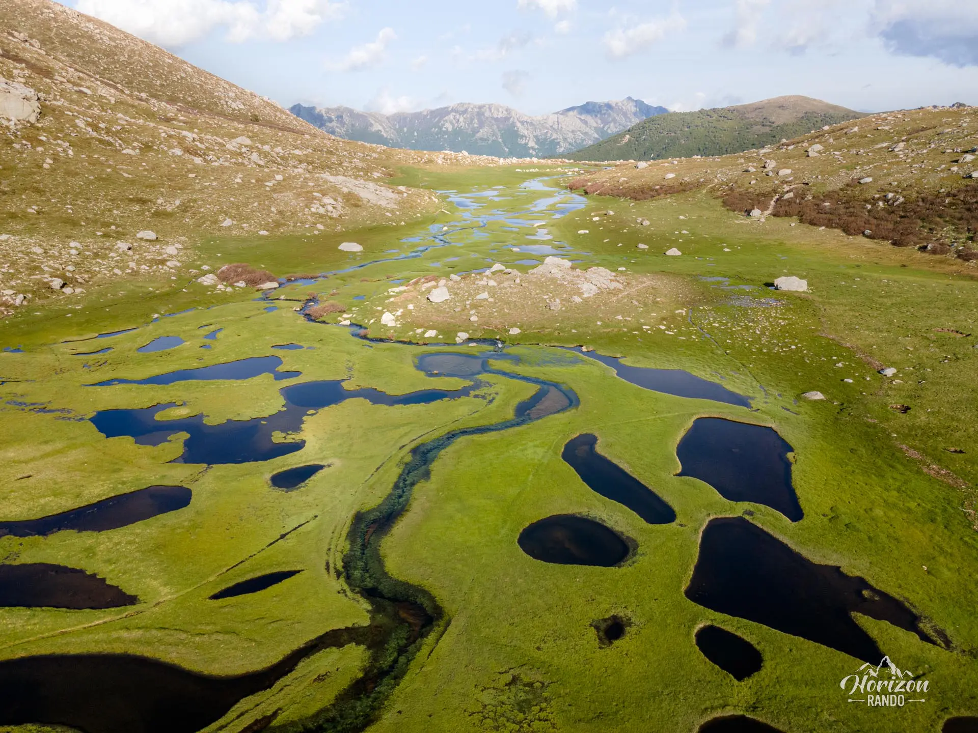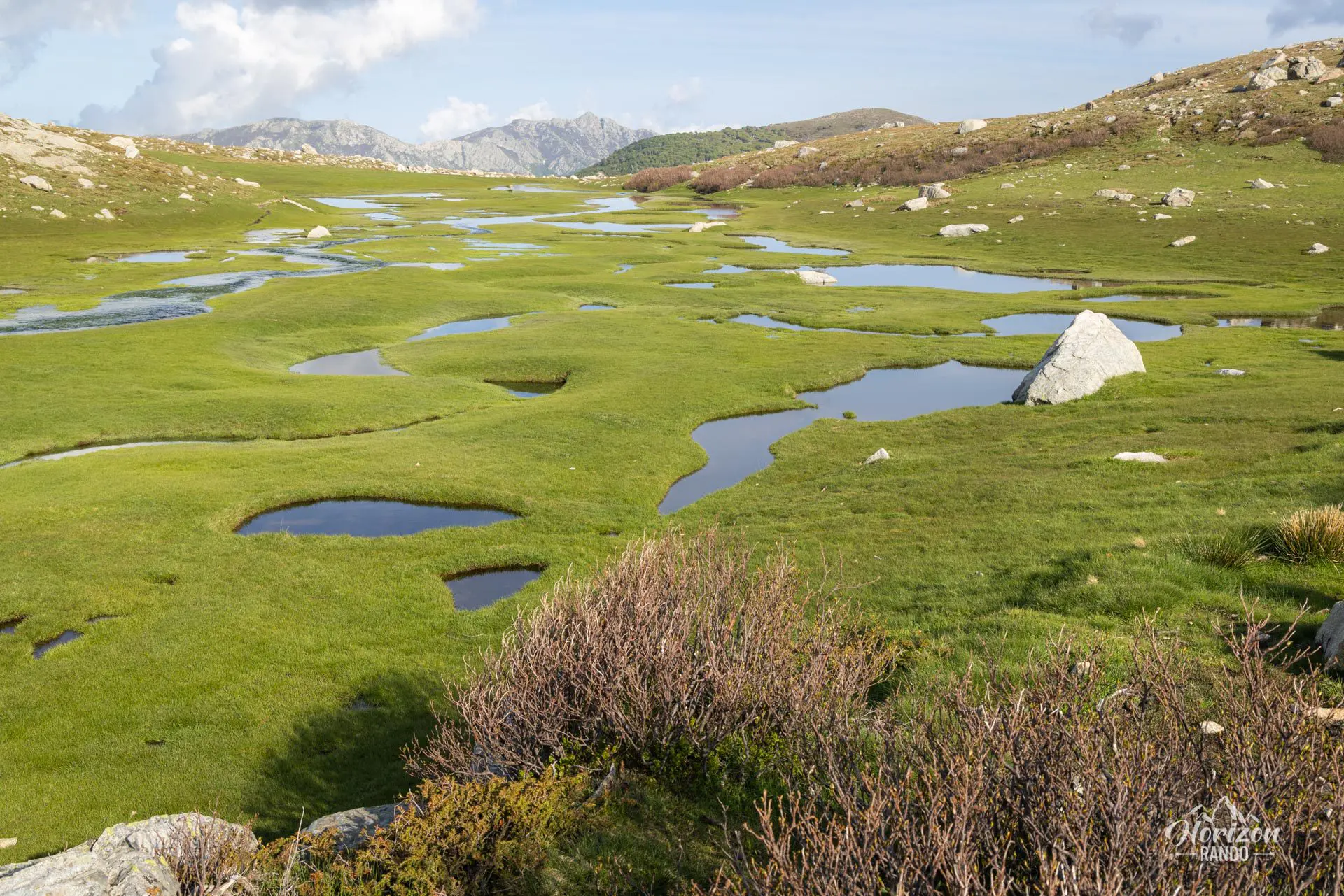 Cette randonnée vous mènera aux bergeries des Pozzi, où vous découvrirez les pozzines du Renoso, de vastes étendues planes parsemées de tourbières et de mares d'eau claire reliées par des ruisselets. Ce paysage pittoresque constitue un décor inattendu en Corse, contrastant avec les paysages arides habituels de l'île.