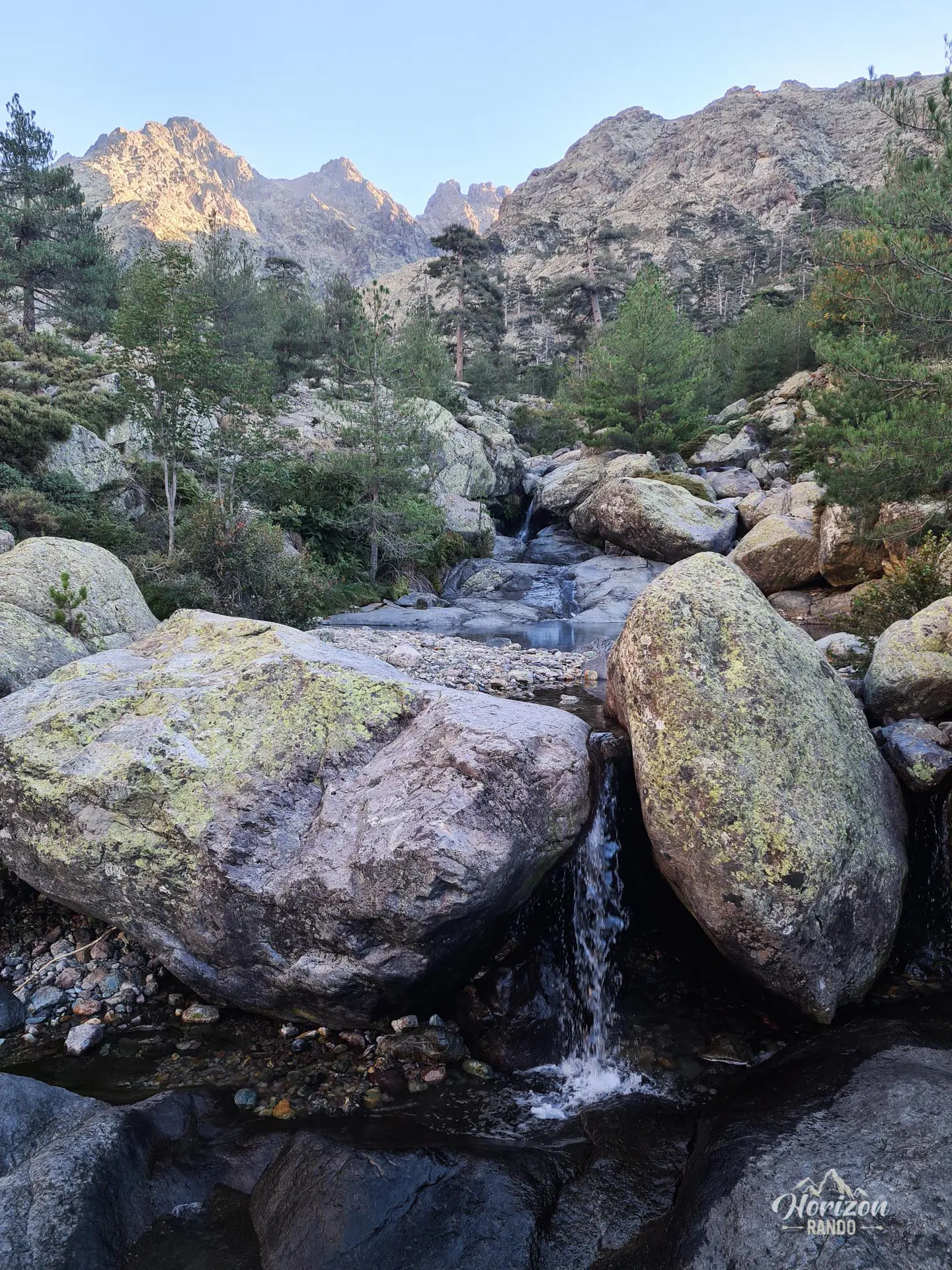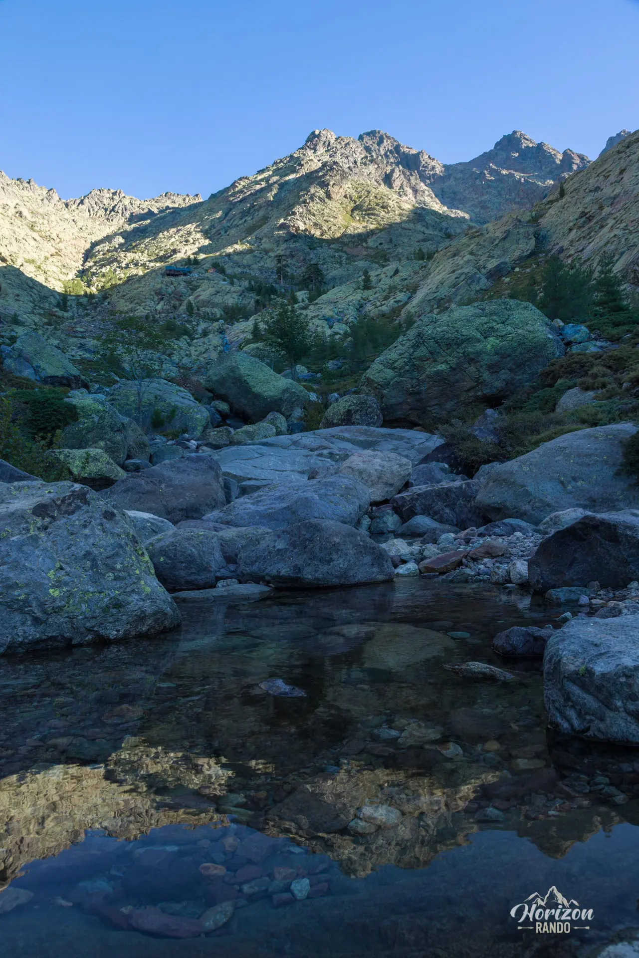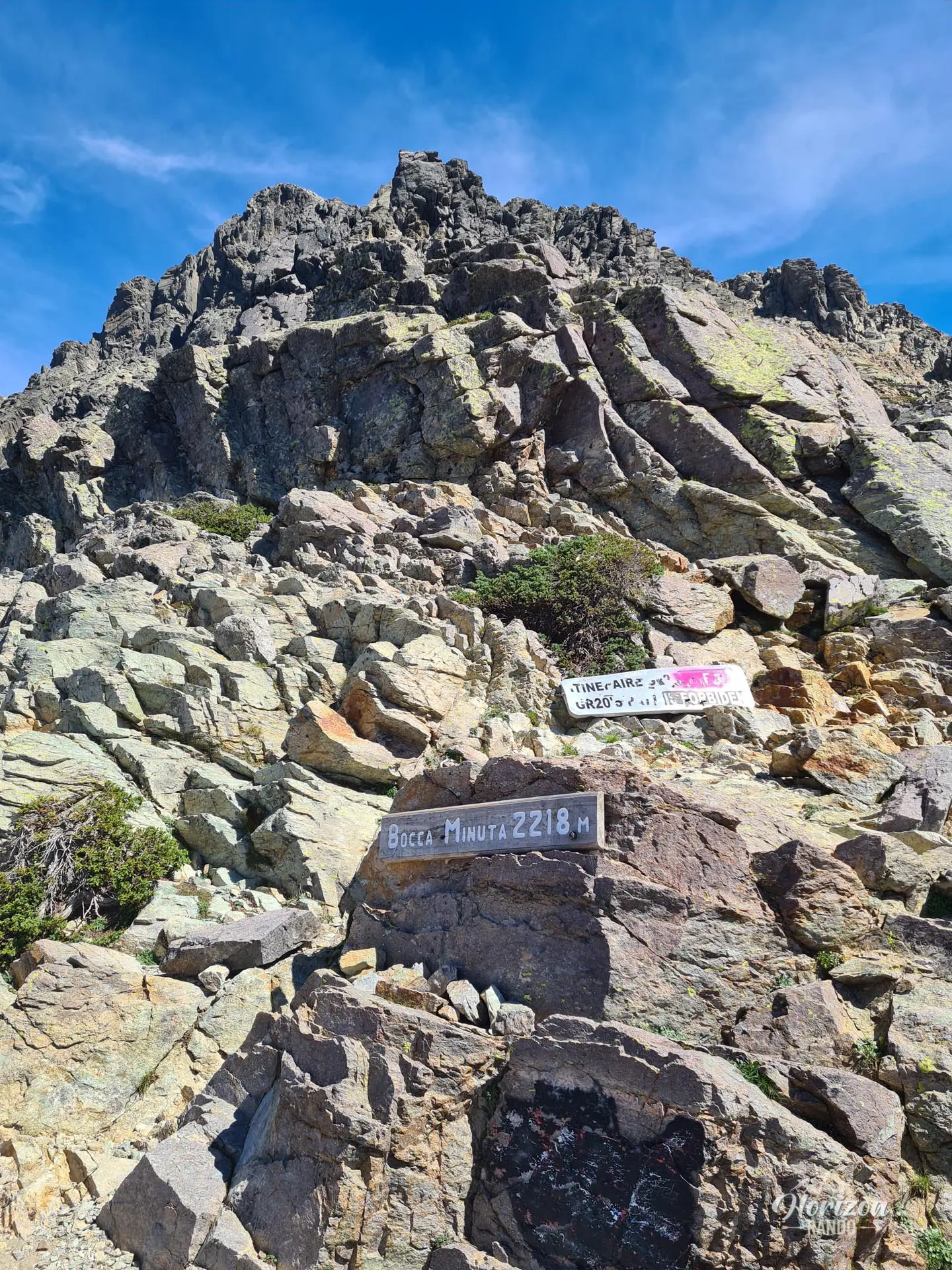 Au-delà du refuge, vous empruntez l'ancien tracé du GR20 menant à Bocca Minuta. Bien que le balisage soit toujours présent, il n'est plus renouvelé et s'estompe progressivement au fil des années. L'environnement se transforme alors radicalement : le sentier traverse un univers très minéral constitué de dalles rocheuses et d'éboulis, avec une montée soutenue et accidentée jusqu'au col.