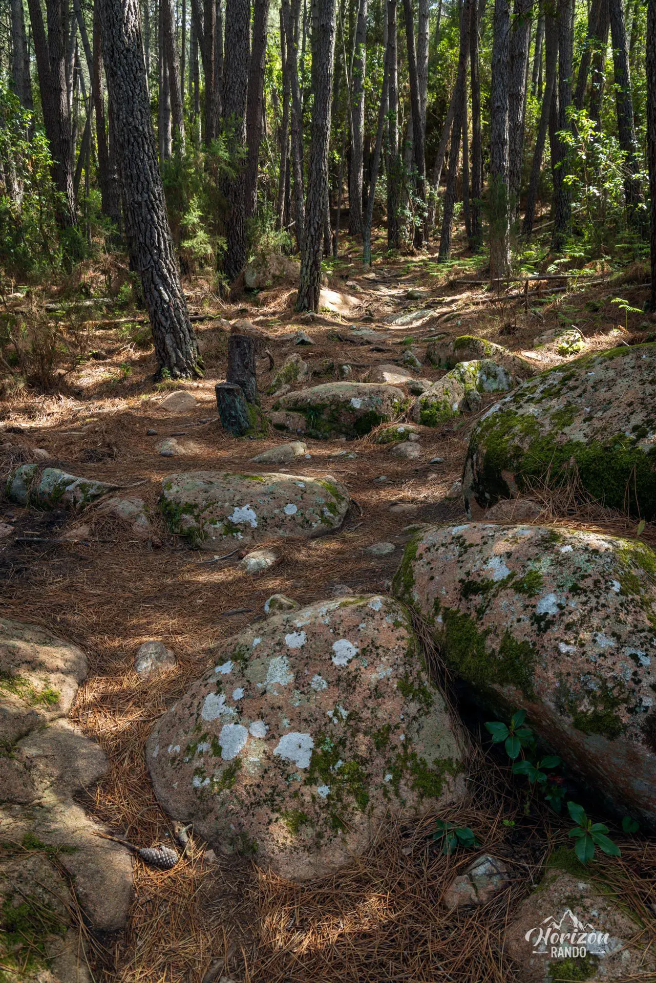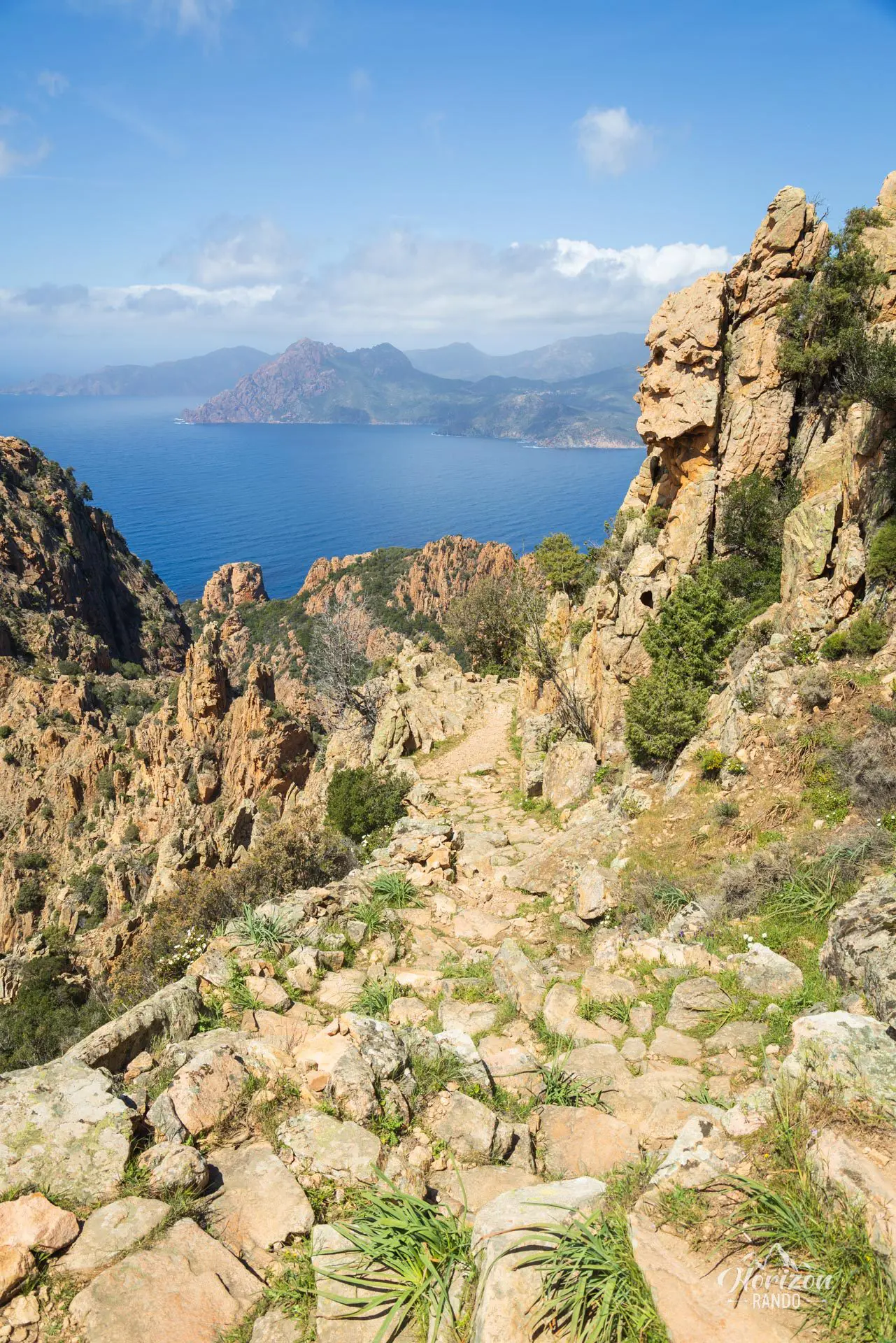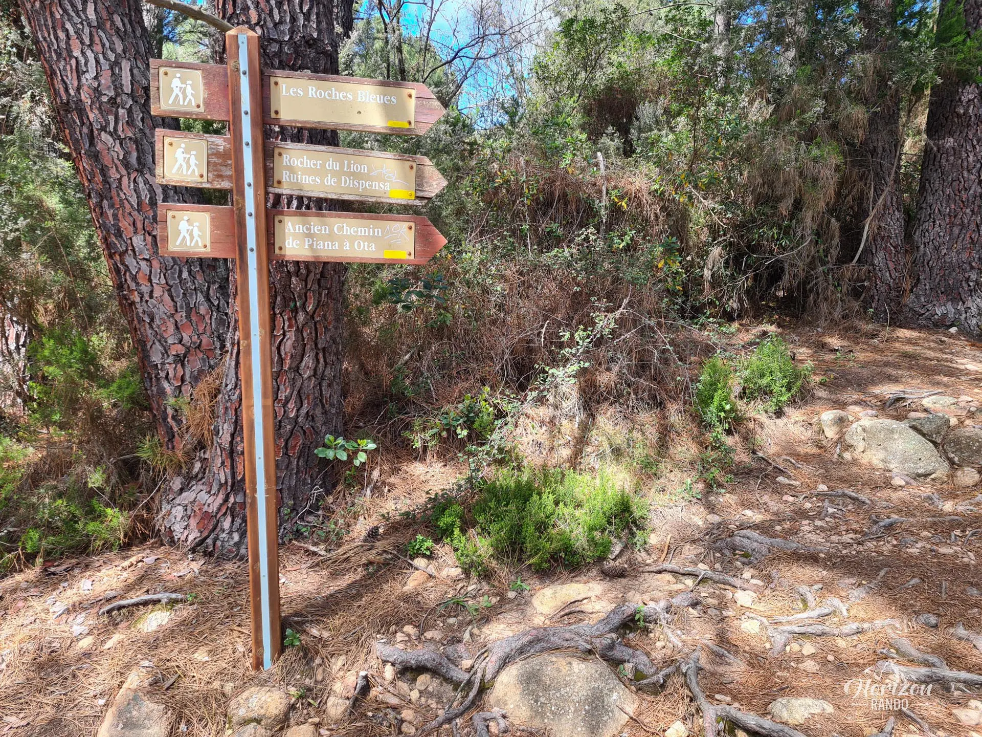 Le parcours emprunte l'ancien sentier muletier pavé et bordé d'un magnifique mur en pierres sèches qui reliait Piana à Porto au XIXe siècle, avant la construction de la route. Cette boucle facile alterne entre des panoramas époustouflants sur les calanques et une traversée paisible à travers la forêt de pins de Piana.