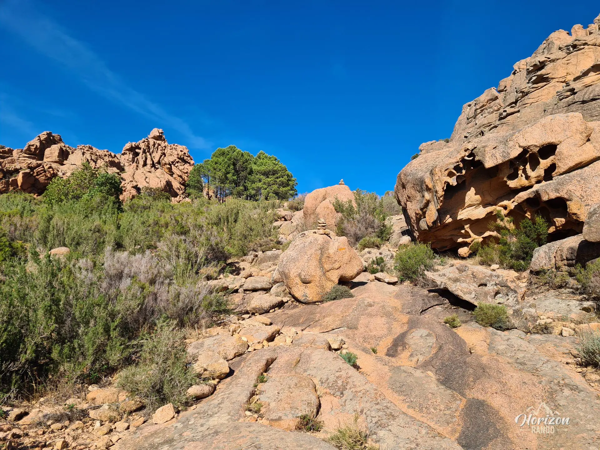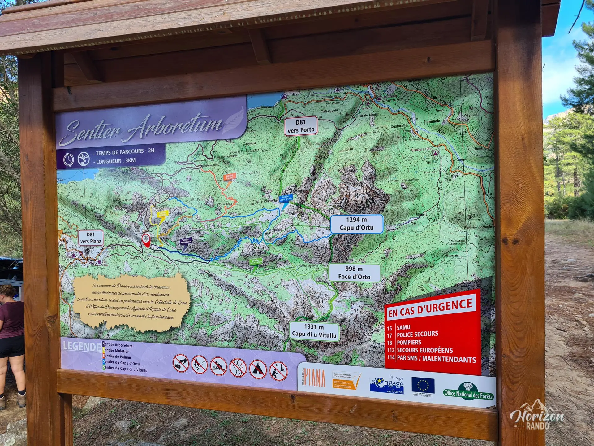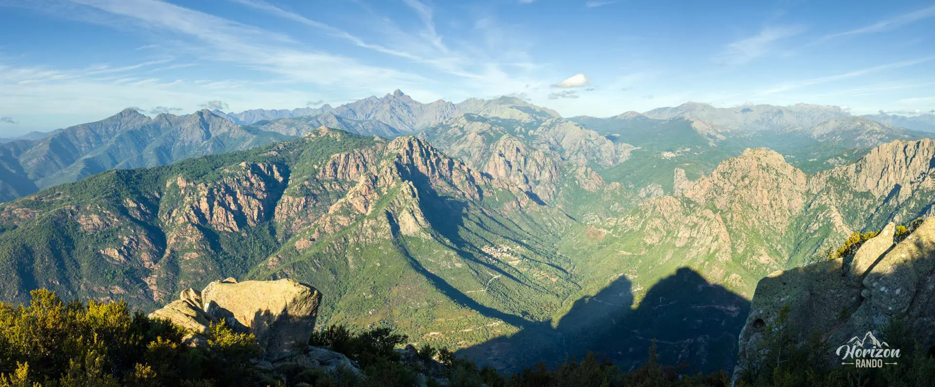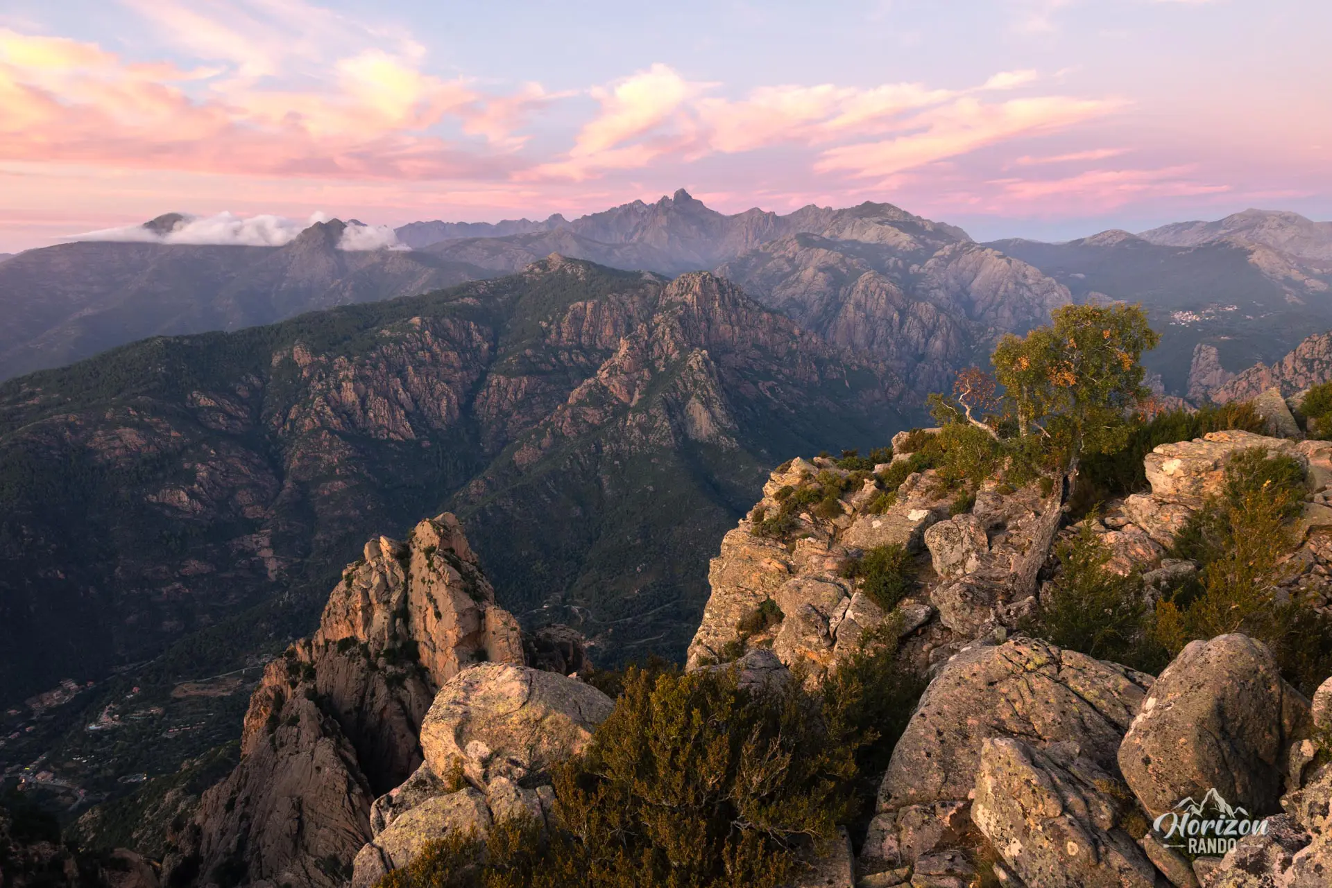 Le parcours évolue d'abord à l'ombre de la forêt de pins de Piana, avant de basculer sur un terrain rocailleux et minéral où le panorama se dévoile progressivement jusqu'au sommet.