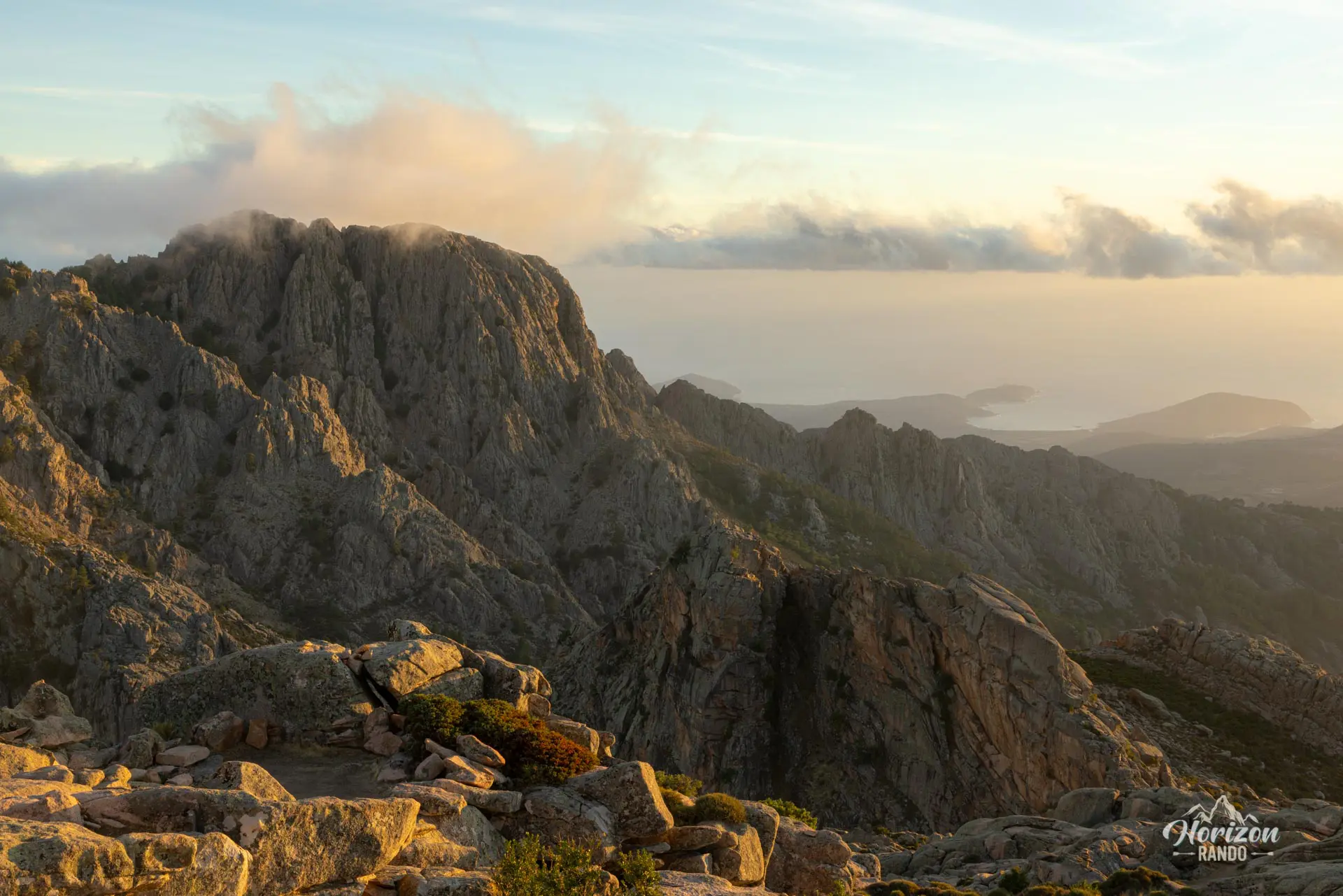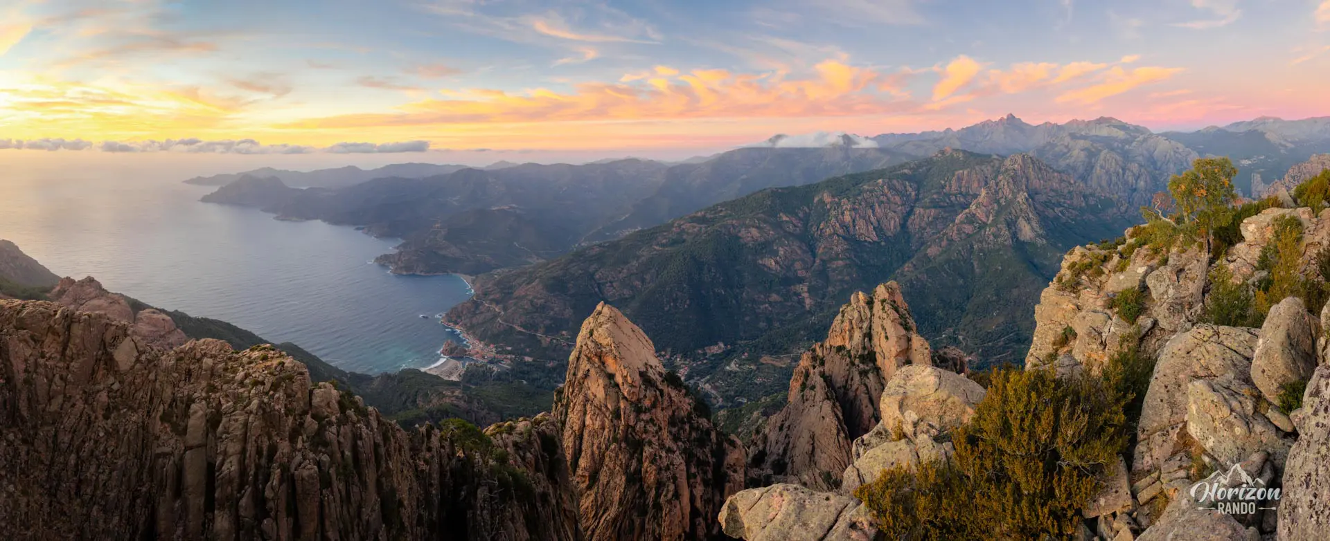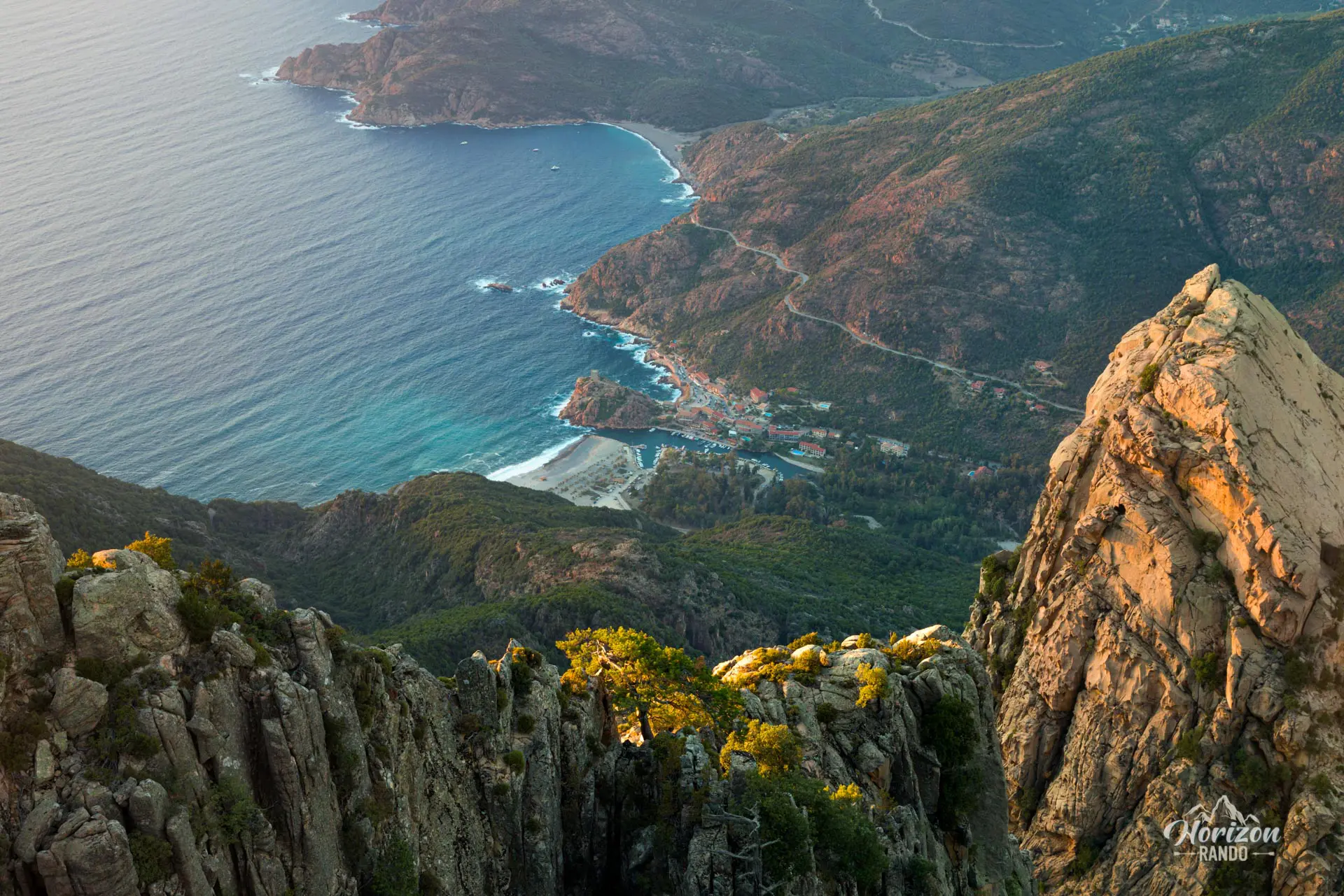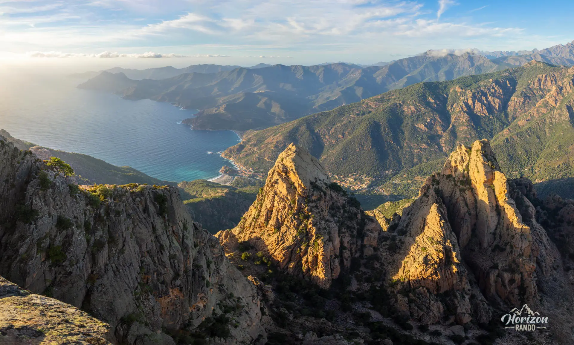 - Un panorama exceptionnel depuis le sommet : vue plongeante sur le golfe de Porto, le Capo Rosso, le Capu di u Vitullu, et vers l'est les sommets emblématiques du massif du Cinto dont la Paglia Orba.