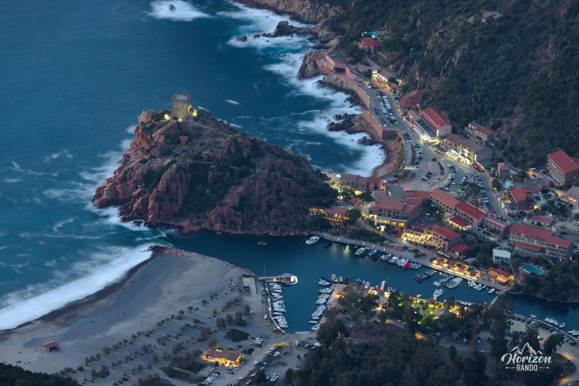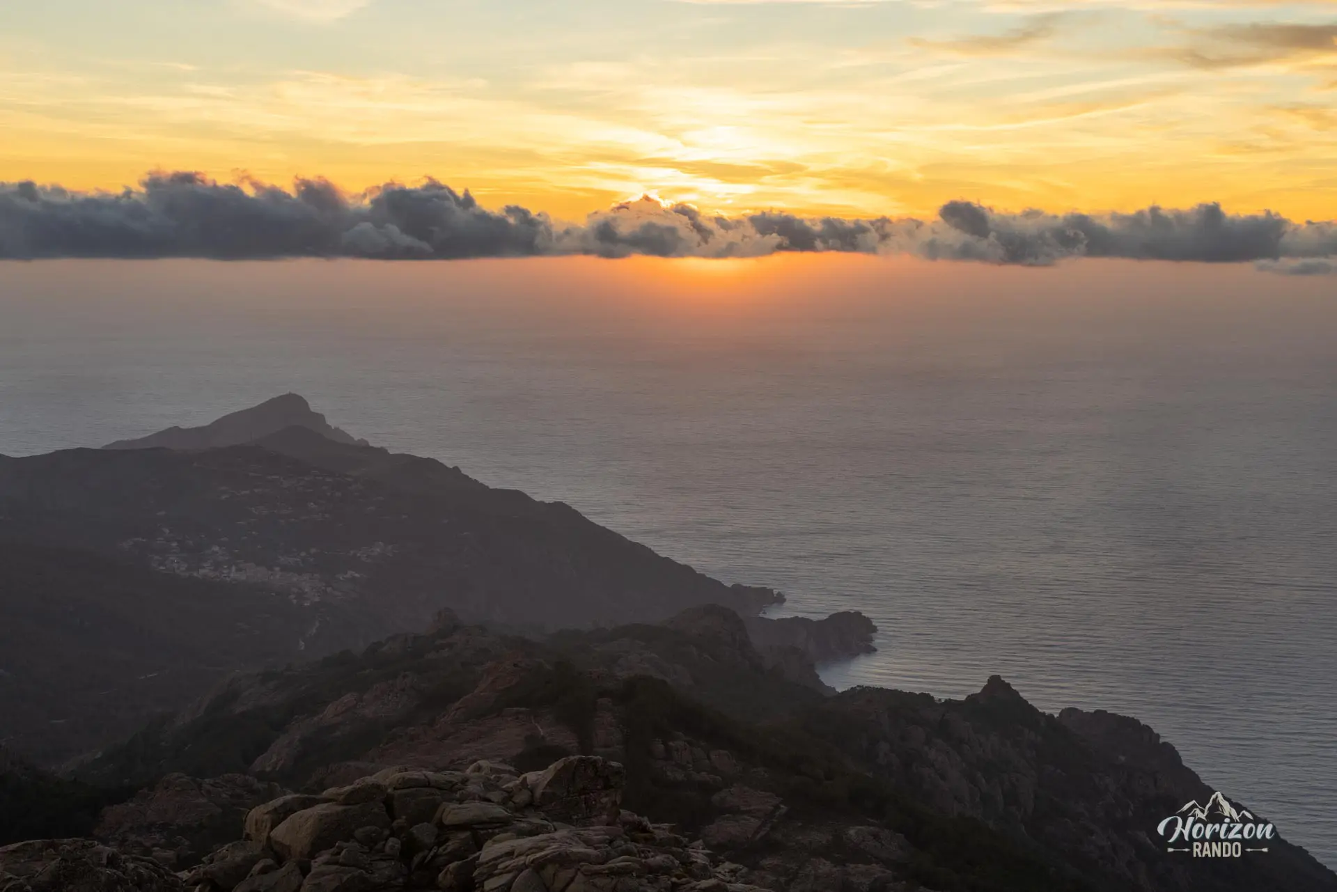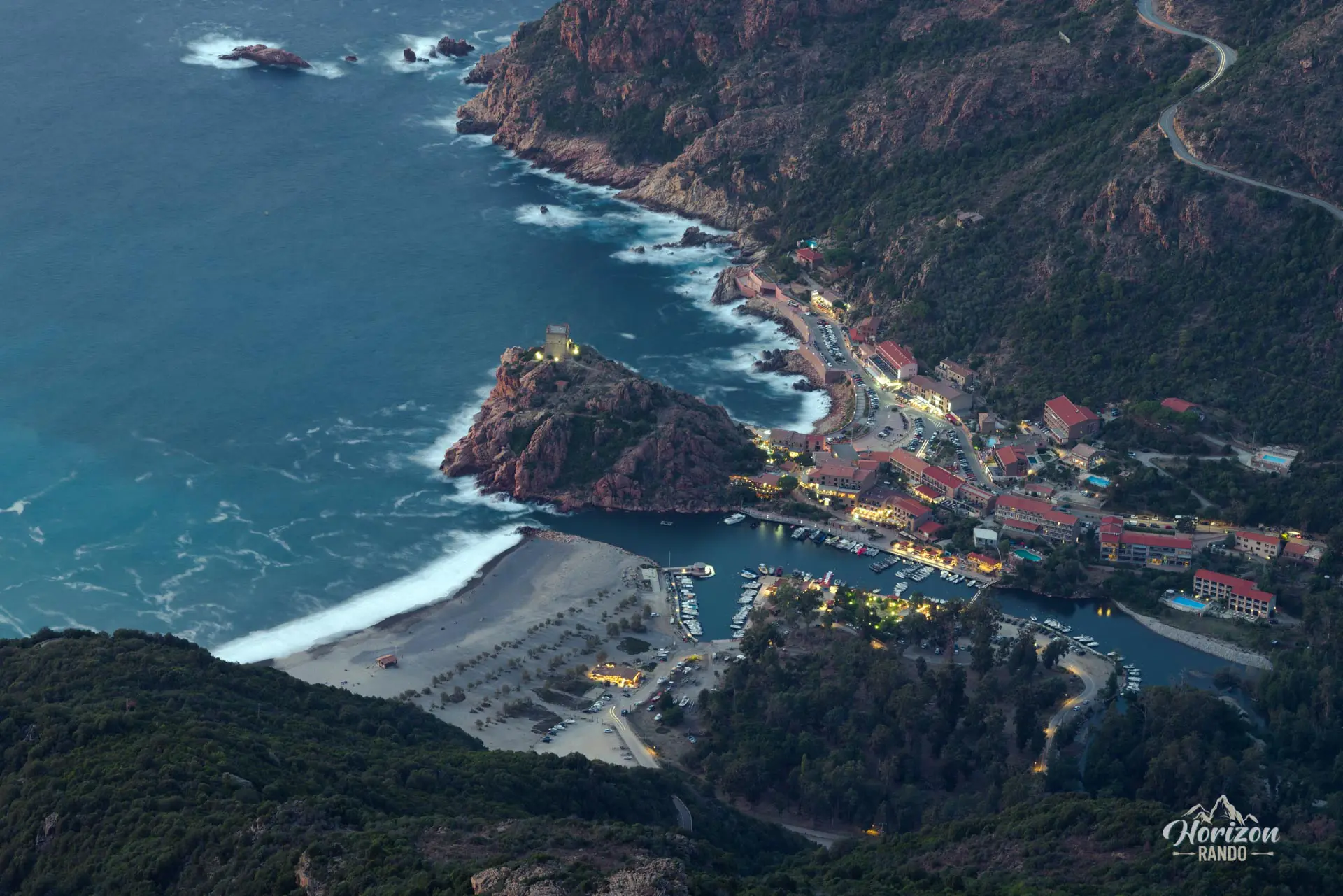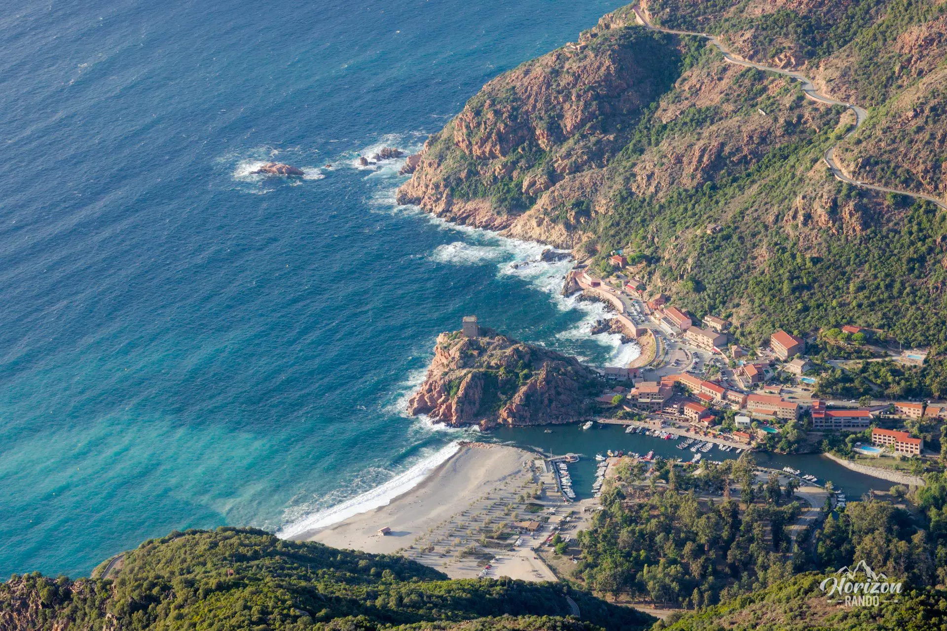 - Un panorama exceptionnel depuis le sommet : vue plongeante sur le golfe de Porto, le Capo Rosso, le Capu di u Vitullu, et vers l'est les sommets emblématiques du massif du Cinto dont la Paglia Orba.