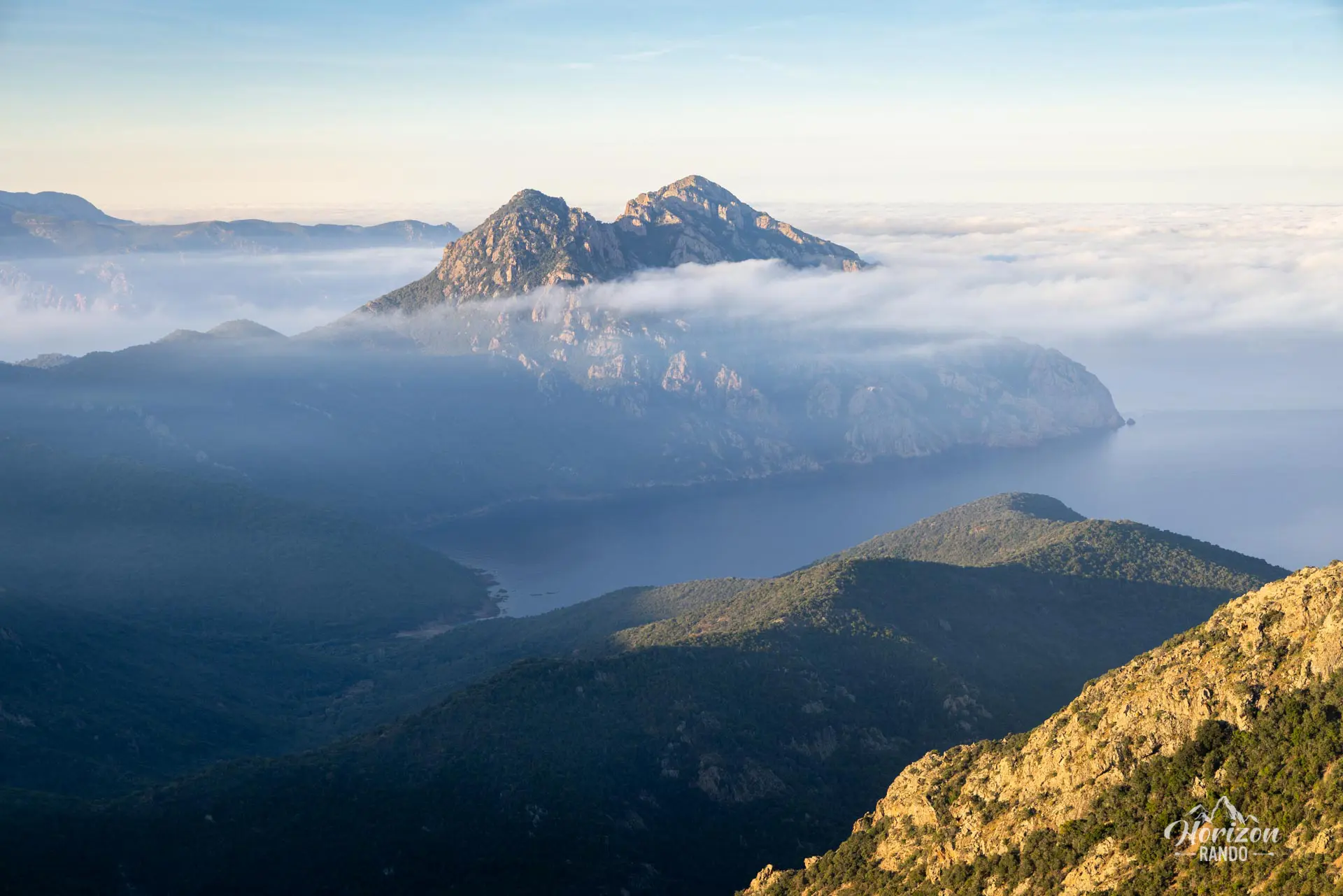 - La progression sur une crête spectaculaire surplombant la mer des deux côtés, avec des vues imprenables sur le golfe de Girolata et la réserve de Scandola.
