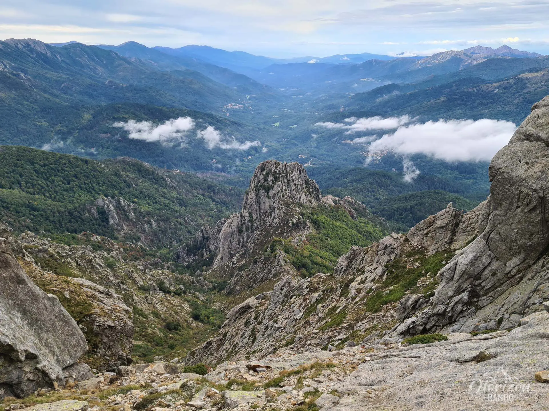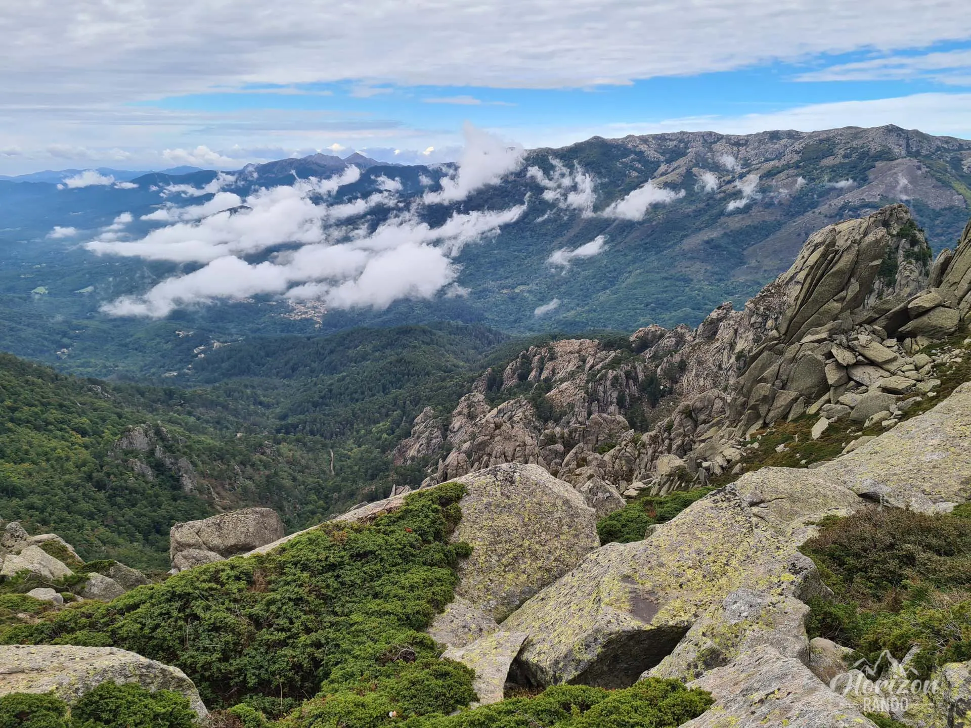 - Les panoramas magnifiques depuis les crêtes, avec une vue plongeante sur la mer Méditerranée et la plaine orientale d'un côté, et sur la haute vallée du Taravo avec les villages de Palneca, Ciamannacce et Cozzano de l'autre.