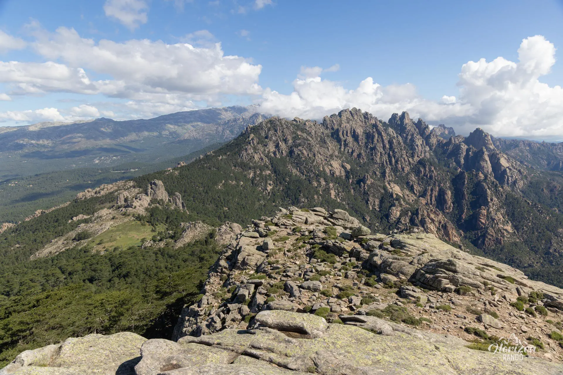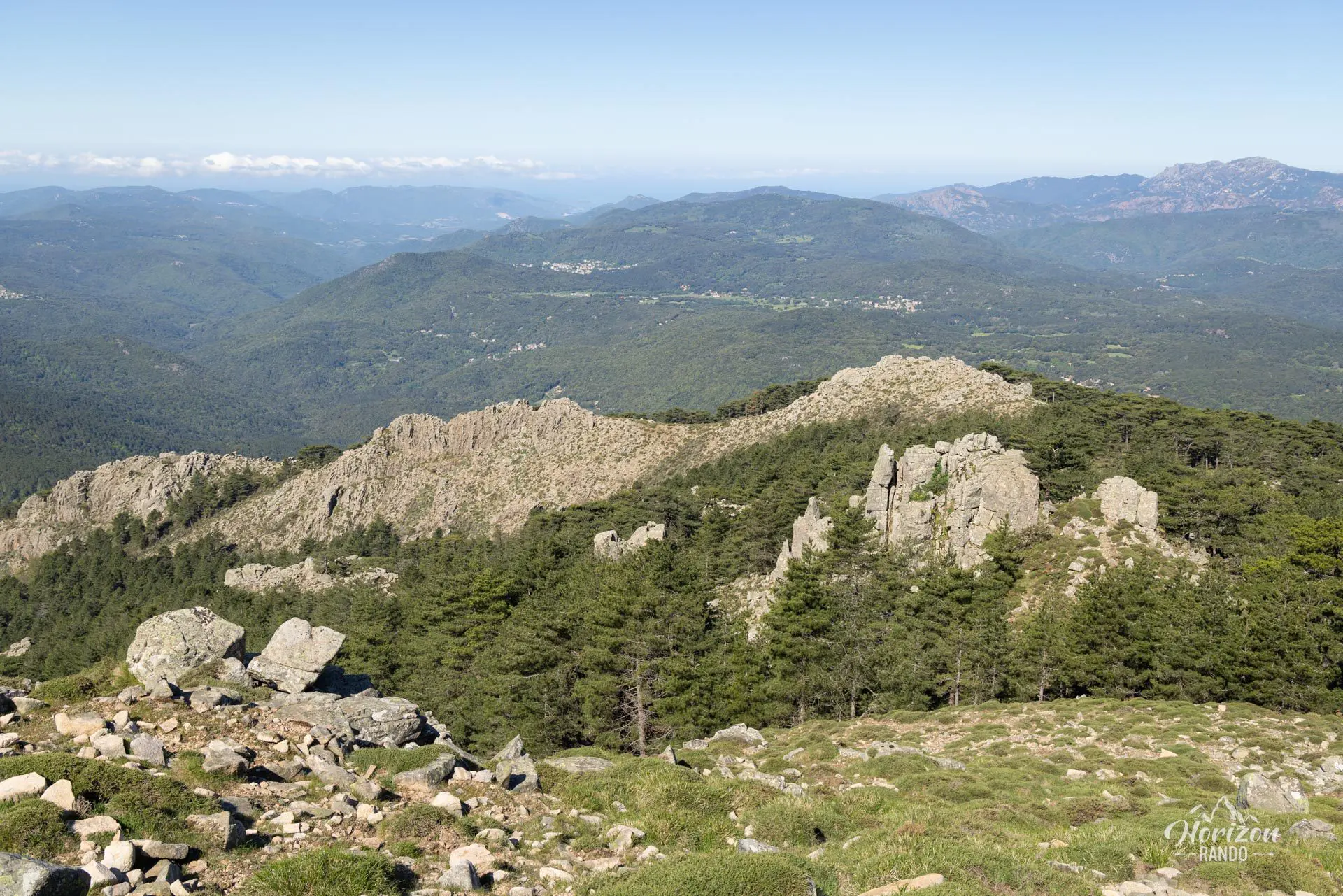 - Le panorama à 360 degrés depuis le sommet : admirez les reliefs déchiquetés de Bavella, le Monte Incudine, l'Alta Rocca et le golfe de Porto-Vecchio