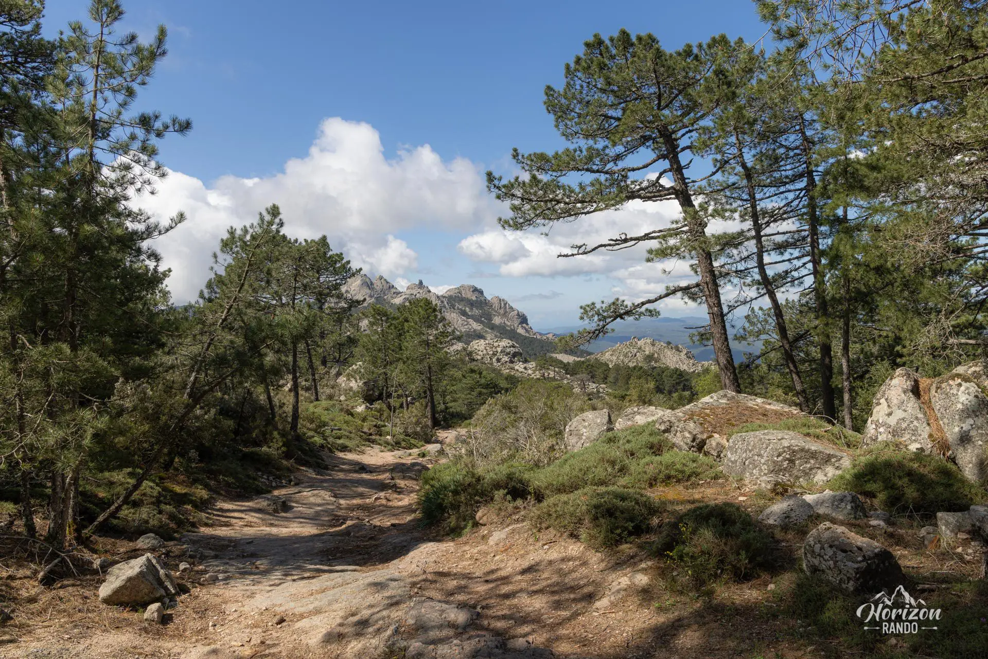 Cette randonnée est techniquement facile et alterne entre des pistes forestières larges et ombragées dans la forêt de Zonza et des sentiers rocailleux légèrement plus escarpés. Le sentier n'est pas balisé, mais des cairns jalonnent le parcours par endroits.