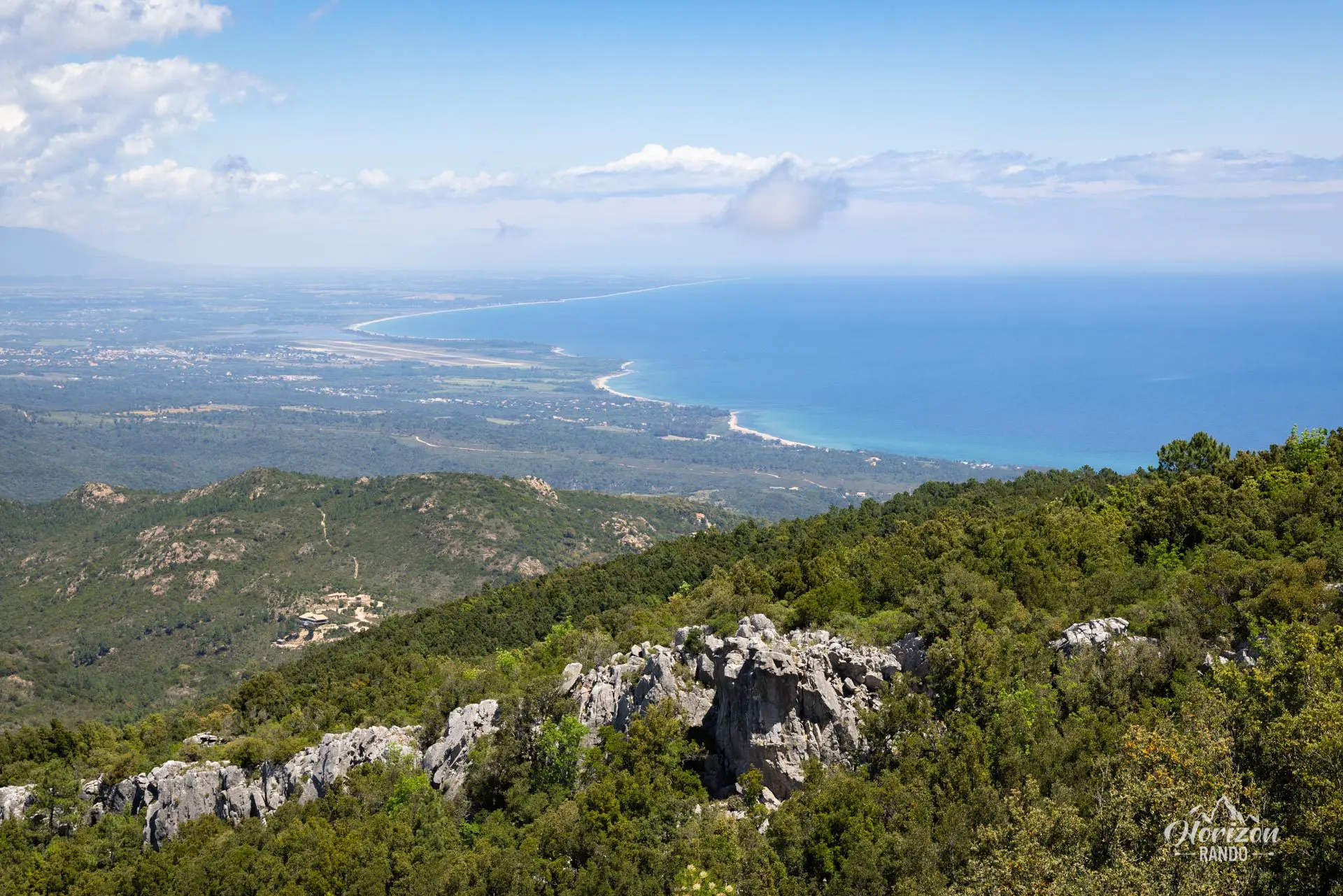 - Le panorama à 360° depuis le sommet : vue spectaculaire sur les aiguilles de Bavella et leur massif dentelé à l'ouest, ainsi que sur la plaine orientale avec la mer Méditerranée à l'est