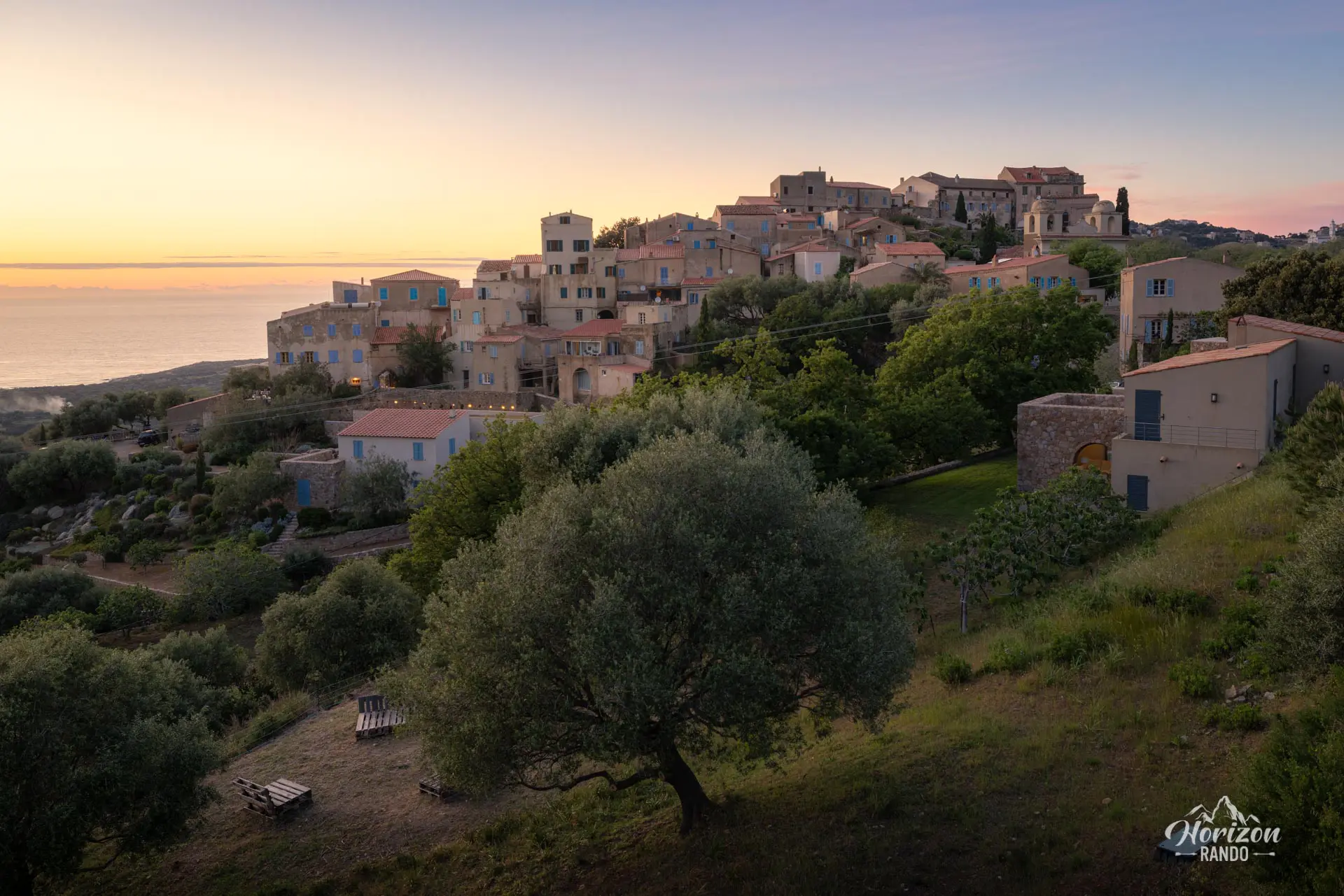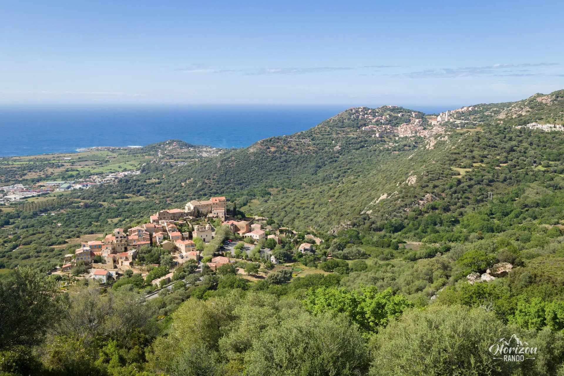 Cet itinéraire combine découverte culturelle et paysages typiques de la Balagne à travers d'anciens sentiers muletiers, des oliveraies et un riche patrimoine architectural.