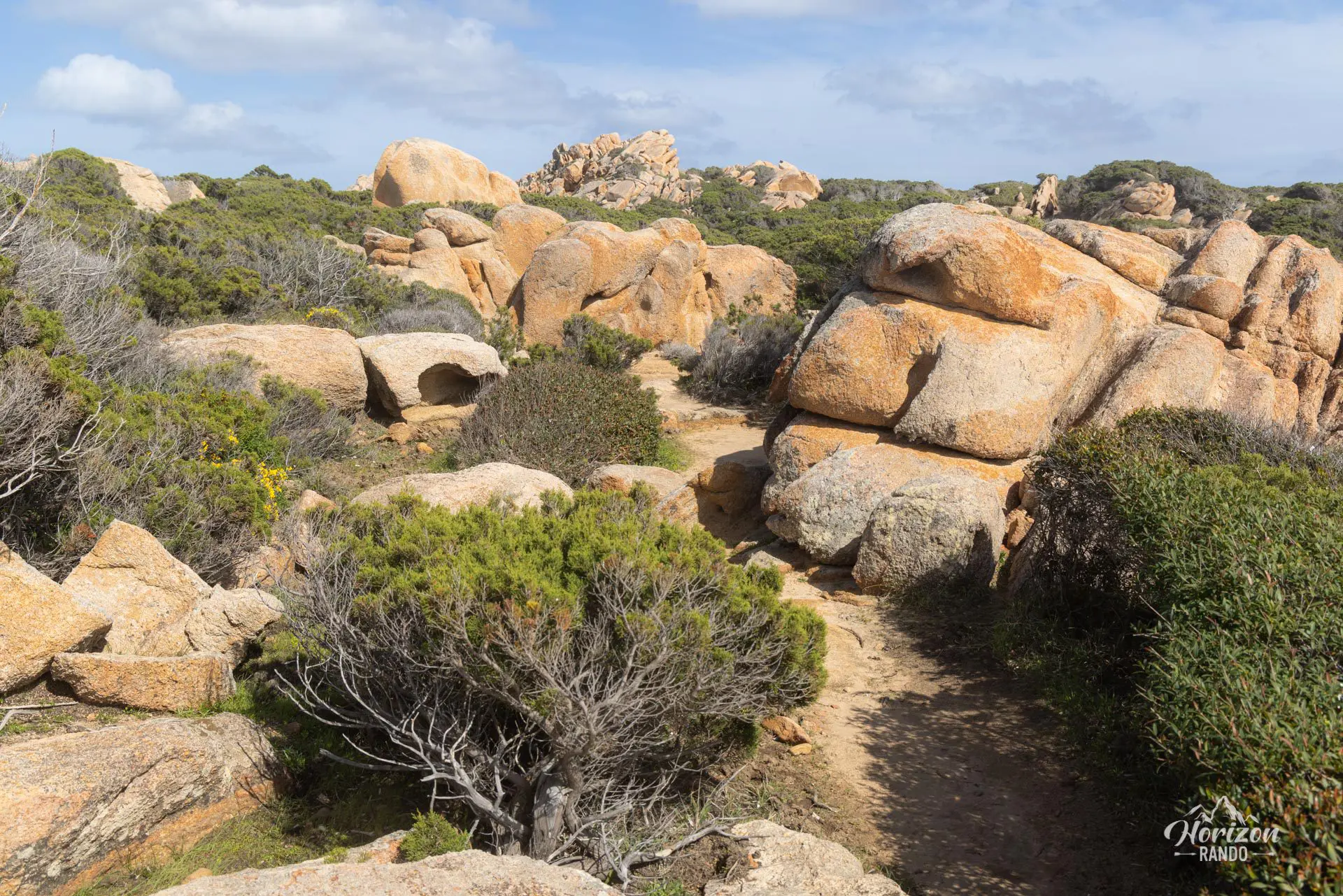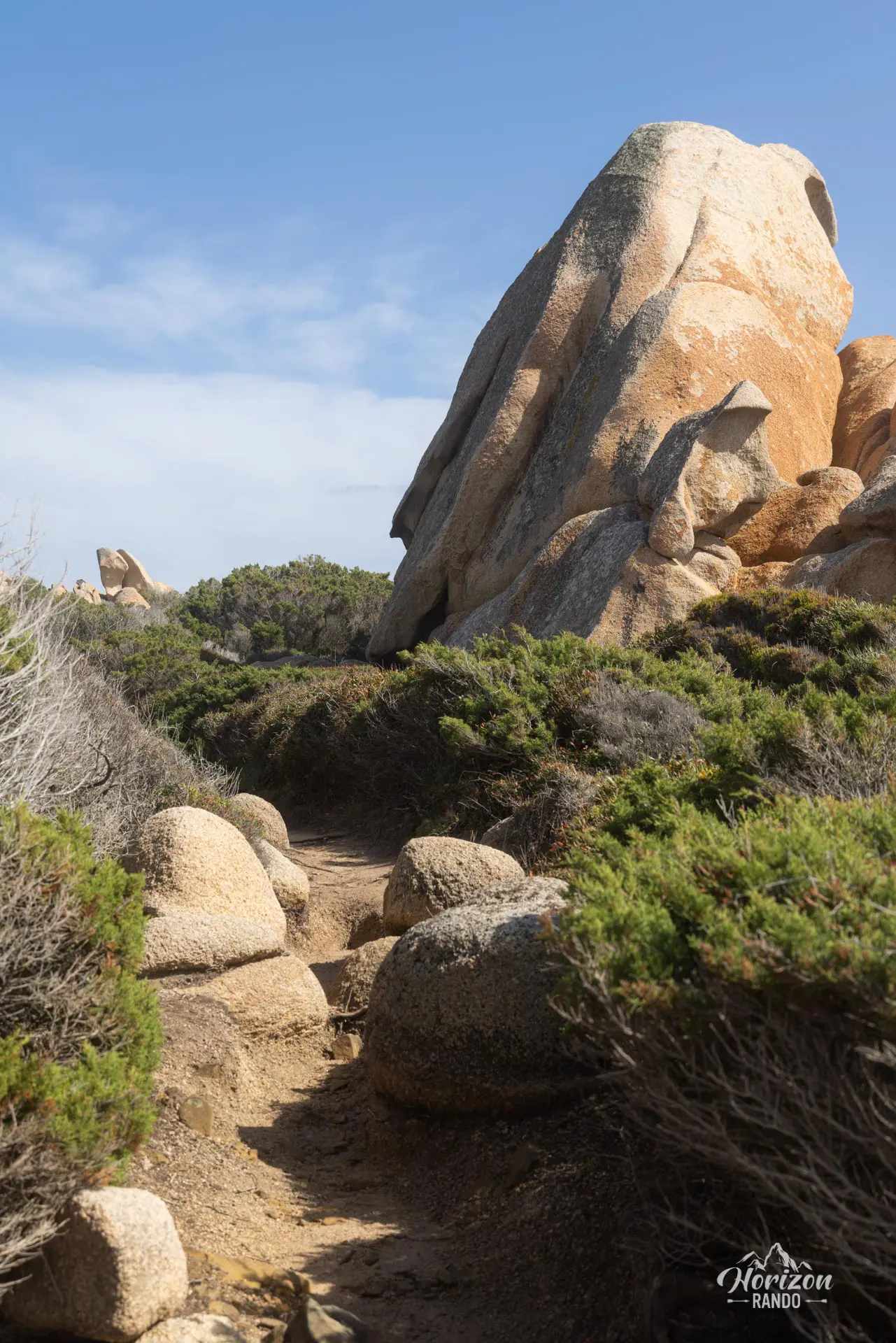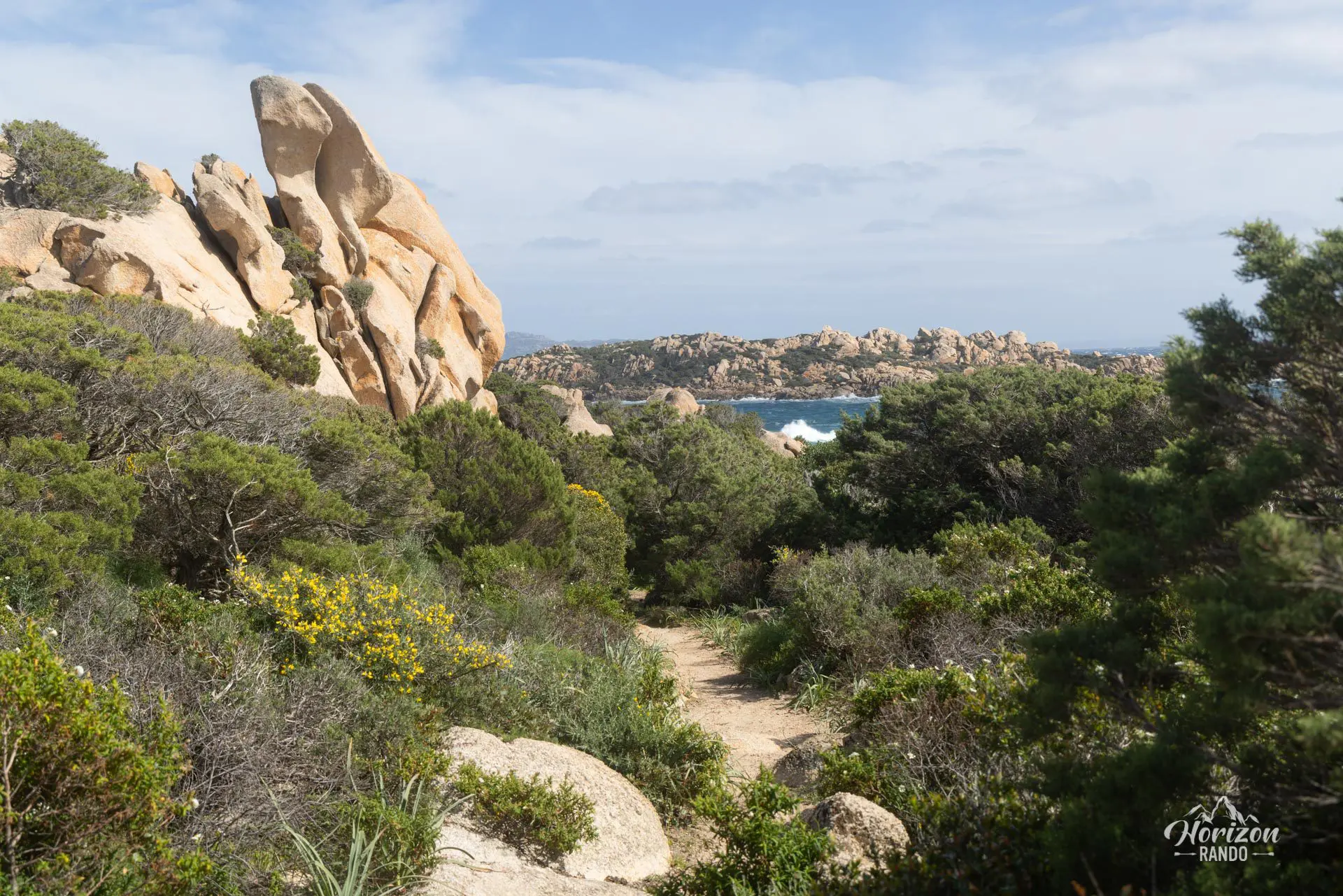 Le parcours traverse un maquis dense parsemé de rochers de granite façonnés par le vent : les fameux Tafoni, dont les formes fantastiques stimulent l'imagination. Le sentier révèle de multiples criques sauvages, dont la remarquable plage de Corail, reconnaissable à son sable rougeâtre. Tout au long de la randonnée, vous profiterez de points de vue spectaculaires sur les îles Bruzzi et le littoral déchiqueté de la réserve naturelle.