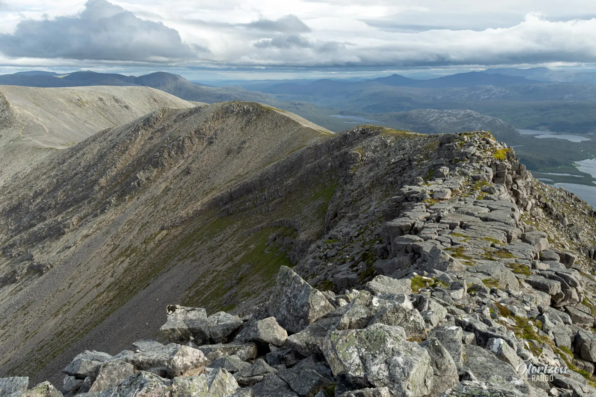 Les panoramas depuis le sommet embrassent les montagnes voisines de Foinaven et Ben Stack, ainsi que l'extraordinaire mosaïque de lochs et lochans qui caractérise cette région reculée des Highlands.