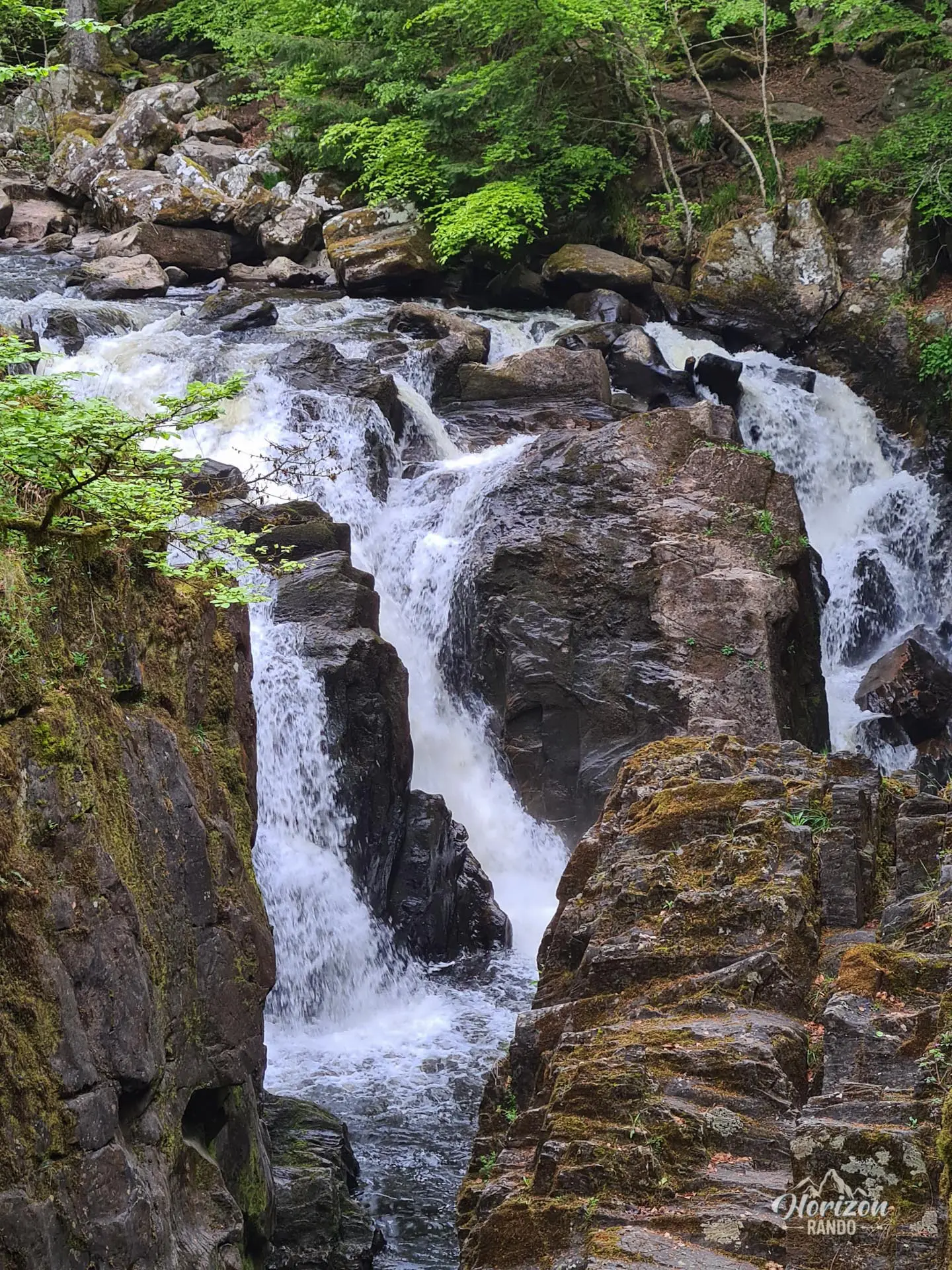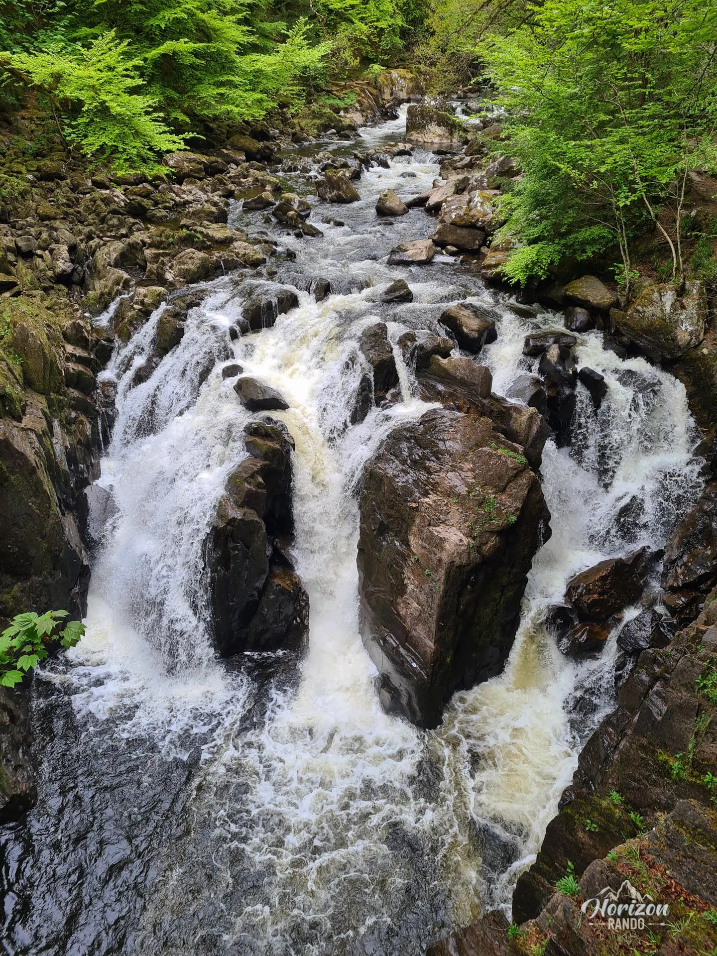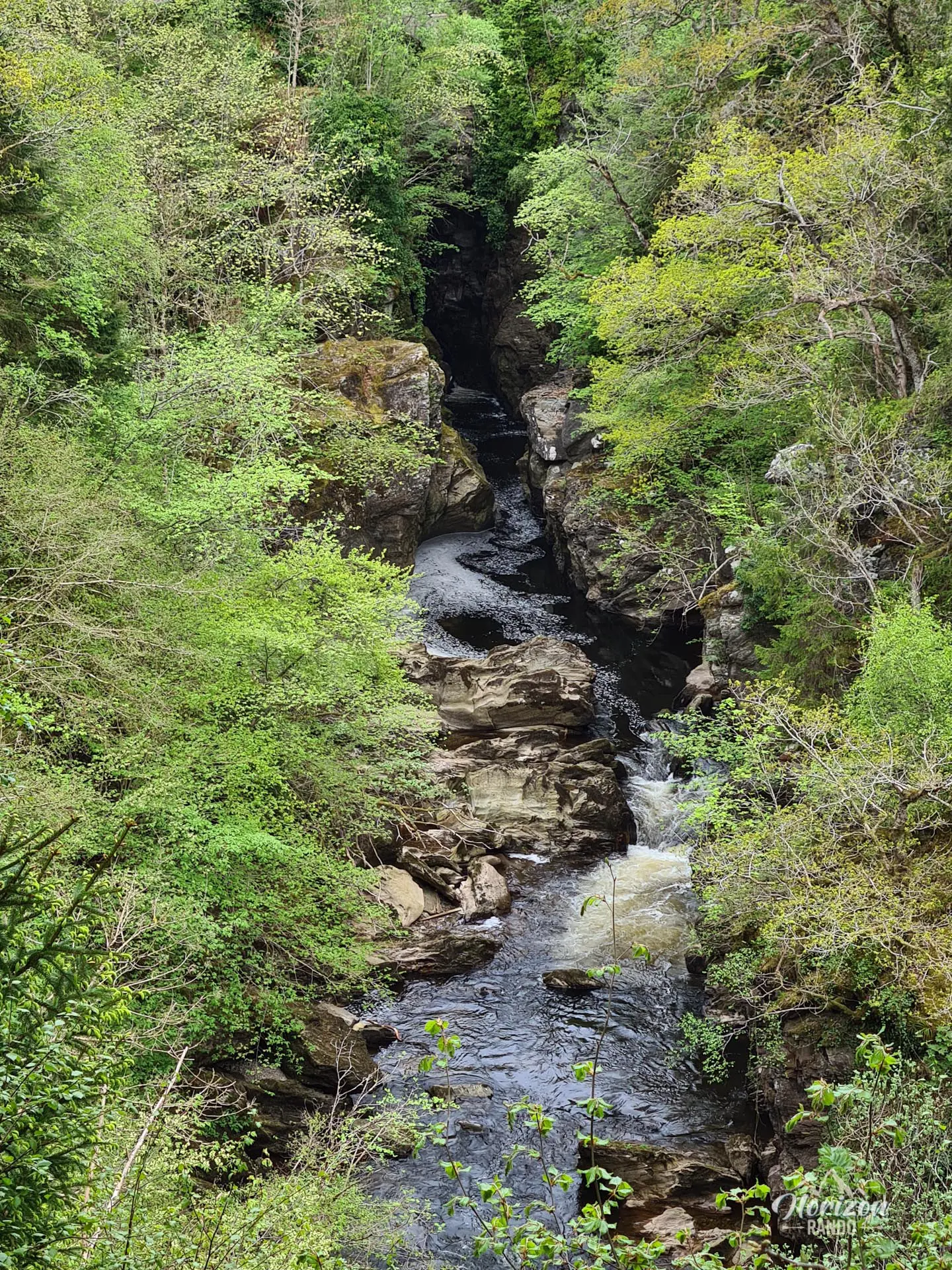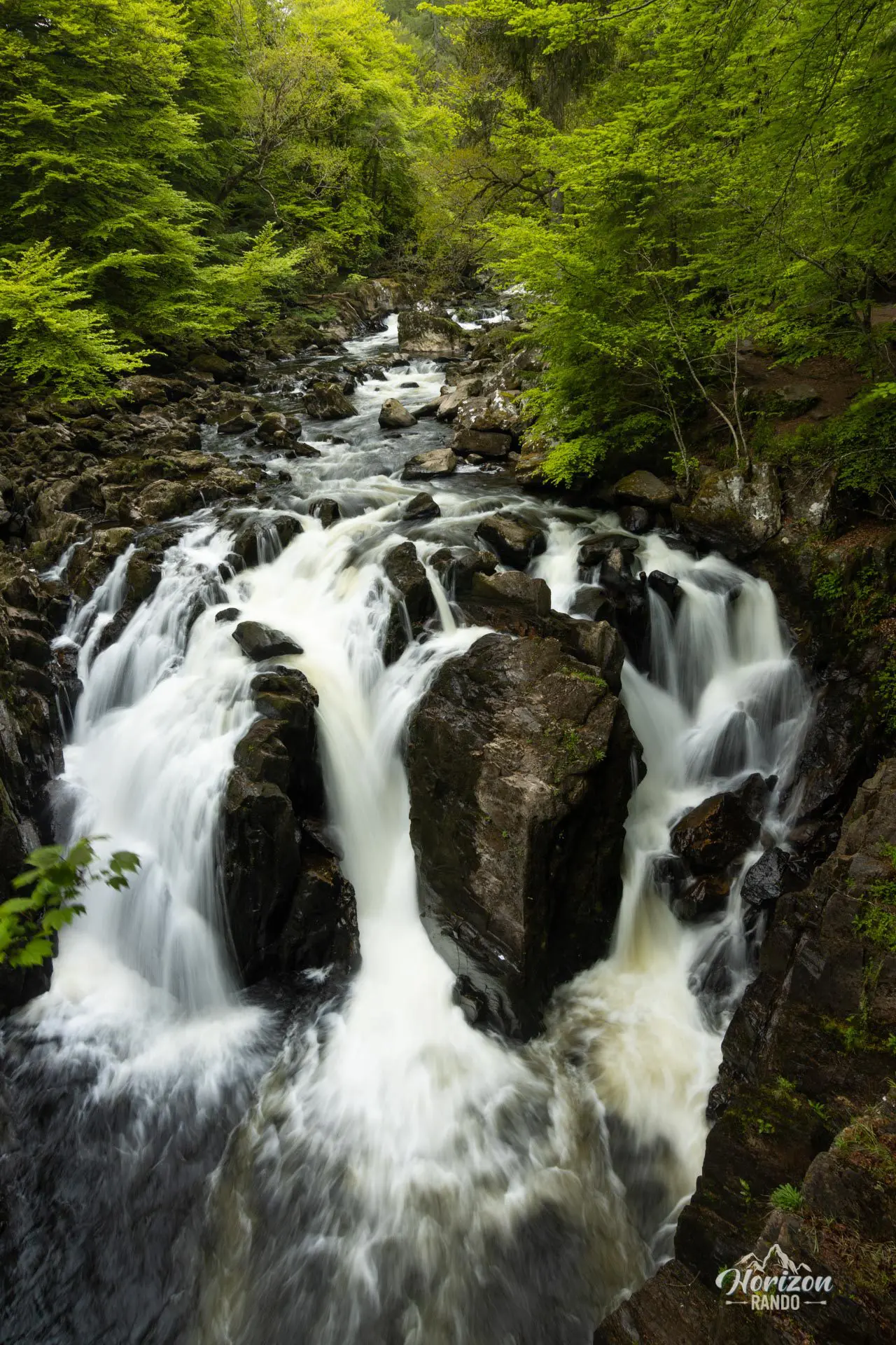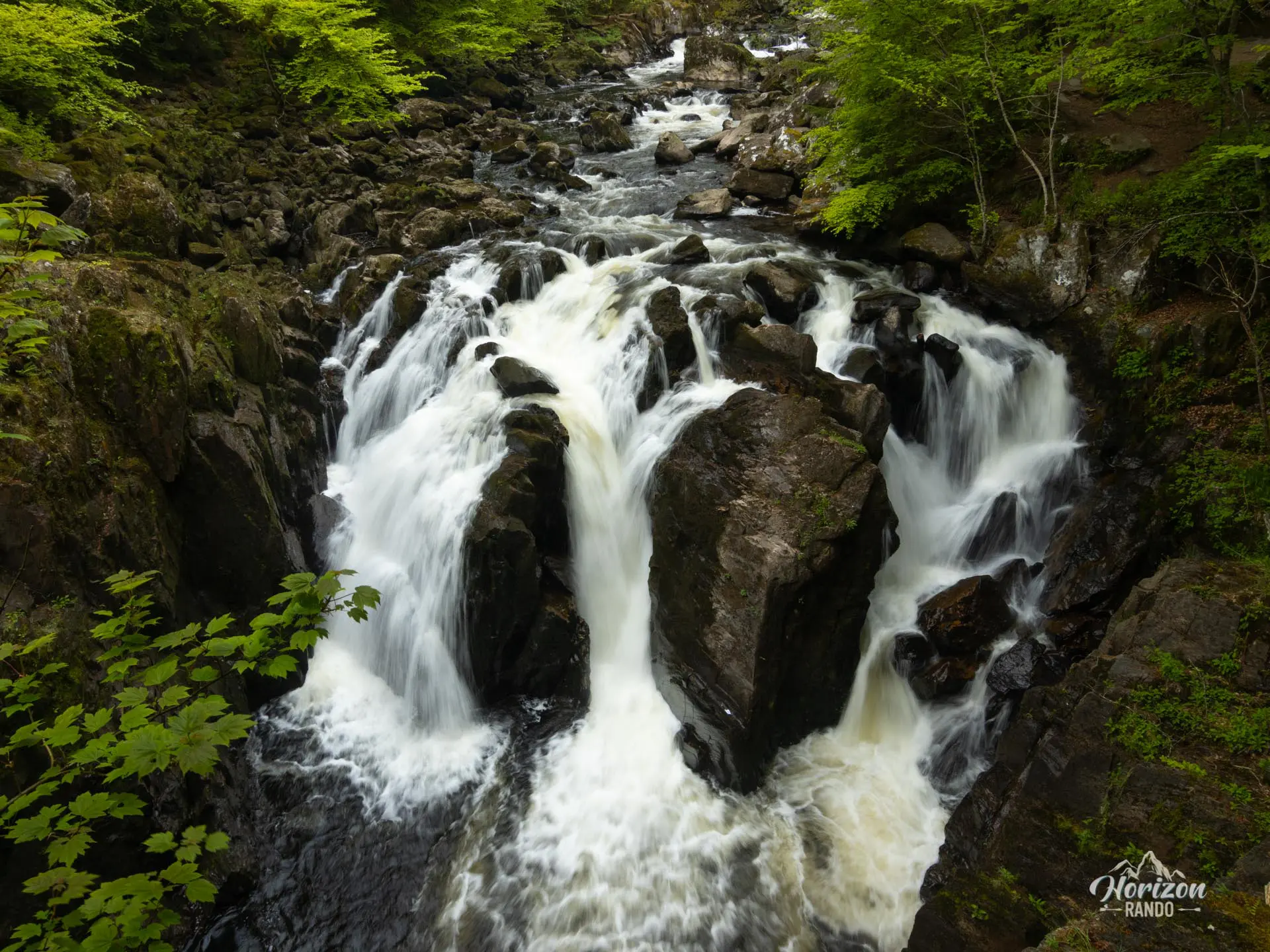 - Les chutes de Black Linn vues depuis Ossian's Hall : ce pavillon d'observation historique, décoré de miroirs, révèle une vue spectaculaire sur les chutes.