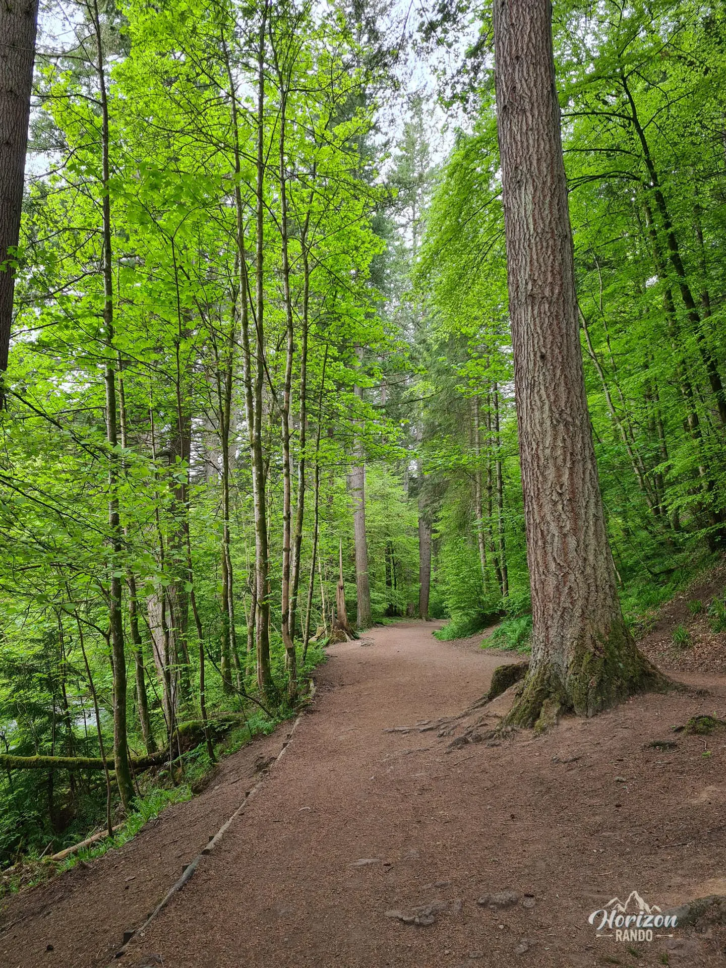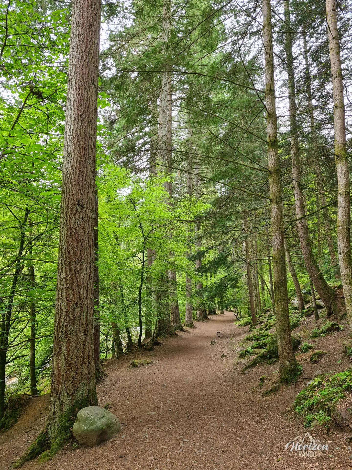 - Les impressionnants sapins de Douglas : ces arbres géants, dont certains dépassent 60 mètres de hauteur, créent une atmosphère féerique le long du parcours.