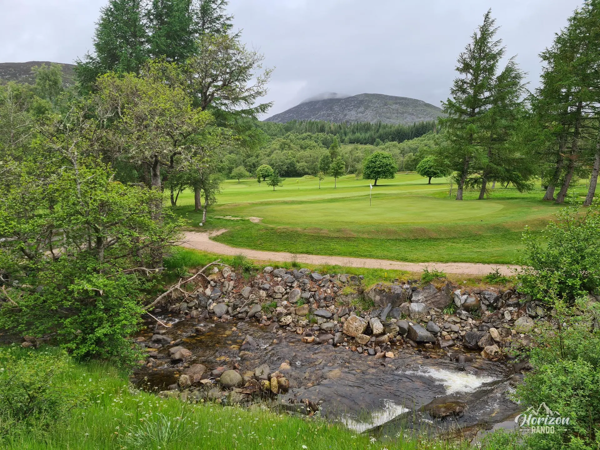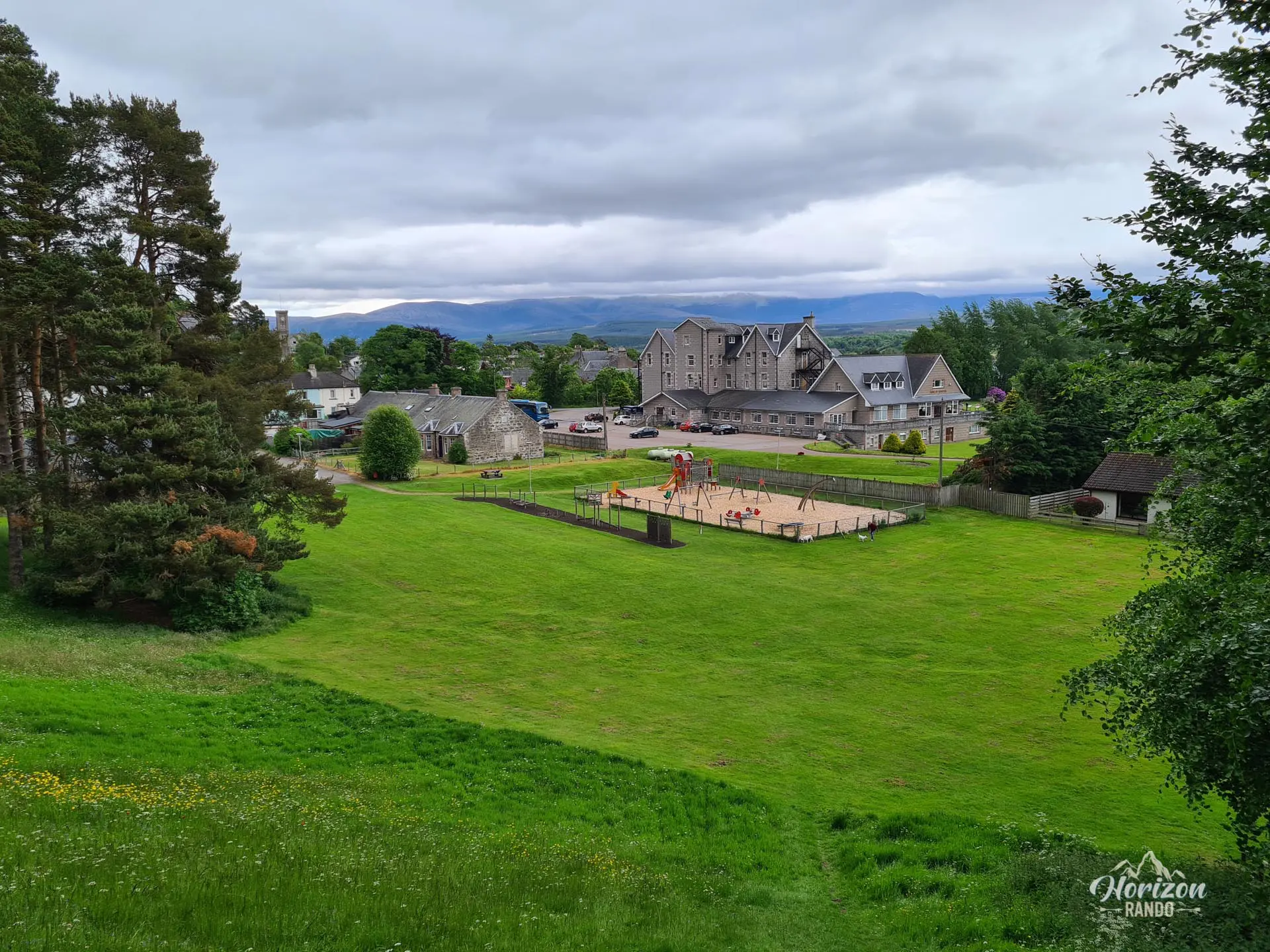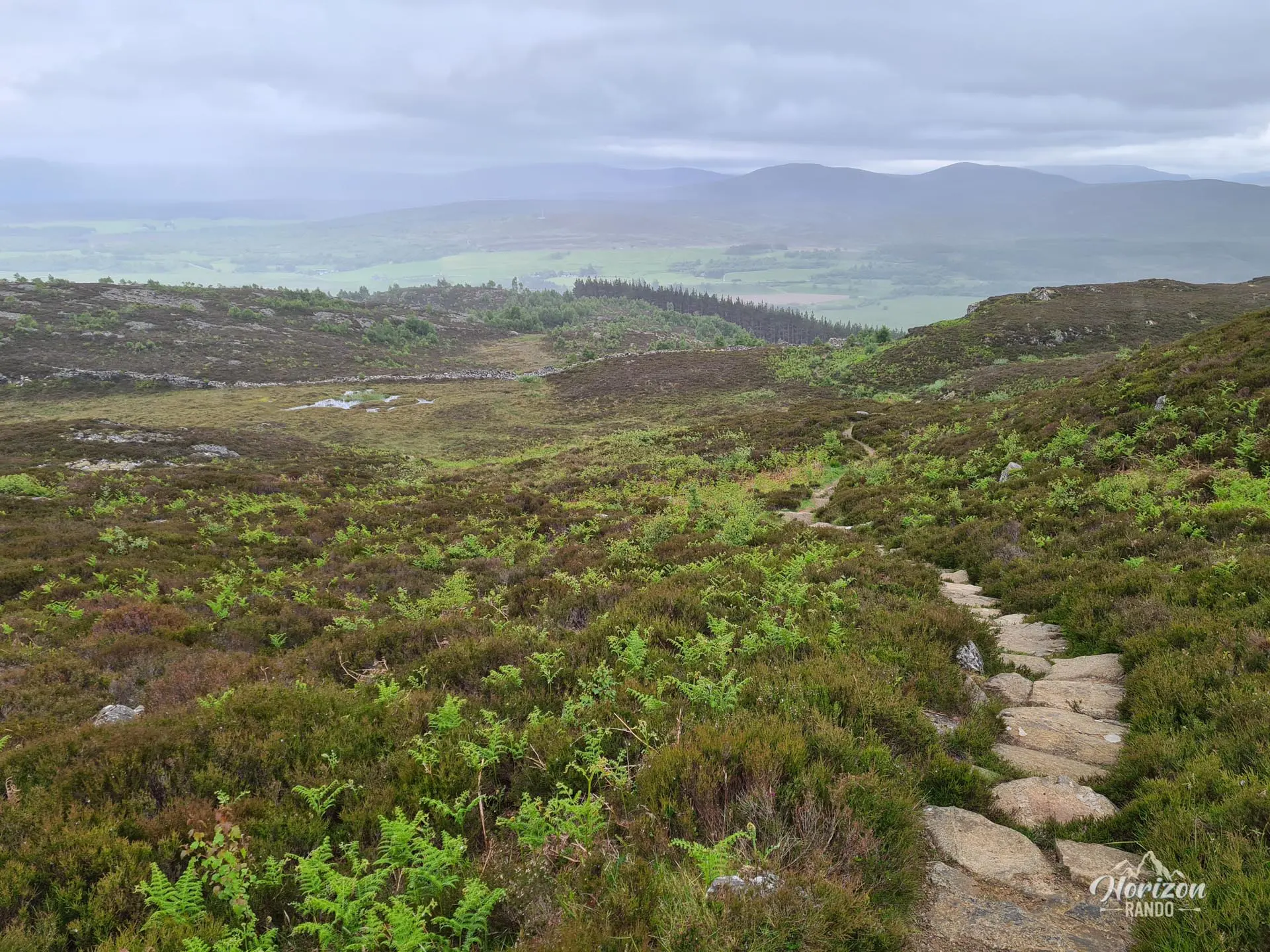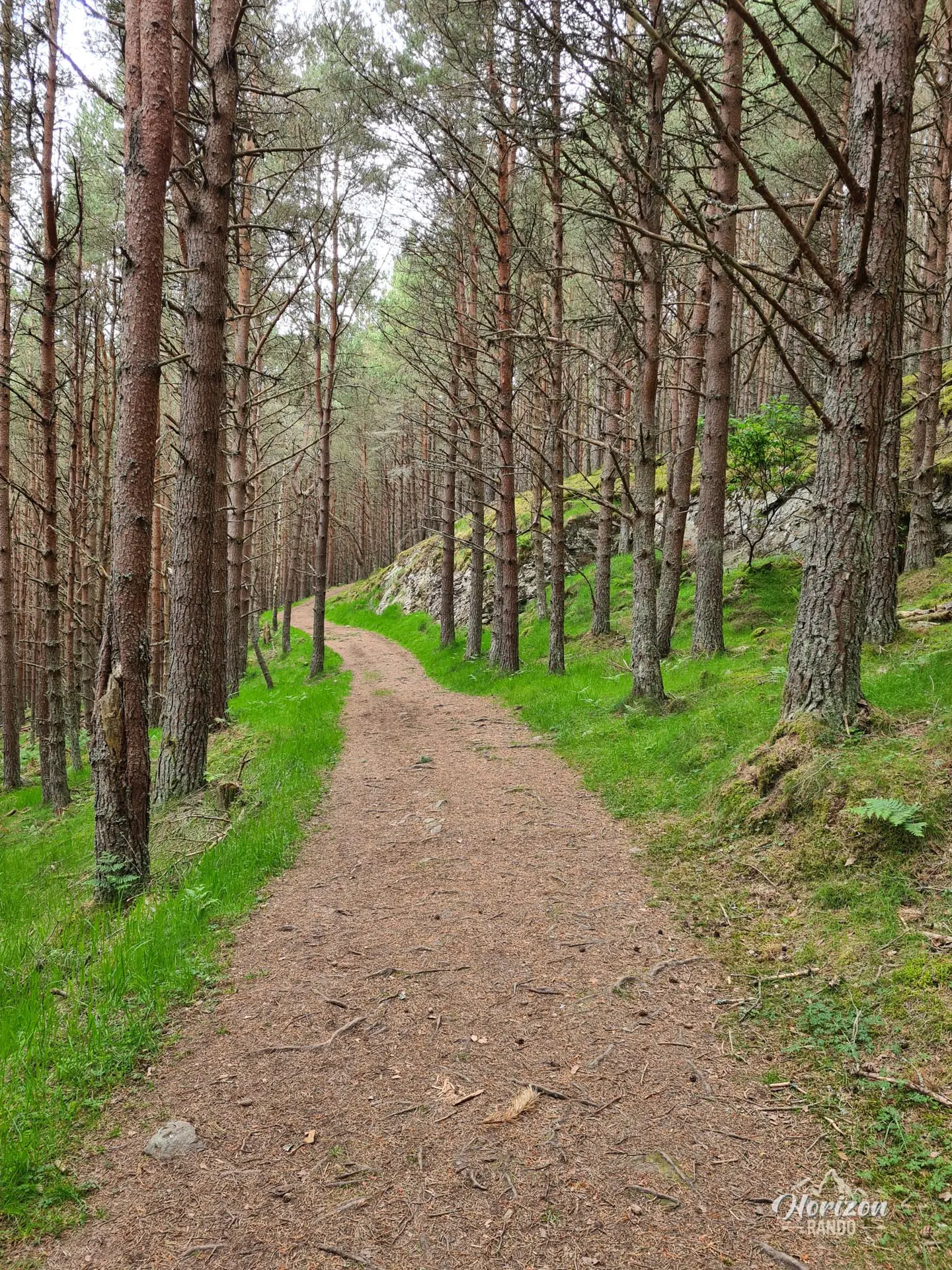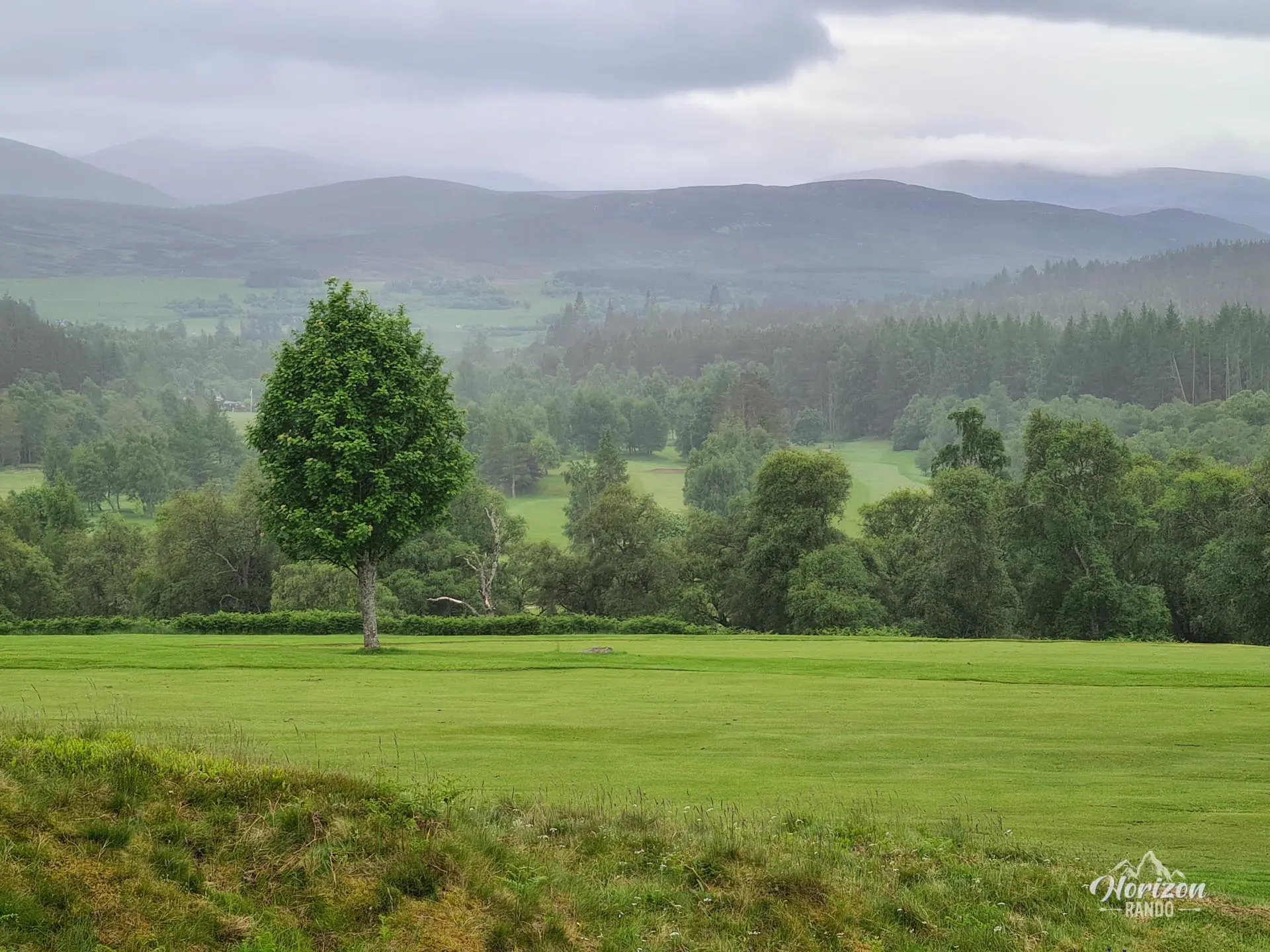 L'itinéraire en boucle traverse des paysages variés : forêt de pins, landes rocheuses couvertes de bruyère, avant de redescendre le long de la paisible rivière Gynack Burn en traversant le parcours de golf local.