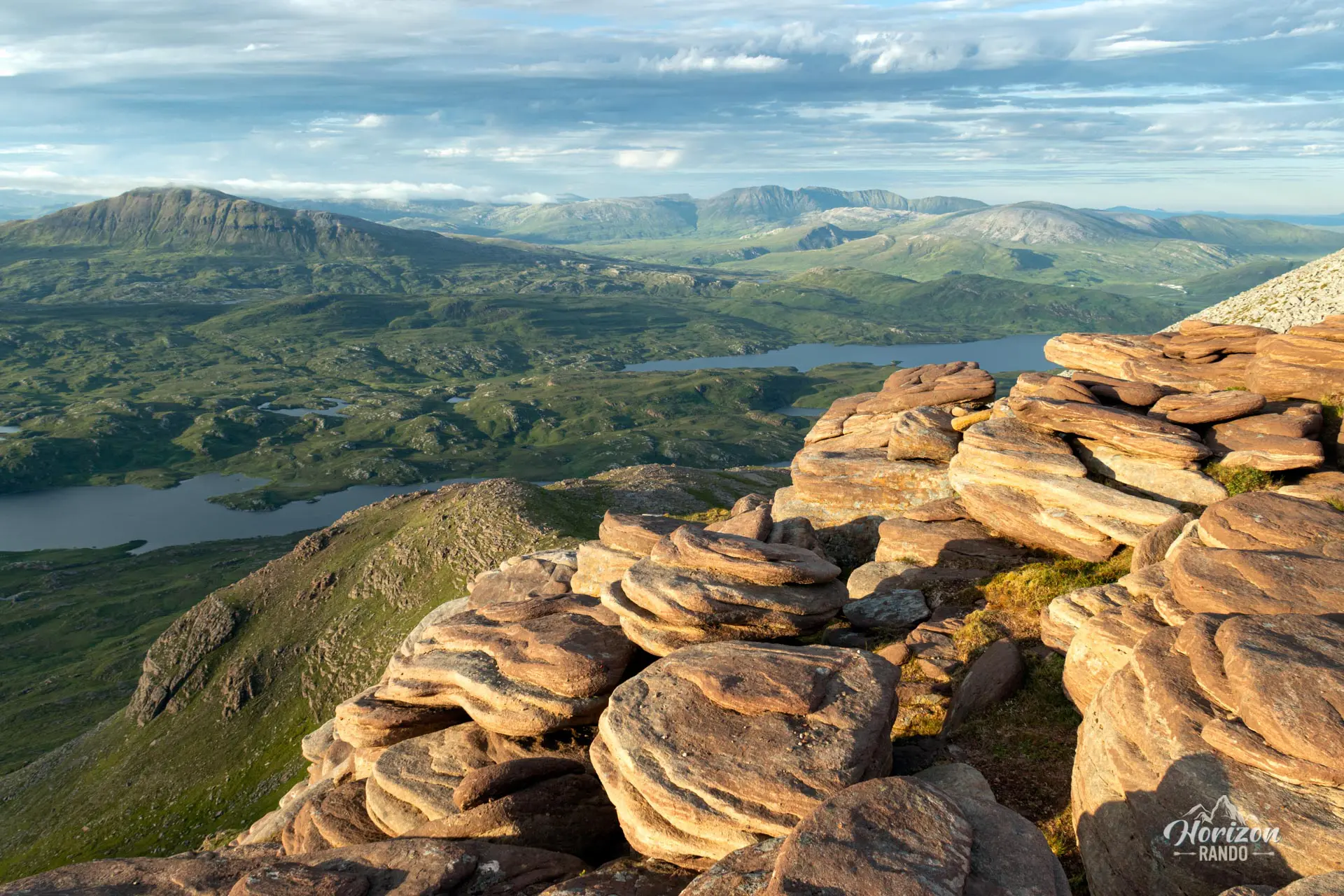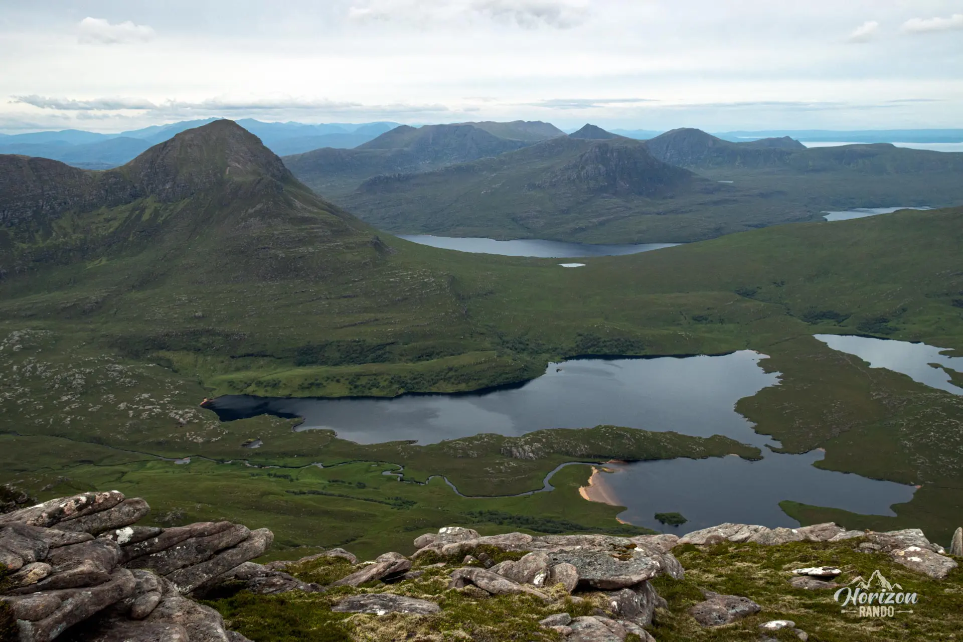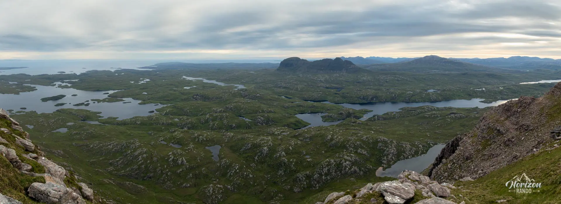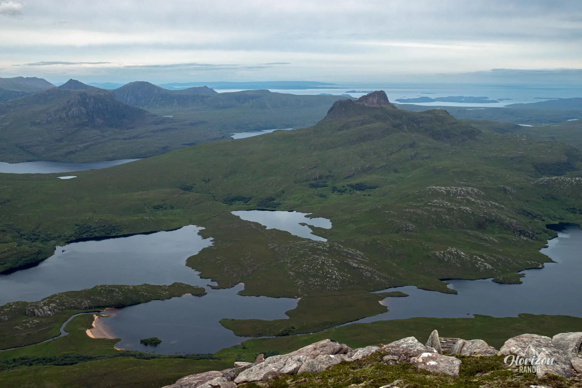 - Les panoramas époustouflants depuis les sommets et le plateau : vues imprenables à 360° sur les sommets mythiques d'Assynt (Suilven, Stac Pollaidh, Canisp, Cùl Beag), les Hébrides extérieures au loin et le paysage unique parsemé de centaines de lochs.