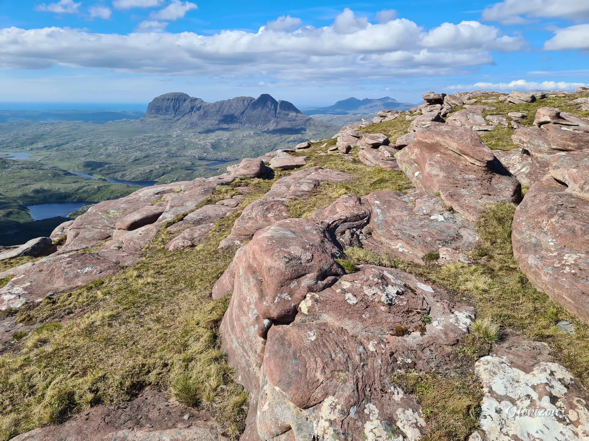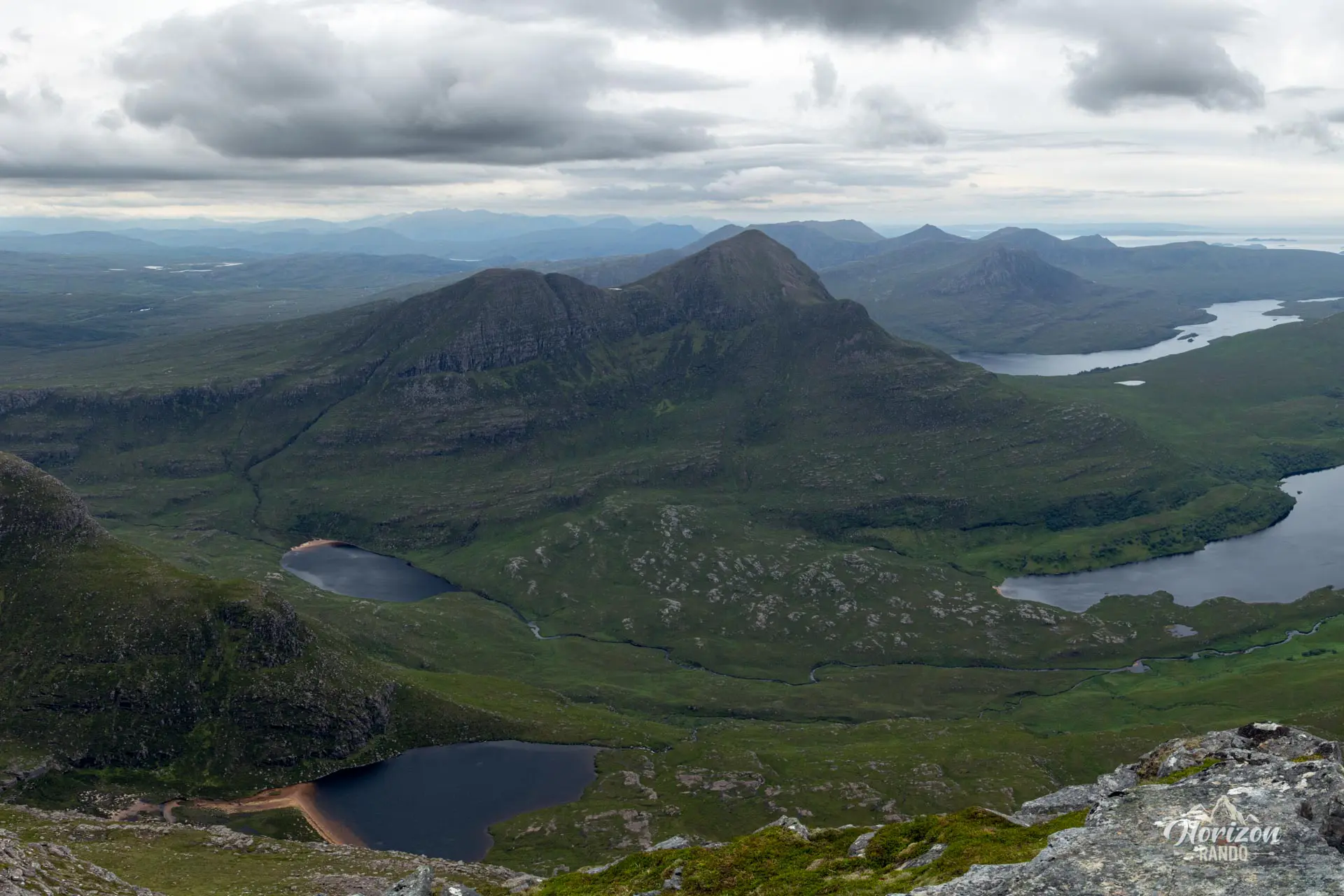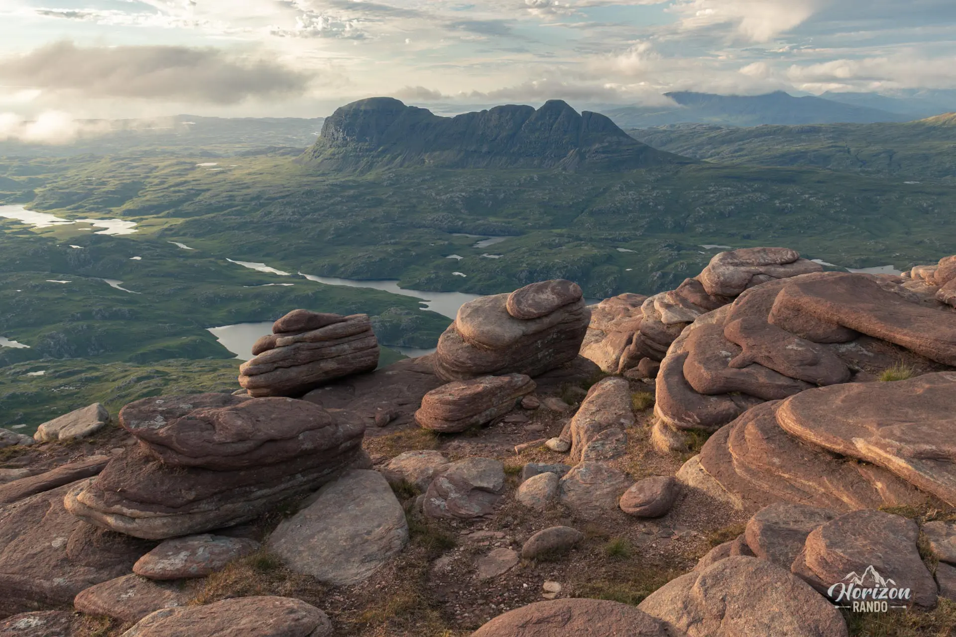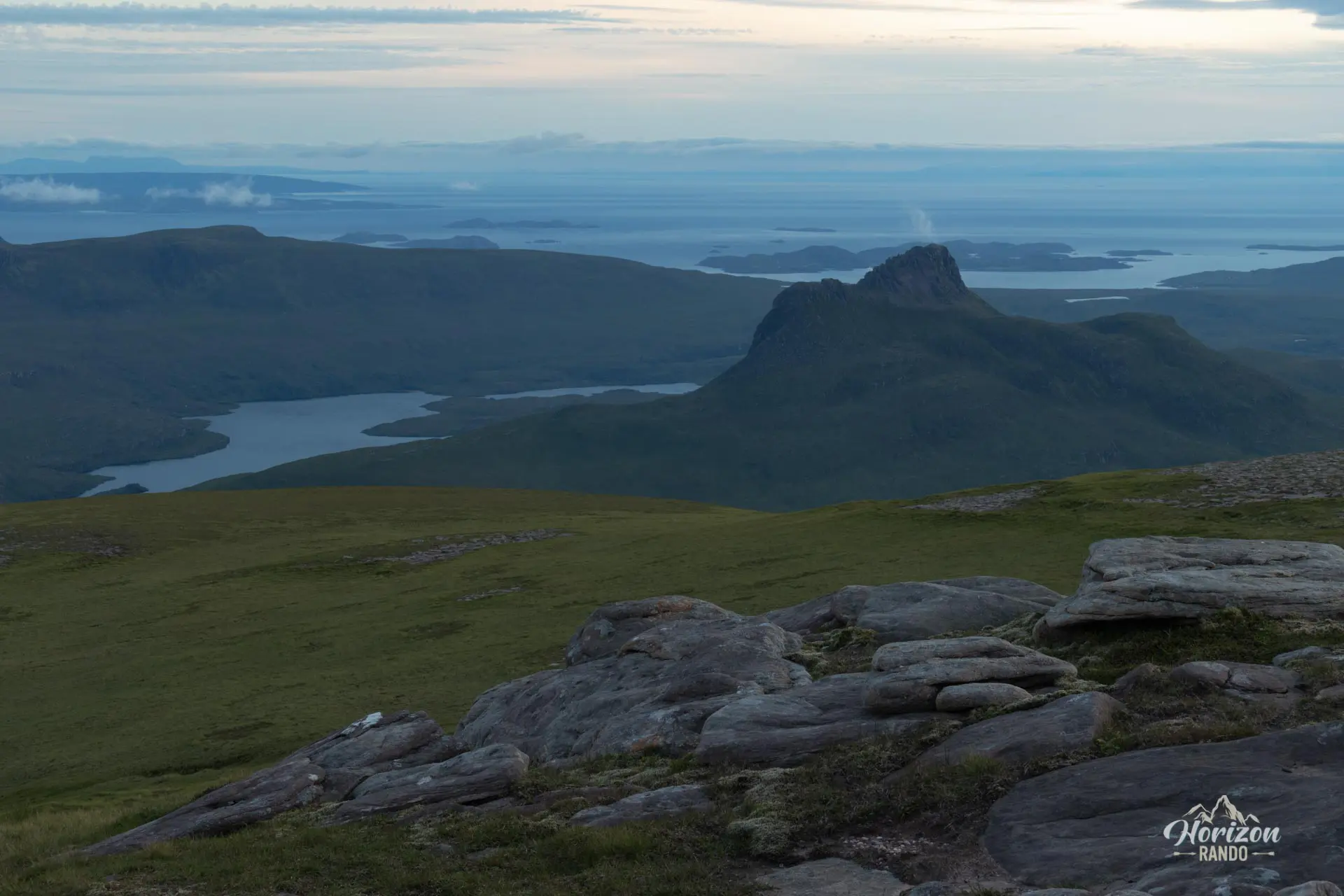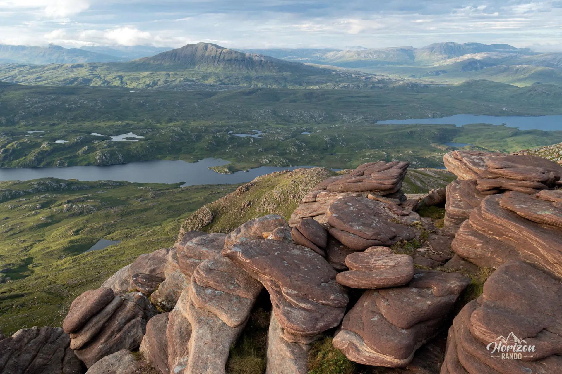 - Les panoramas époustouflants depuis les sommets et le plateau : vues imprenables à 360° sur les sommets mythiques d'Assynt (Suilven, Stac Pollaidh, Canisp, Cùl Beag), les Hébrides extérieures au loin et le paysage unique parsemé de centaines de lochs.