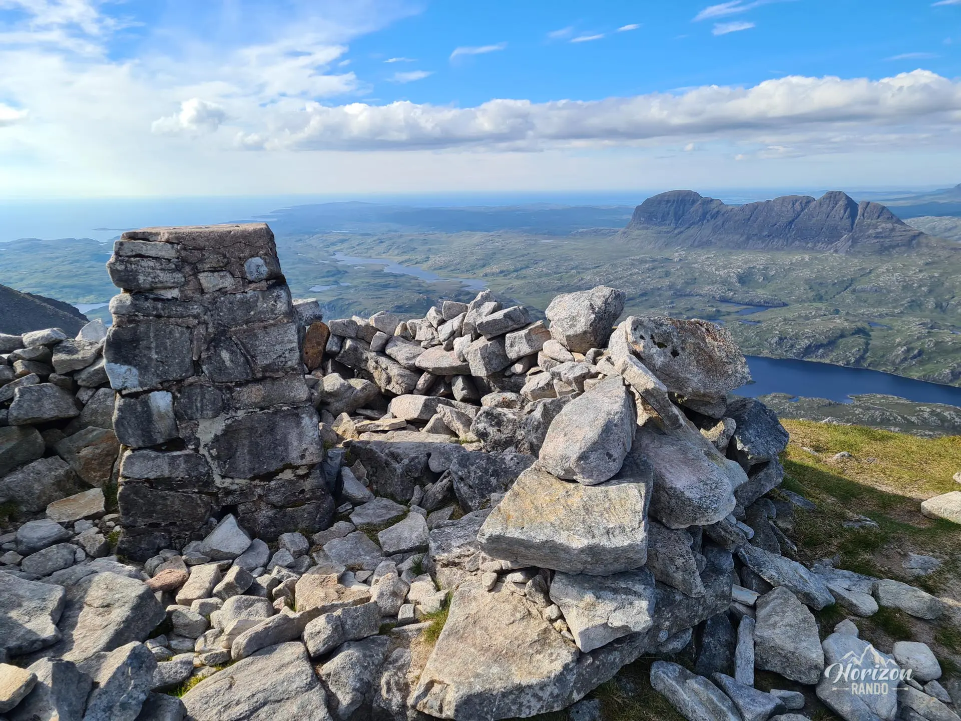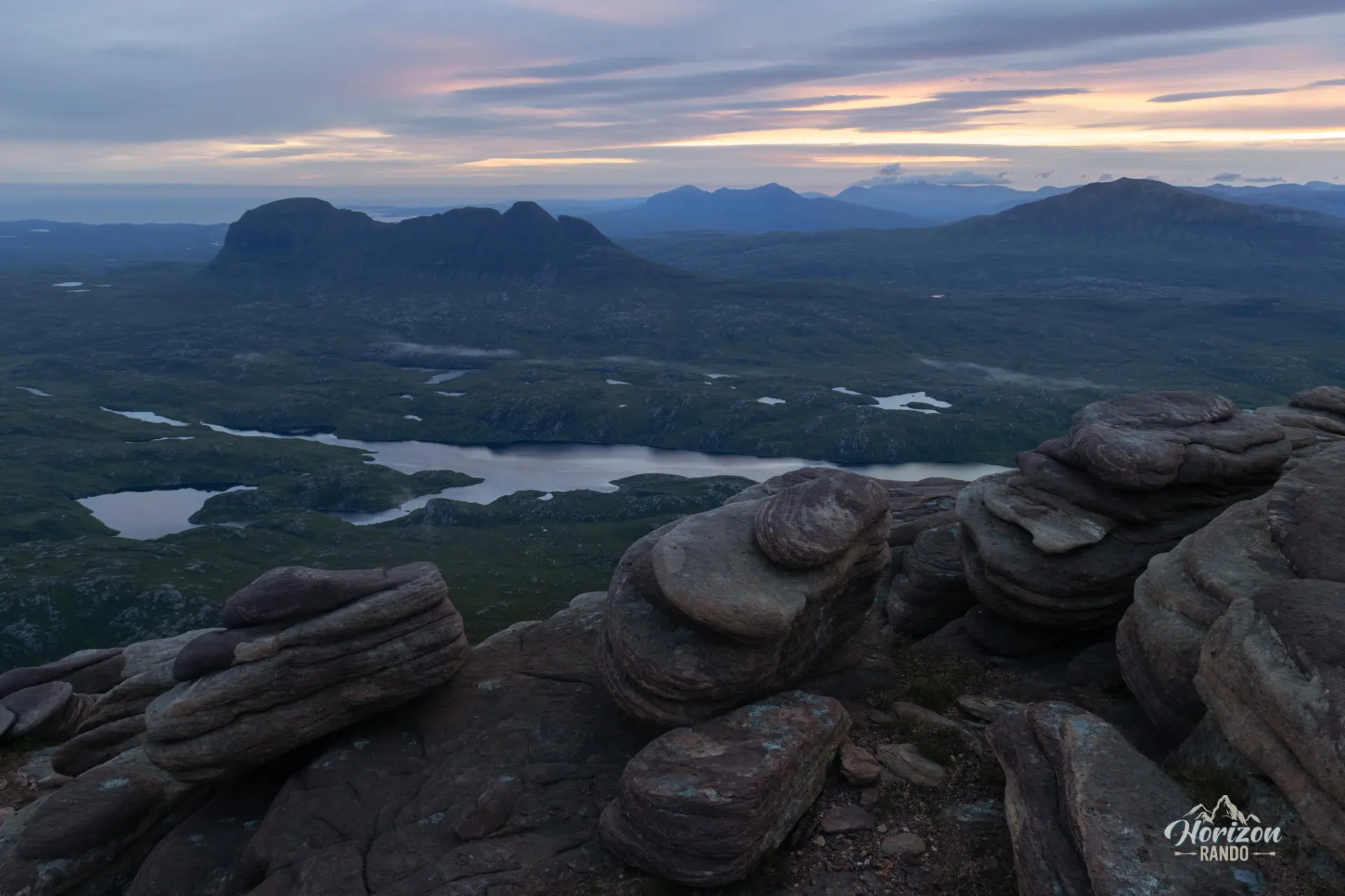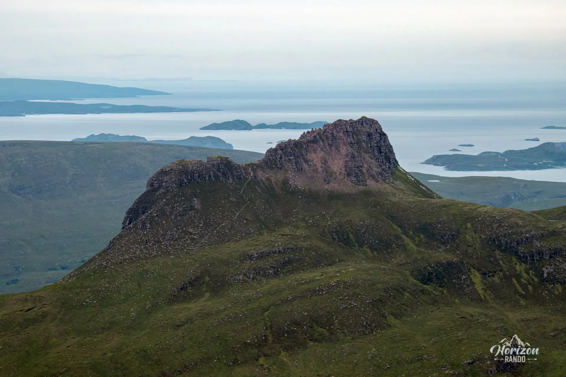 La randonnée de Cùl Mòr vous mène au sommet de l'une des montagnes emblématiques de la région d'Assynt, dans l'extrême nord-ouest de l'Écosse. Dominant à 849 mètres d'altitude un paysage parsemé de lochs et de lochans, ce double sommet offre des panoramas spectaculaires sur les pics isolés environnants tels que Suilven, Stac Pollaidh, Canisp et Cùl Beag.