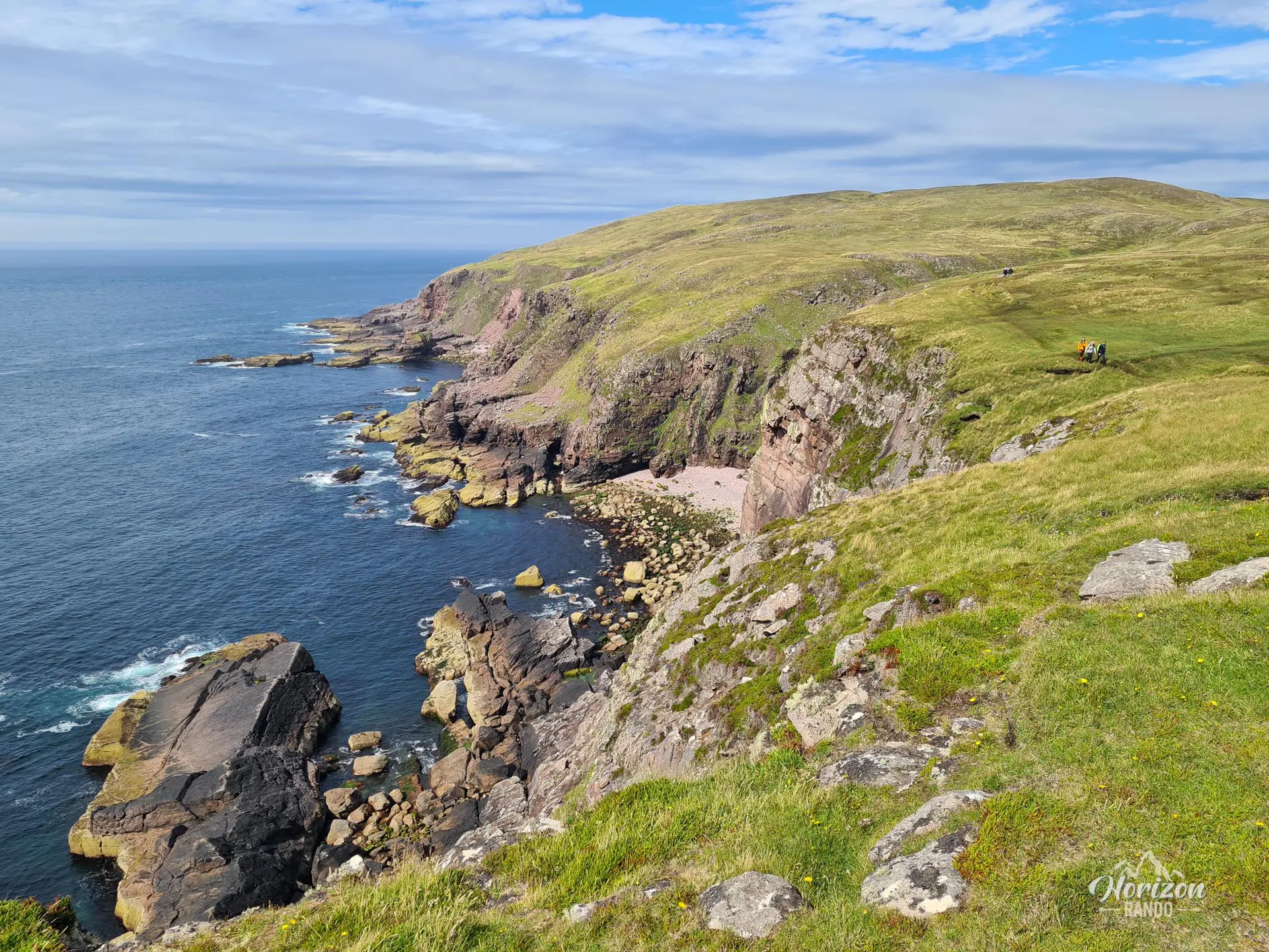 Le sentier devient alors parfois peu visible et la progression se fait essentiellement en suivant la ligne côtière. Au retour, l'ascension vers le sommet de Sìthean Mòr (161 m) traverse quelques zones marécageuses qu'il est préférable de contourner.
