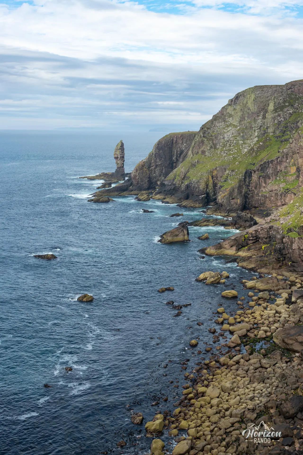 - Le spectacle imposant du Old Man of Stoer : un pilier rocheux de grès torridonien de 60 mètres de hauteur se dressant majestueusement face à l'océan Atlantique.