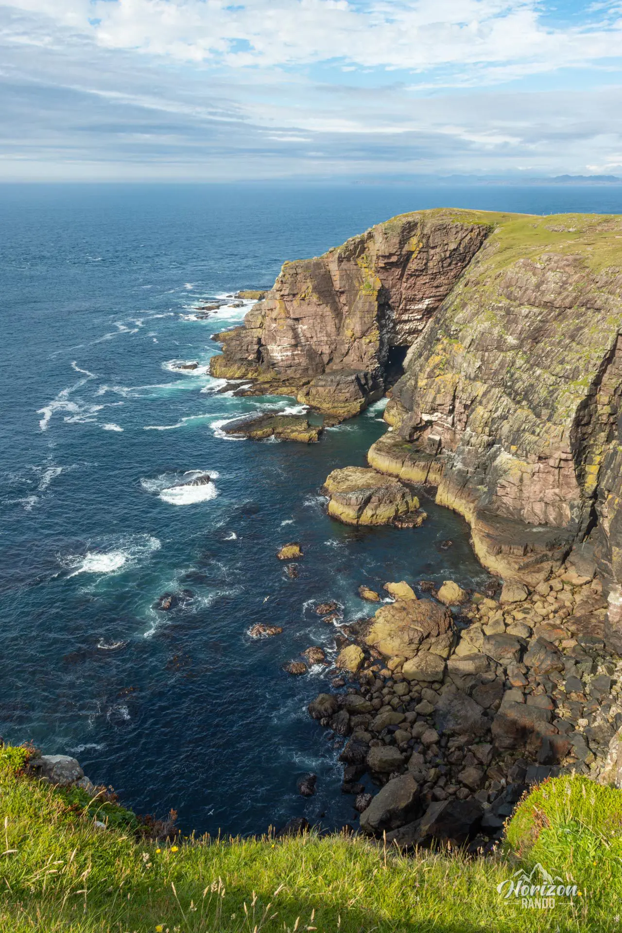 Cette boucle de 7 kilomètres ne présente aucune difficulté technique particulière et totalise seulement 280 mètres de dénivelé positif. L'itinéraire évolue principalement sur un terrain herbeux, parfois accidenté, avec un sentier qui s'estompe progressivement pour laisser place à de simples traces de moutons, notamment après le premier point de vue sur l'Old Man of Stoer, où la plupart des marcheurs s'arrêtent.