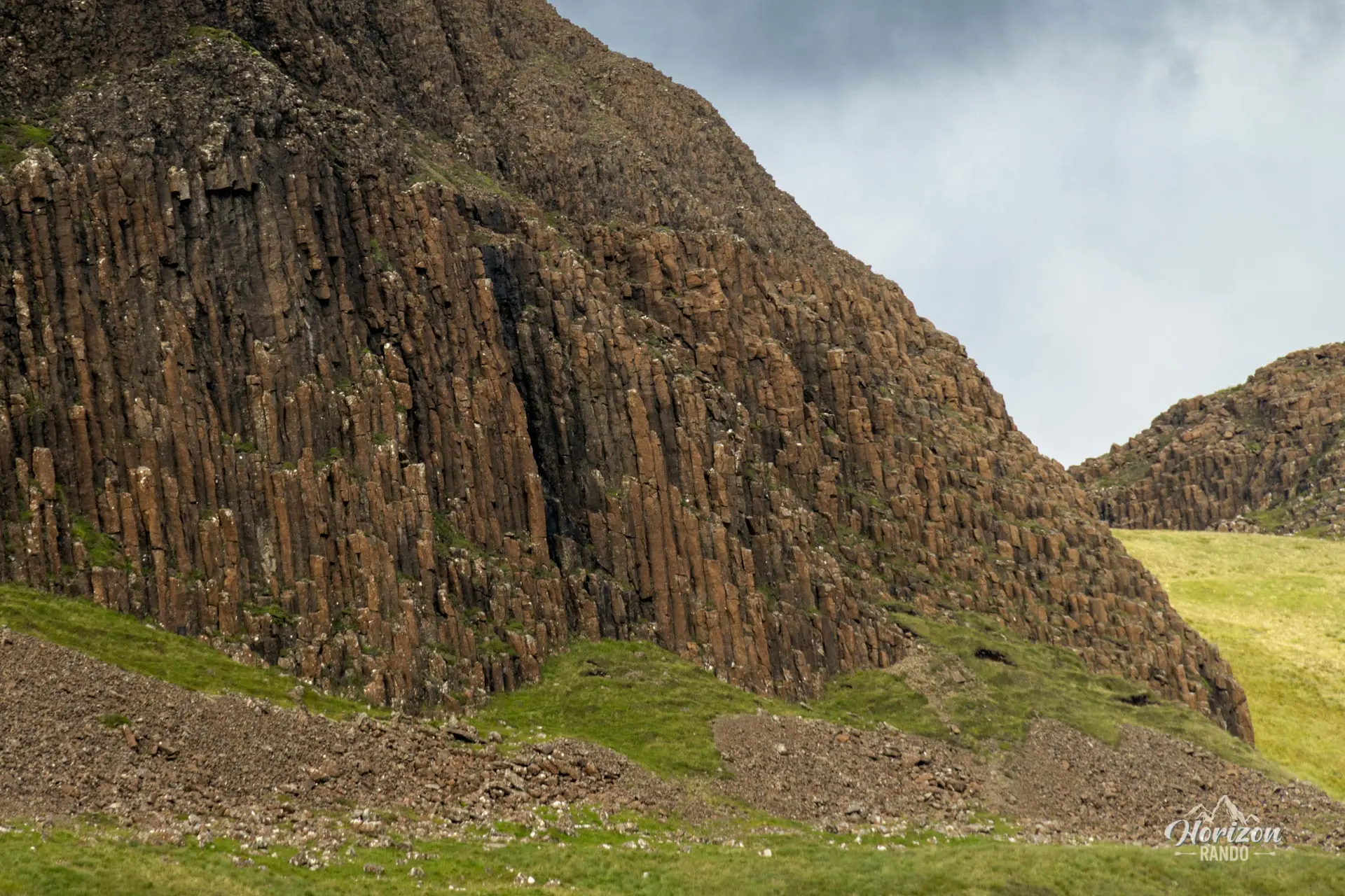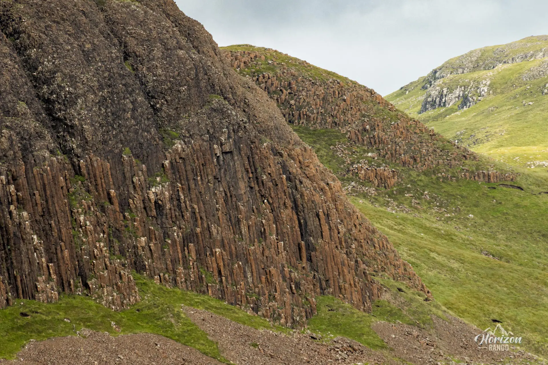 - Les colonnes de basalte hexagonales qui forment la base de Preshal Beg et Preshal More, un spectacle géologique unique et fascinant.