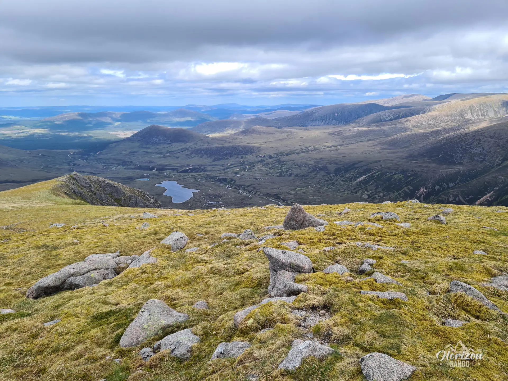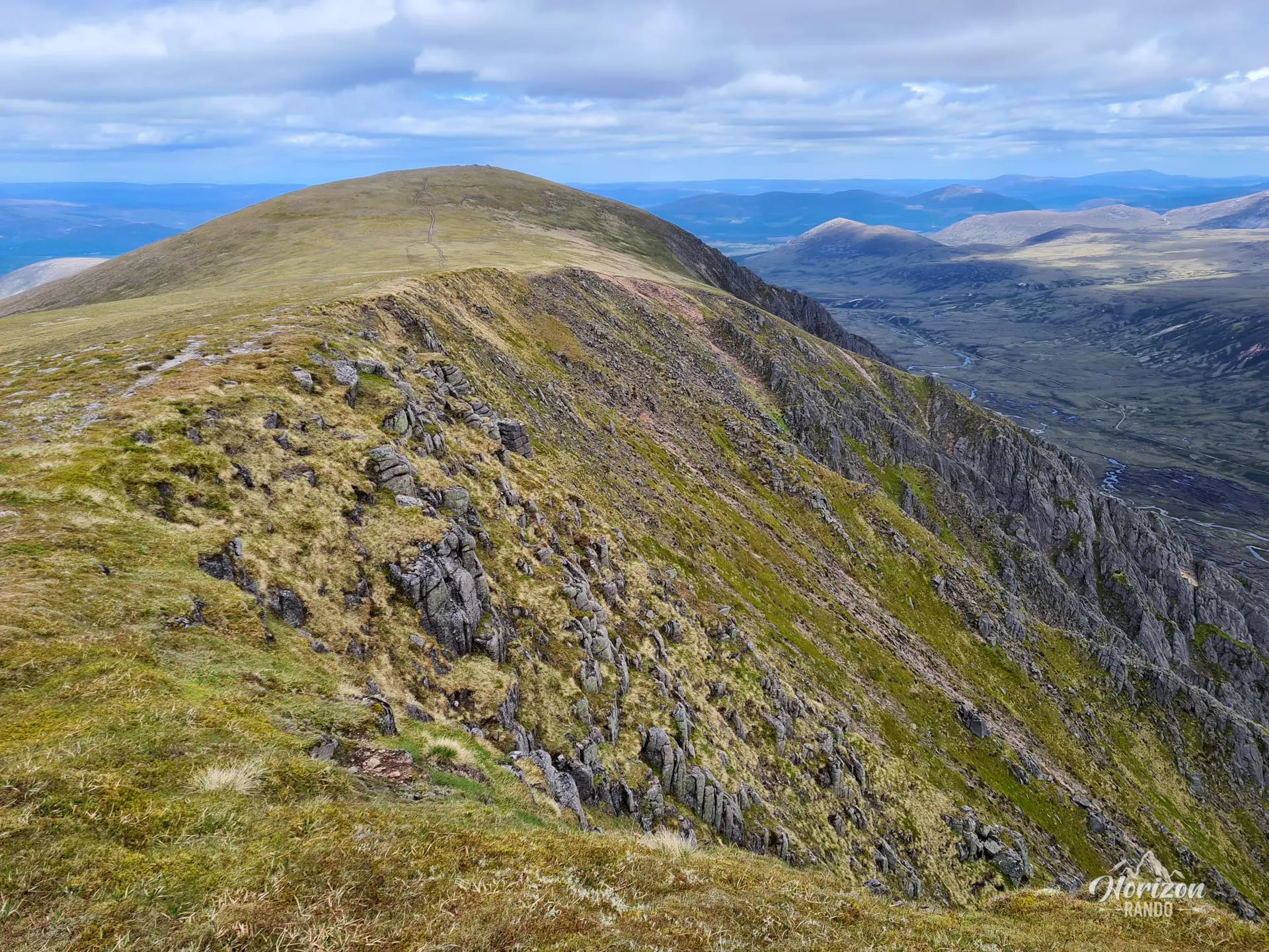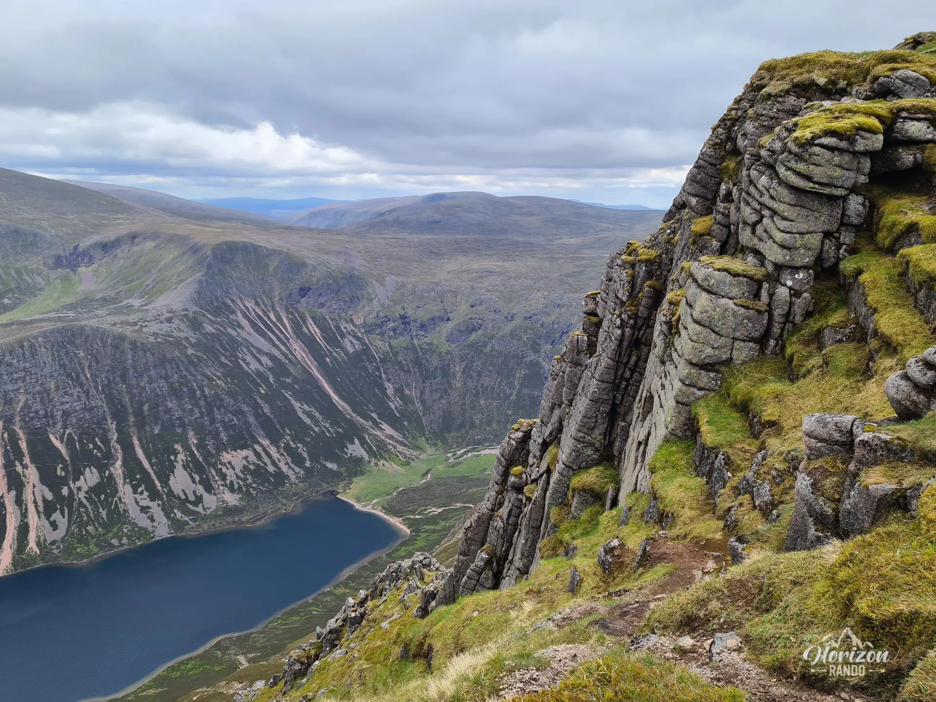 - Le panorama depuis le sommet : une vue plongeante spectaculaire sur le Loch Einich encaissé 500 mètres en contrebas et, face à vous, les imposantes parois de Braeriach.