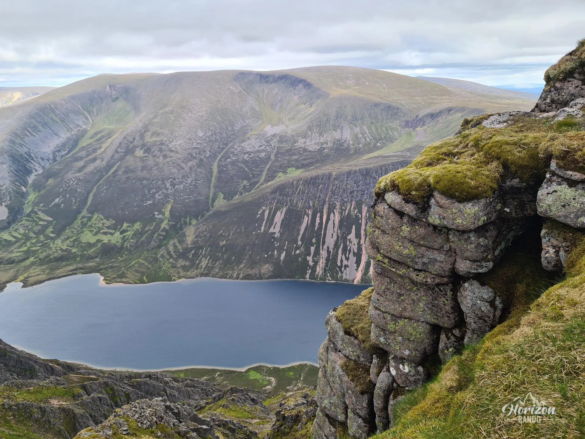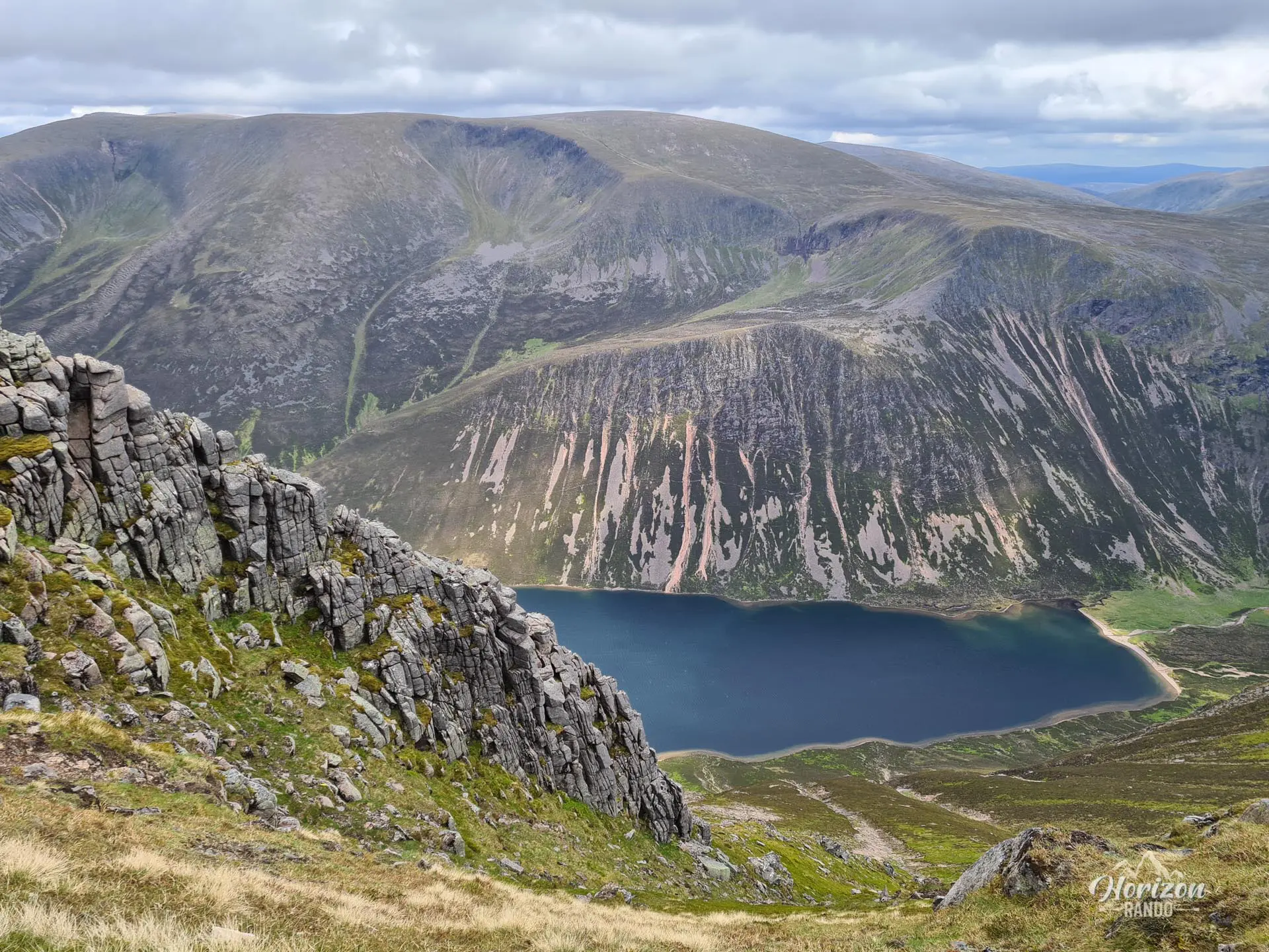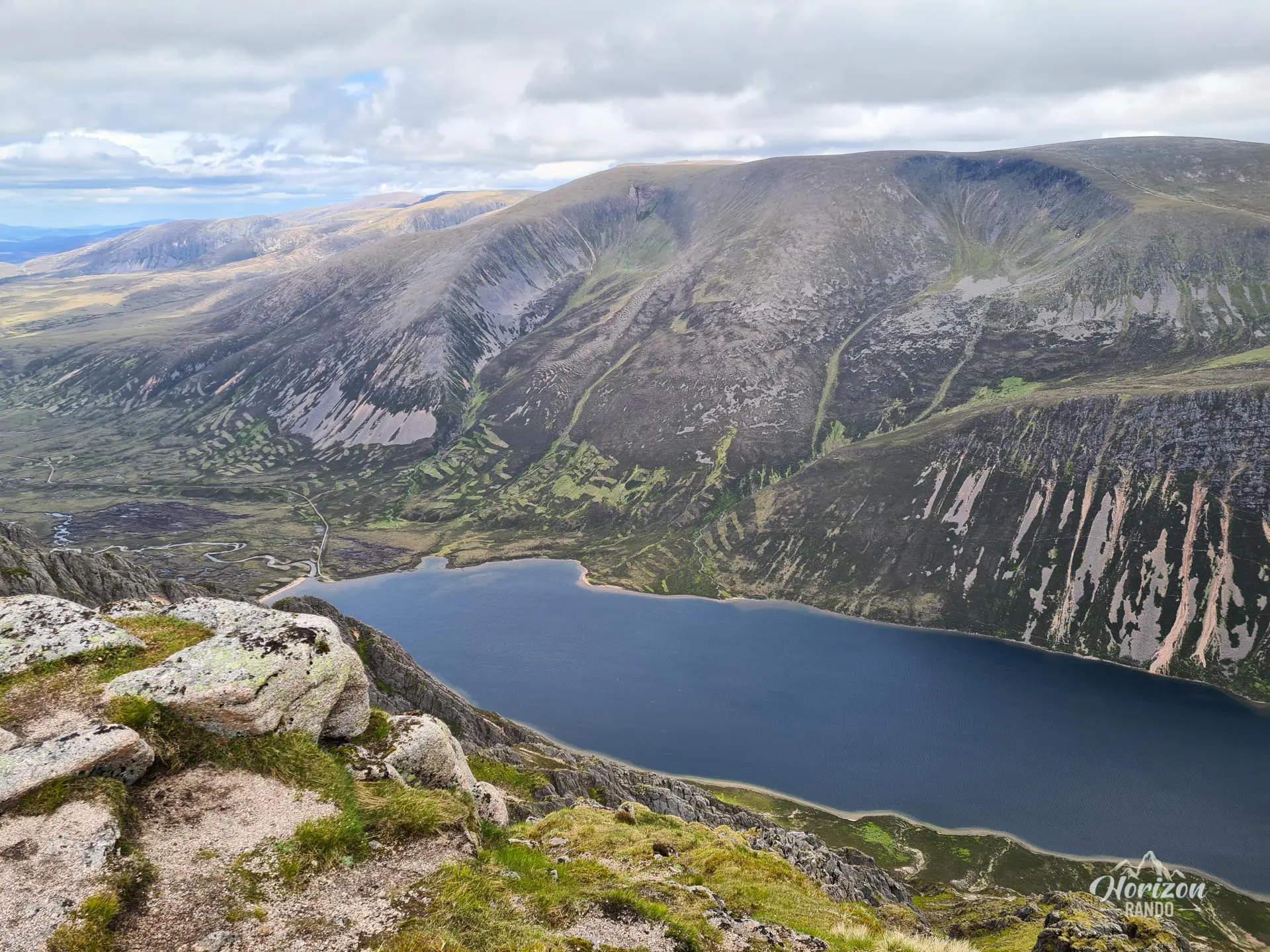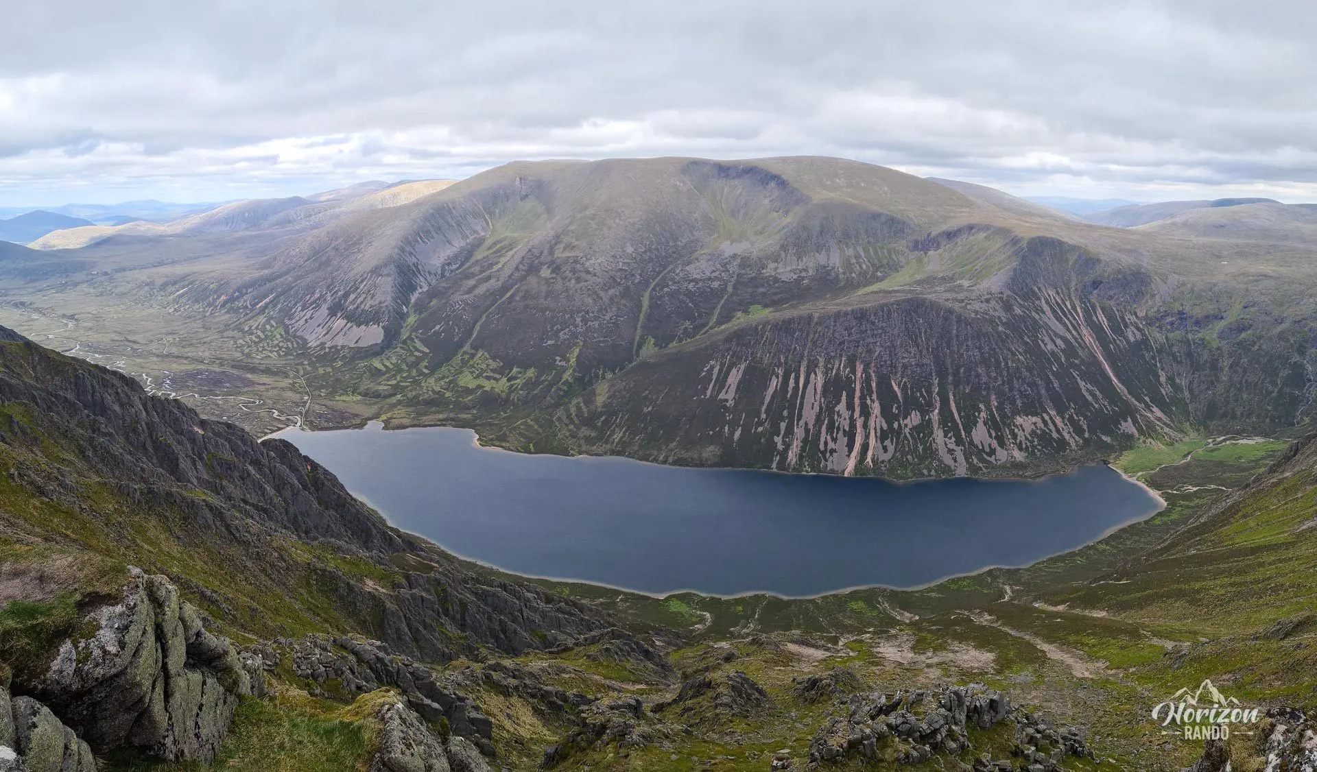 - Le panorama depuis le sommet : une vue plongeante spectaculaire sur le Loch Einich encaissé 500 mètres en contrebas et, face à vous, les imposantes parois de Braeriach.