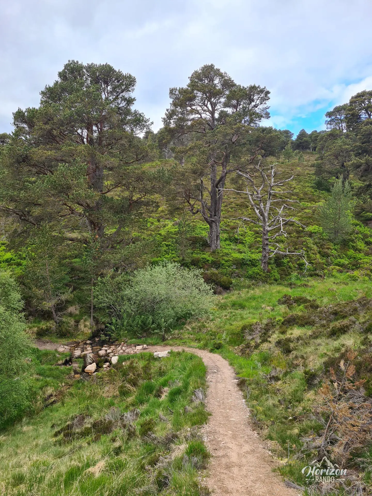 La randonnée vers le sommet de Sgòr Gaoith est longue et physiquement exigeante, avec près de 900 mètres de dénivelé positif répartis sur 15,5 km aller-retour. L'itinéraire, non balisé, débute par un excellent sentier qui traverse la pinède en longeant l'Allt Ruadh.