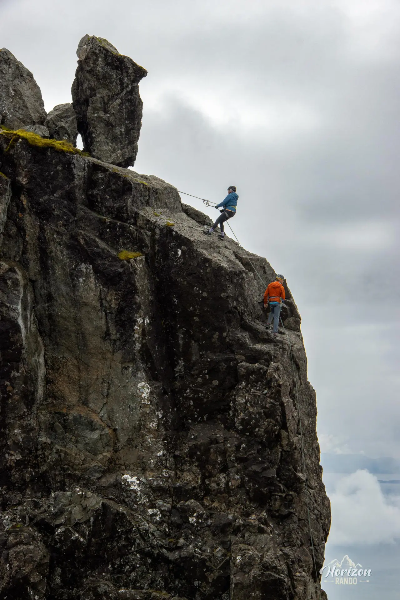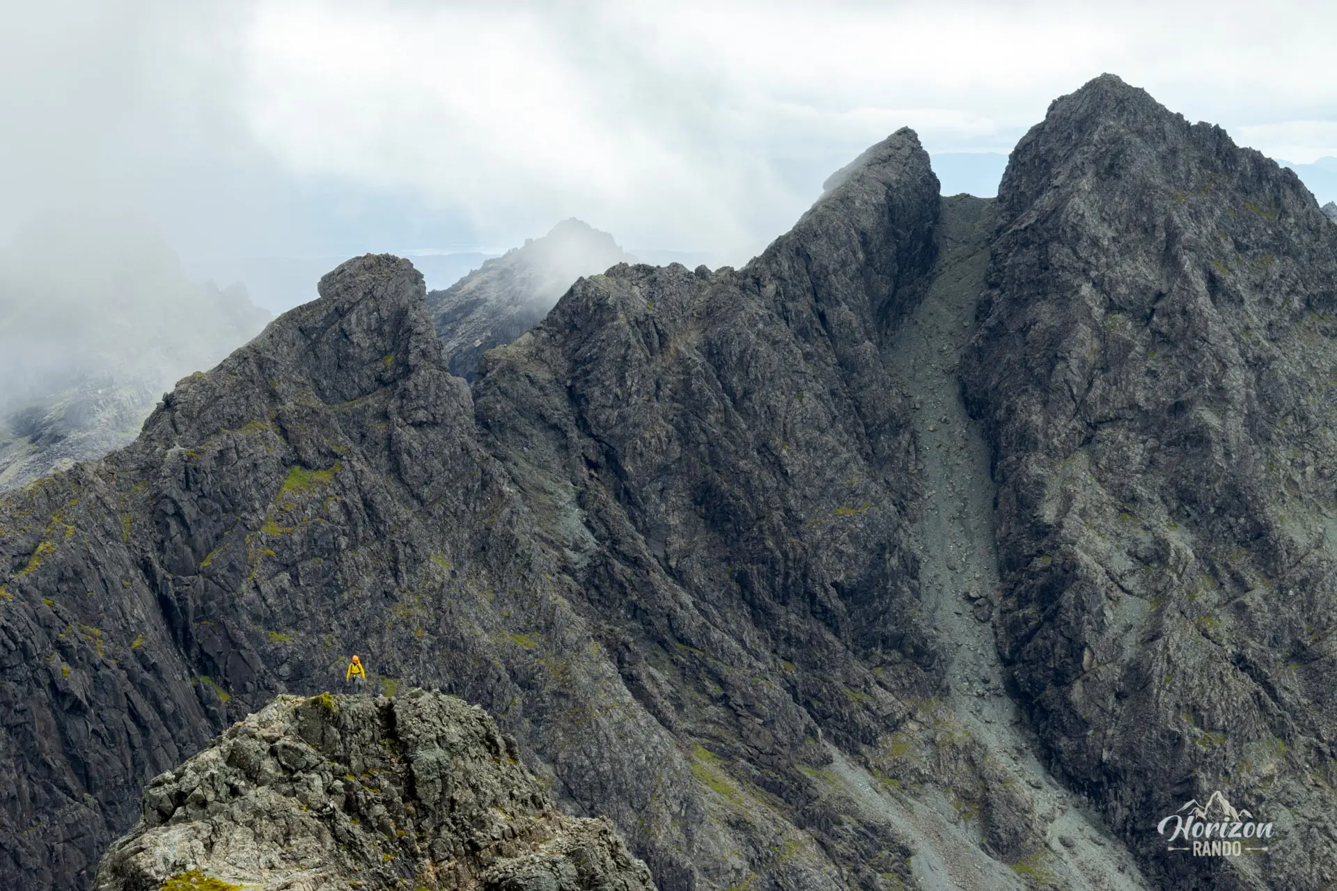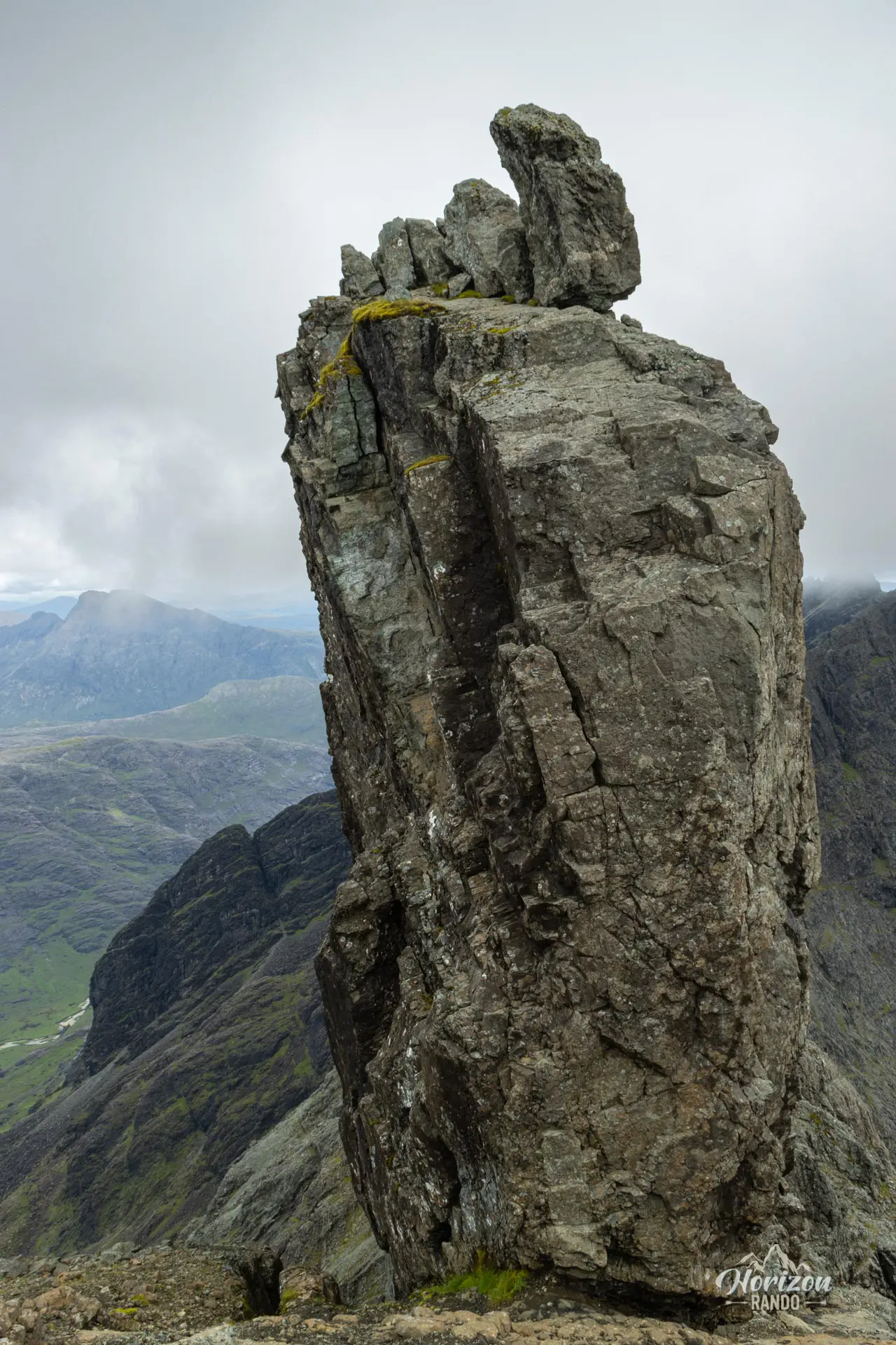 Au sommet, vous découvrirez l’Inaccessible Pinnacle, une aiguille rocheuse de 50 m de haut perchée au-dessus du Sgùrr Dearg. Cette randonnée n’inclut pas l’ascension de ce rocher, qui nécessite un équipement d’escalade et des compétences techniques — c’est d’ailleurs le seul Munro d’Écosse à demander un tel niveau.