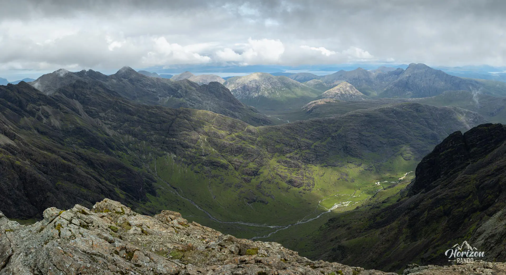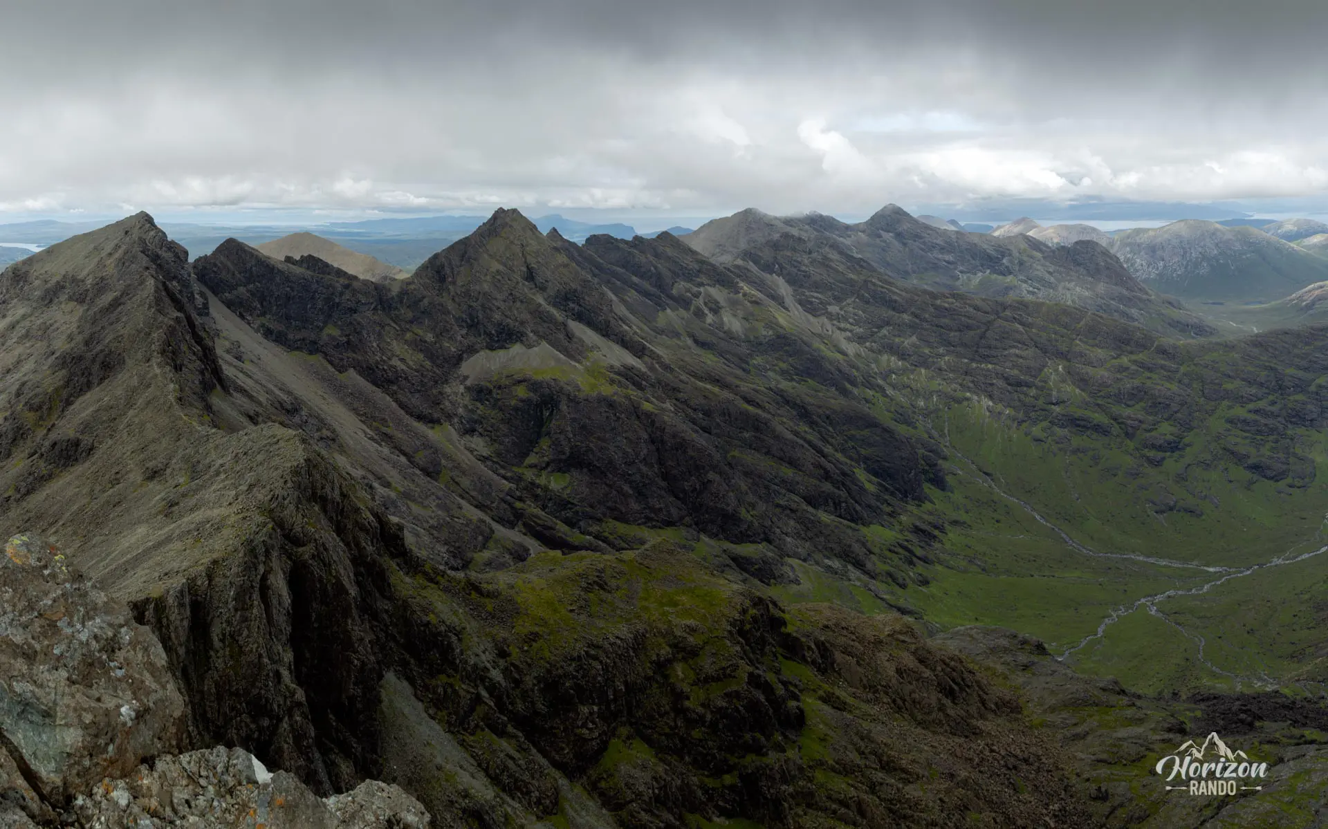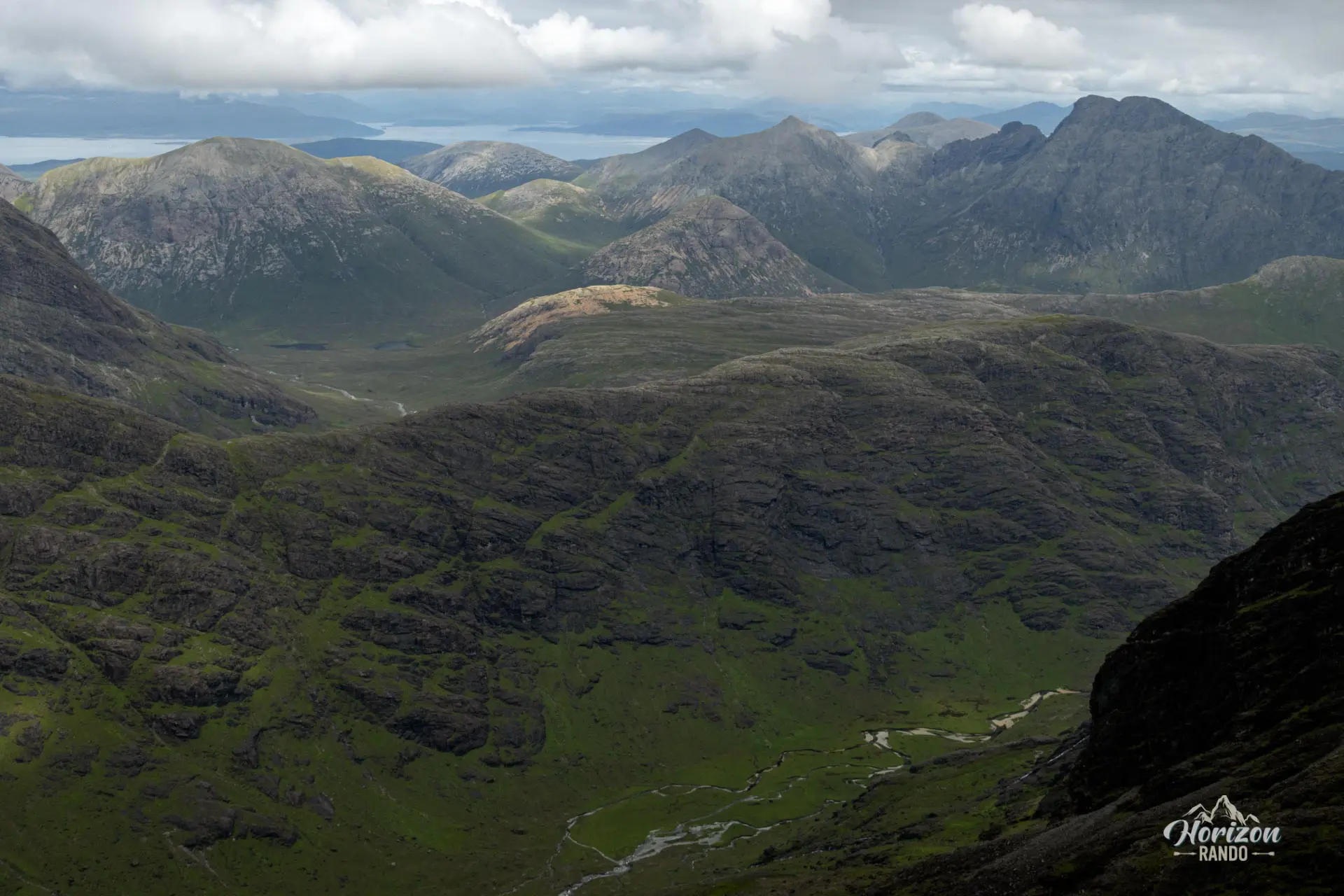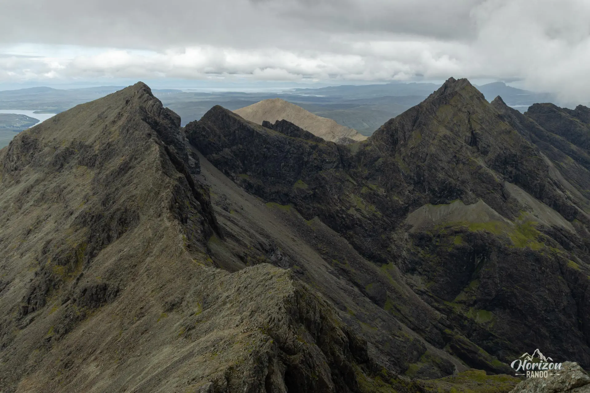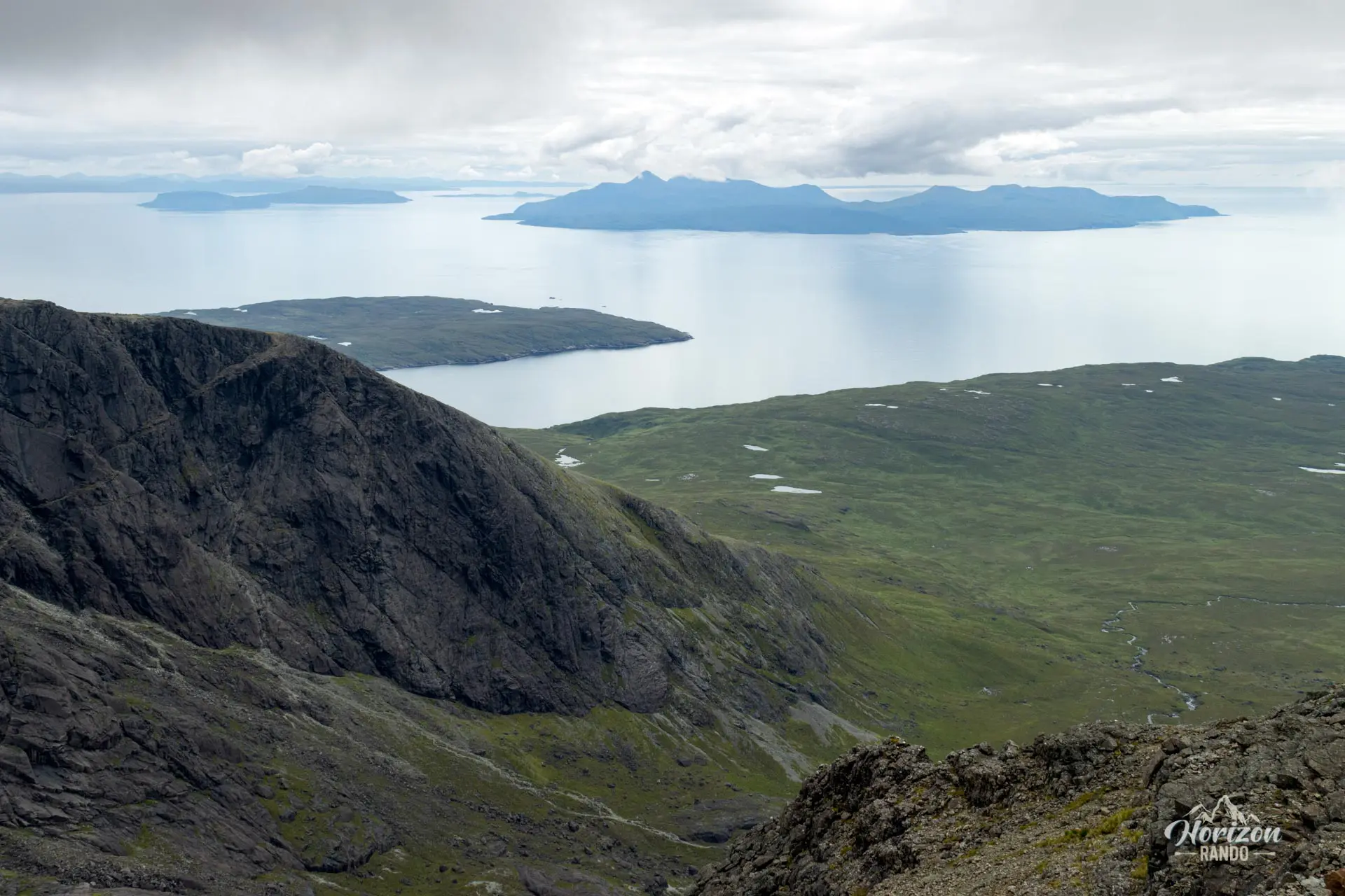 - Les panoramas grandioses depuis la crête des Cuillins : vue plongeante sur Coire Lagan et le Sgùrr Alasdair, perspectives époustouflantes sur l'ensemble de la chaîne montagneuse et les petites îles environnantes (Eigg, Rum, etc.).