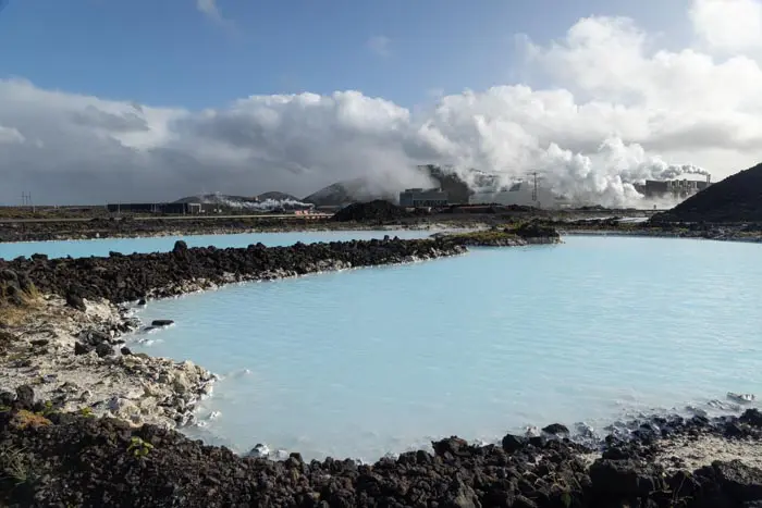 Le Blue Lagoon est un vaste lac idéal pour la baignade, avec une température moyenne de l’eau autour de 39 °C. La couleur bleu laiteuse de l'eau est due à sa forte teneur en silice, qui forme une boue blanche au fond du lac que les baigneurs peuvent appliquer sur leur peau.