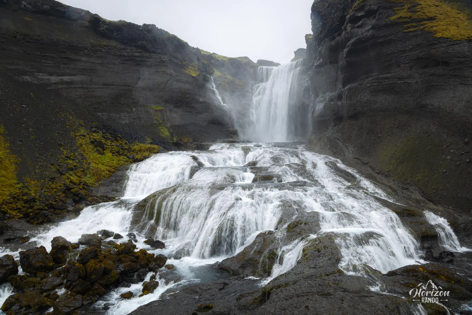 En plus de vous émerveiller devant le canyon lui-même, ce circuit vous invite à découvrir la magnifique chute d'eau d'Ófærufoss. Cette cascade à plusieurs niveaux résonne au milieu de ce paysage saisissant et dévasté.
