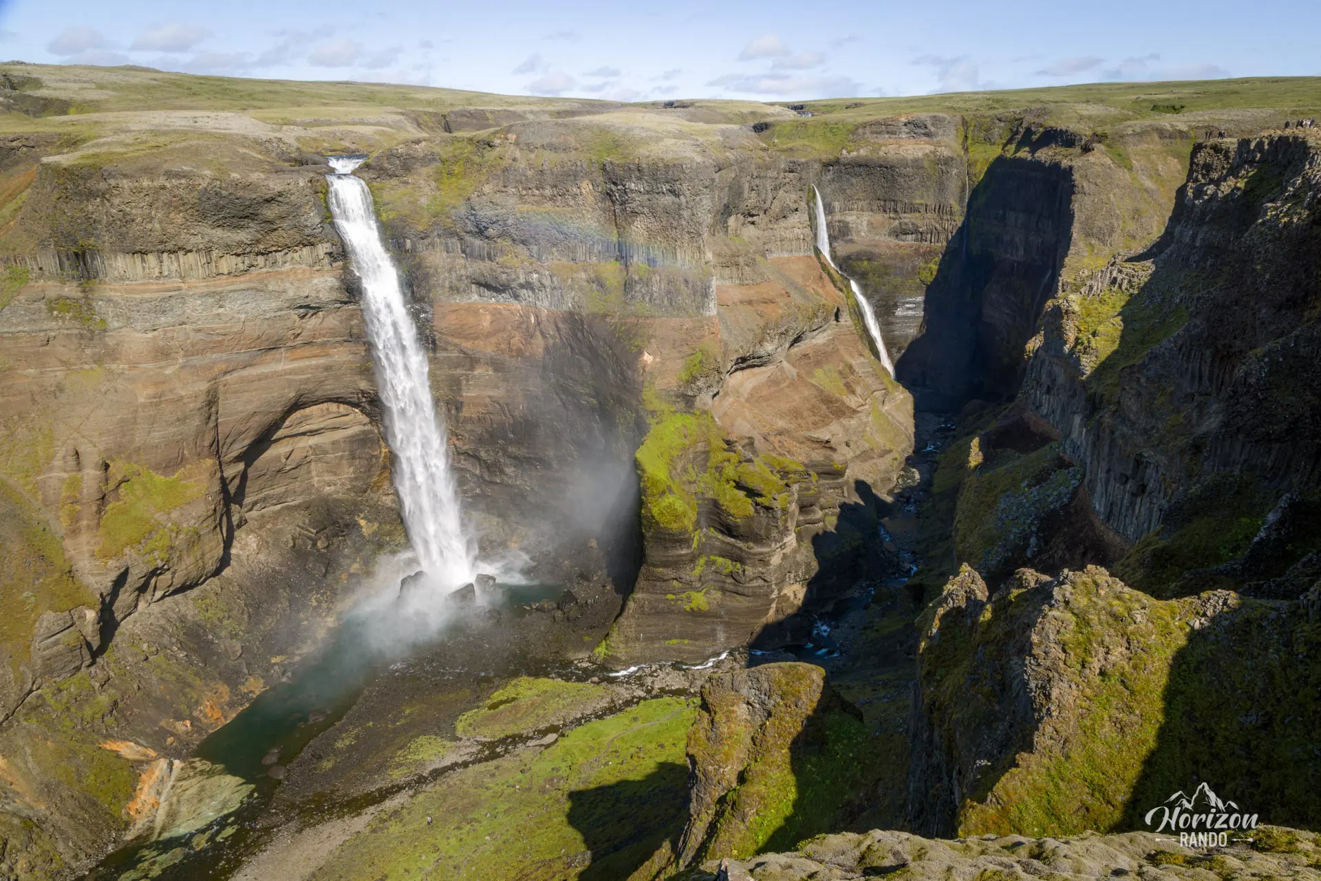 Du haut de ses 122 mètres, la cascade de Háifoss plonge avec grâce dans le canyon, aux côtés de sa voisine Granni, offrant un spectacle saisissant. Il est également possible de faire une courte randonnée afin de découvrir le canyon et d'admirer les cascades depuis le bas. Comptez entre une heure et une heure et demie pour parcourir les 4 kilomètres et 200 mètres de dénivelé.