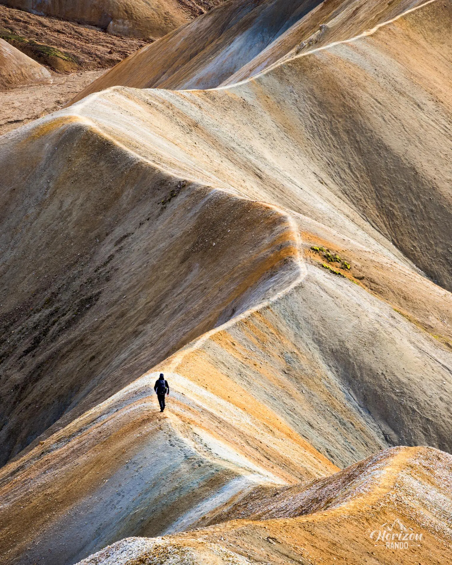 Conçu pour réunir tous mes endroits favoris du Landmannalaugar en une seule randonnée, cette expérience est inoubliable et sans conteste ma préférée en Islande. Cela en dit long, compte tenu de la richesse des merveilles naturelles de ce pays. Le début du parcours jusqu'au sommet de Bláhnúkur attire un bon nombre de randonneurs, mais l'ambiance devient très intime par la suite.
