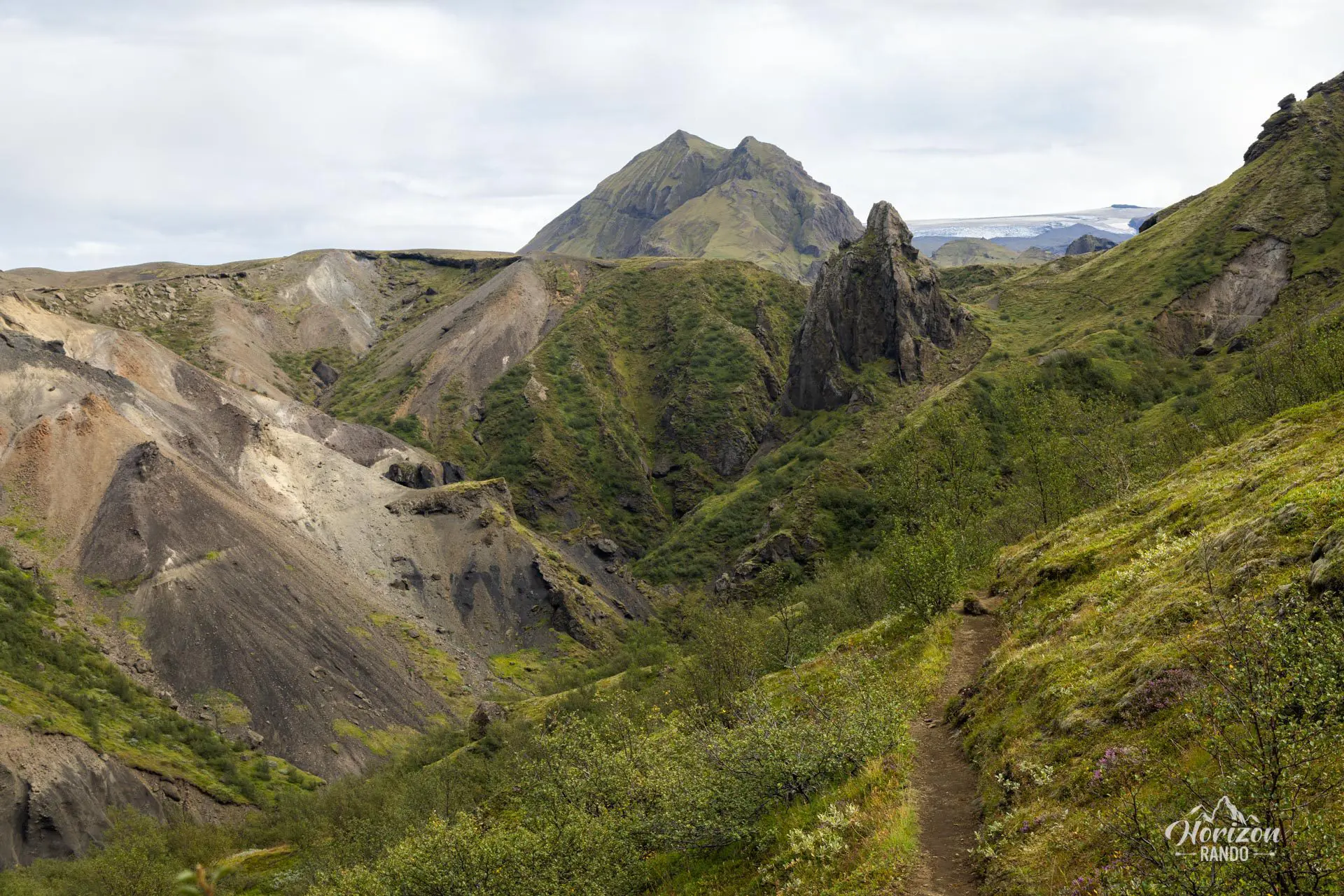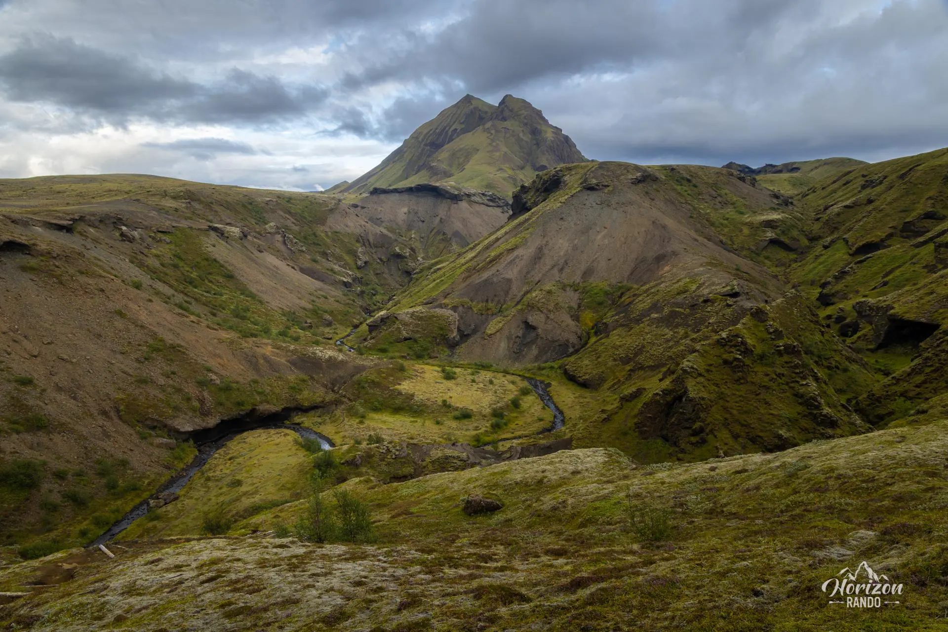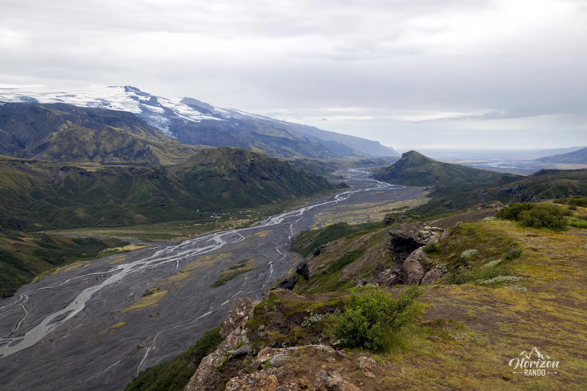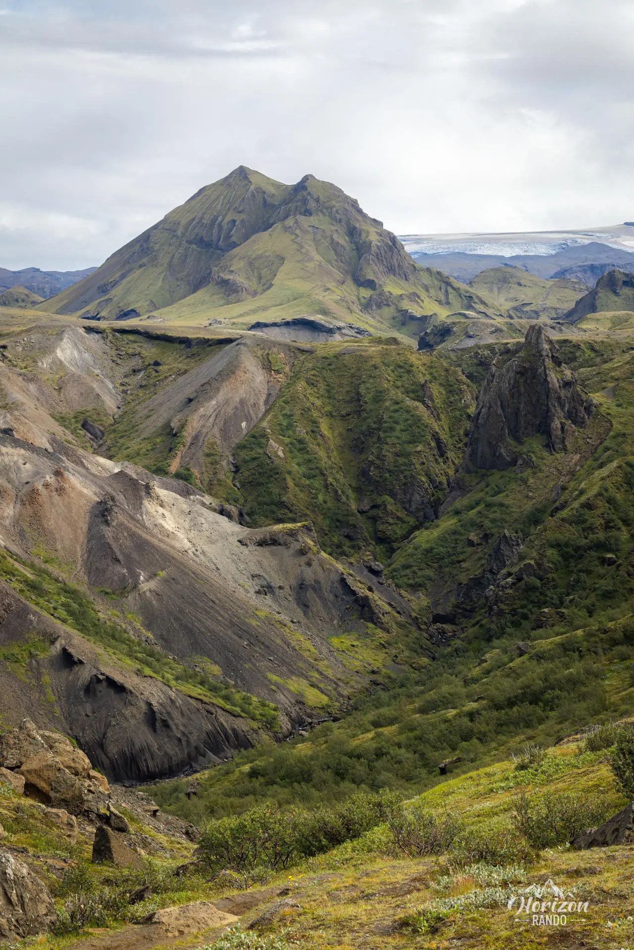 - Panoramas exceptionnels : le point culminant offre une vue spectaculaire à 360° sur les méandres de la rivière Krossá, les glaciers Myrdalsjökull et Eyjafjallajökull, le mont Rjúpnafell et les impressionnantes vallées glaciaires.