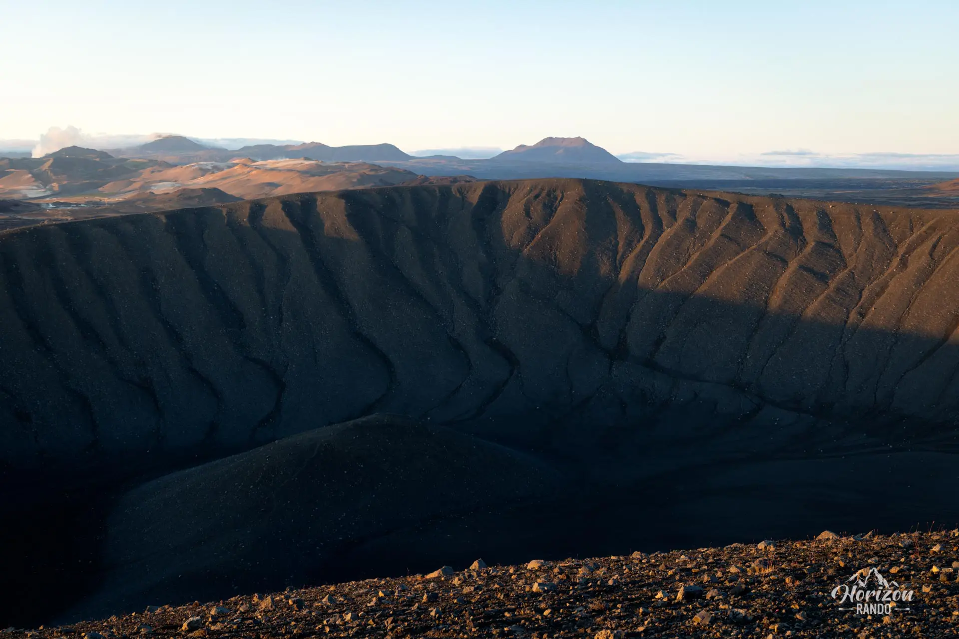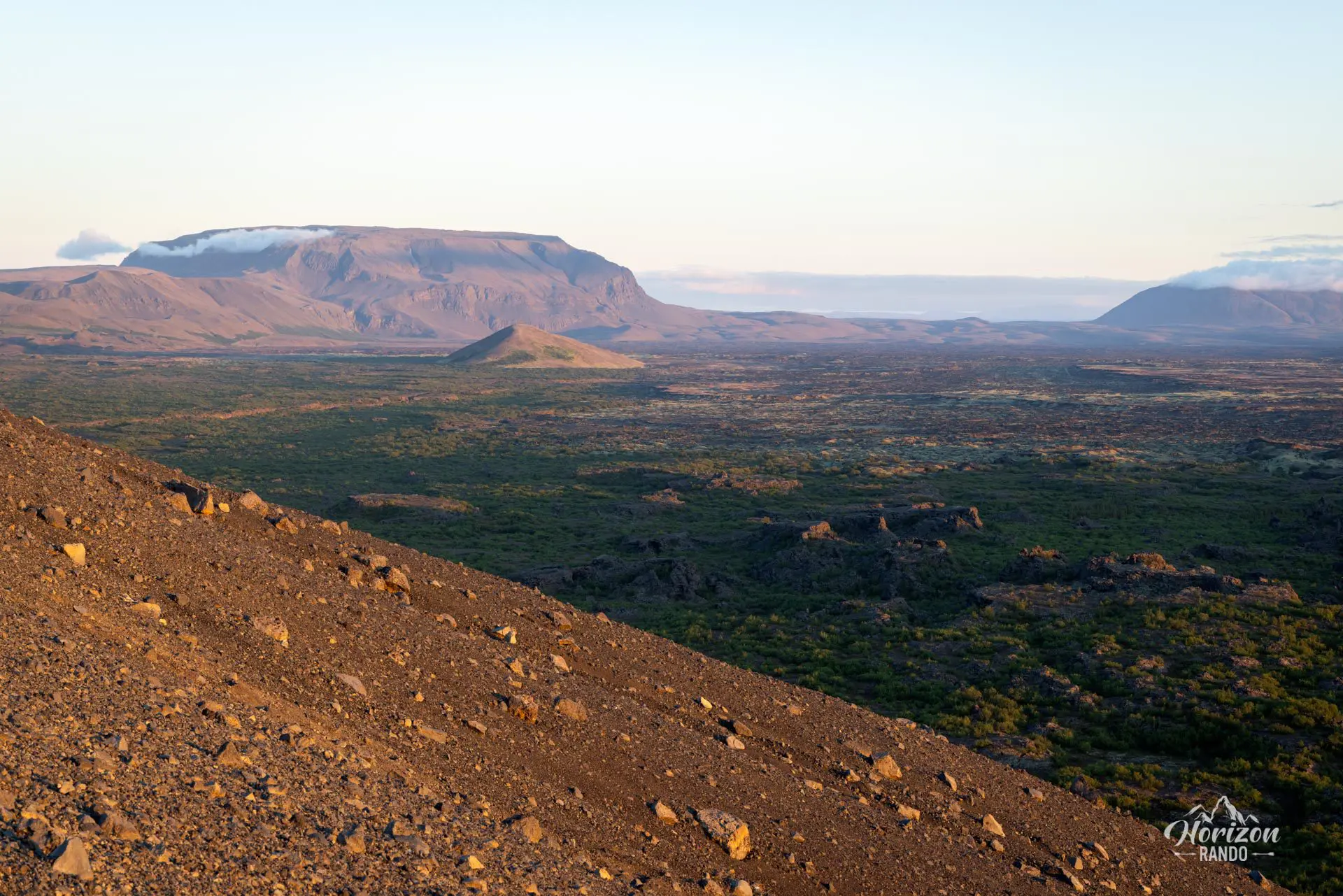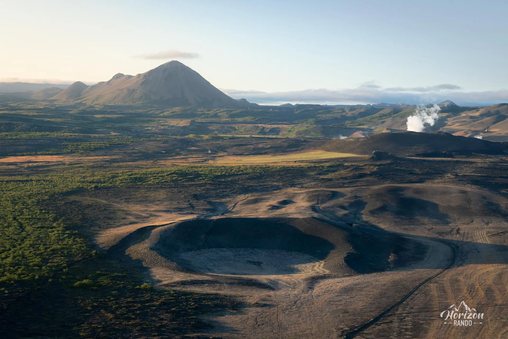 Ce cône volcanique quasi parfait d'un kilomètre de diamètre domine majestueusement la région du lac Mývatn, offrant depuis ses bords une vue panoramique exceptionnelle sur les champs de lave de Dimmuborgir, le lac Mývatn et les formations géologiques environnantes.