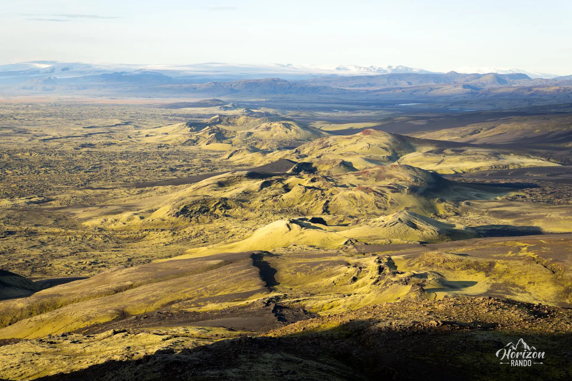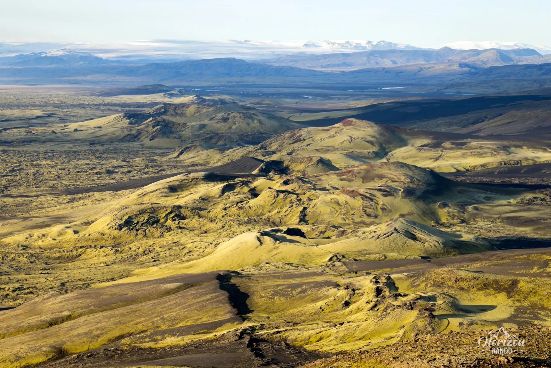 Depuis le sommet du Laki (812 m), vous pourrez admirer cette ligne de cratères avec, en toile de fond, la vaste calotte glaciaire du Vatnajökull, offrant un paysage à la fois magnifique et émouvant. Si vous avez la chance de visiter après quelques jours de pluie, la mousse recouvrant les champs de lave sera d'un jaune vif, créant un contraste saisissant avec la lave noire.