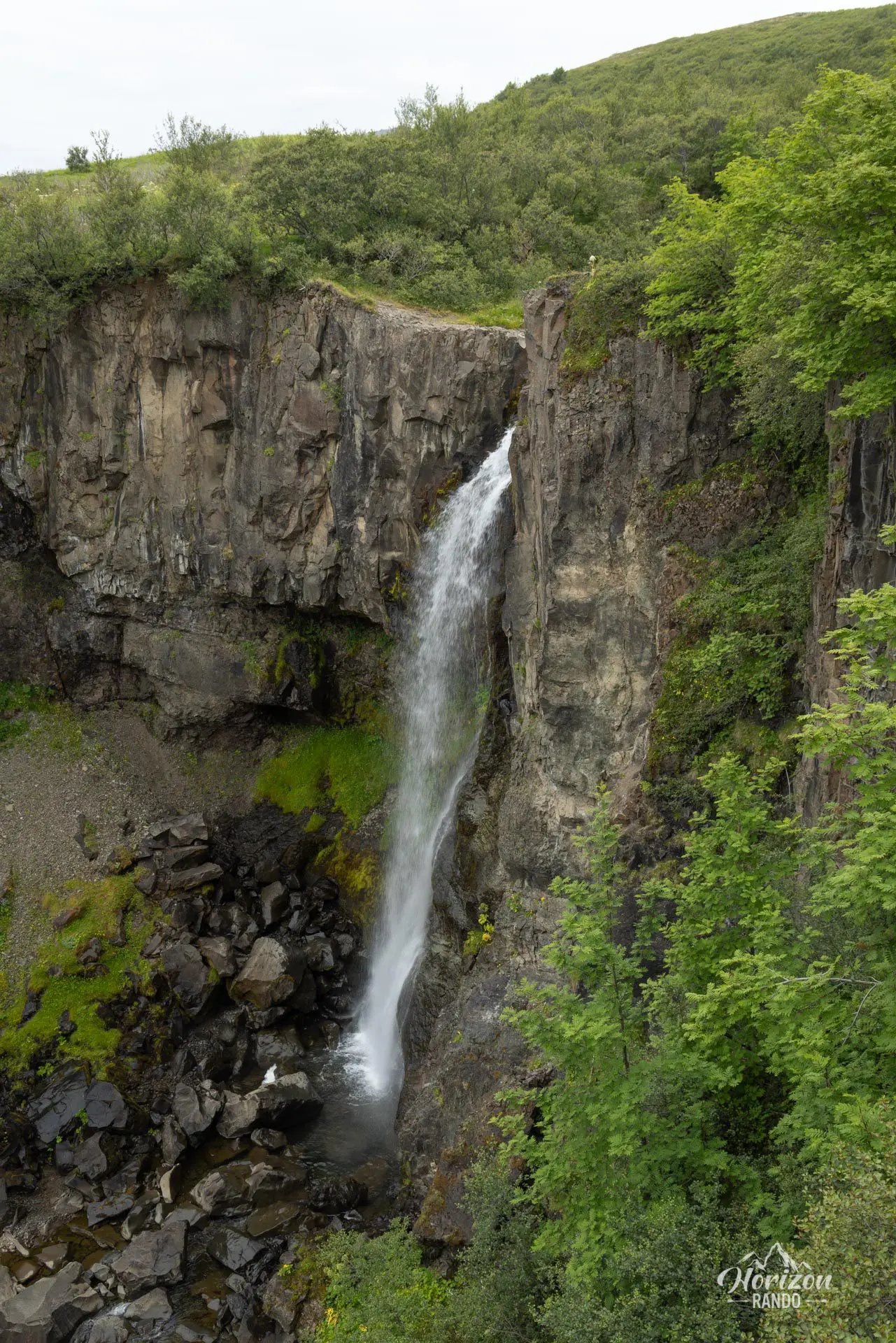 - La cascade de Svartifoss en début de parcours : entourée de ses spectaculaires colonnes de basalte hexagonales.