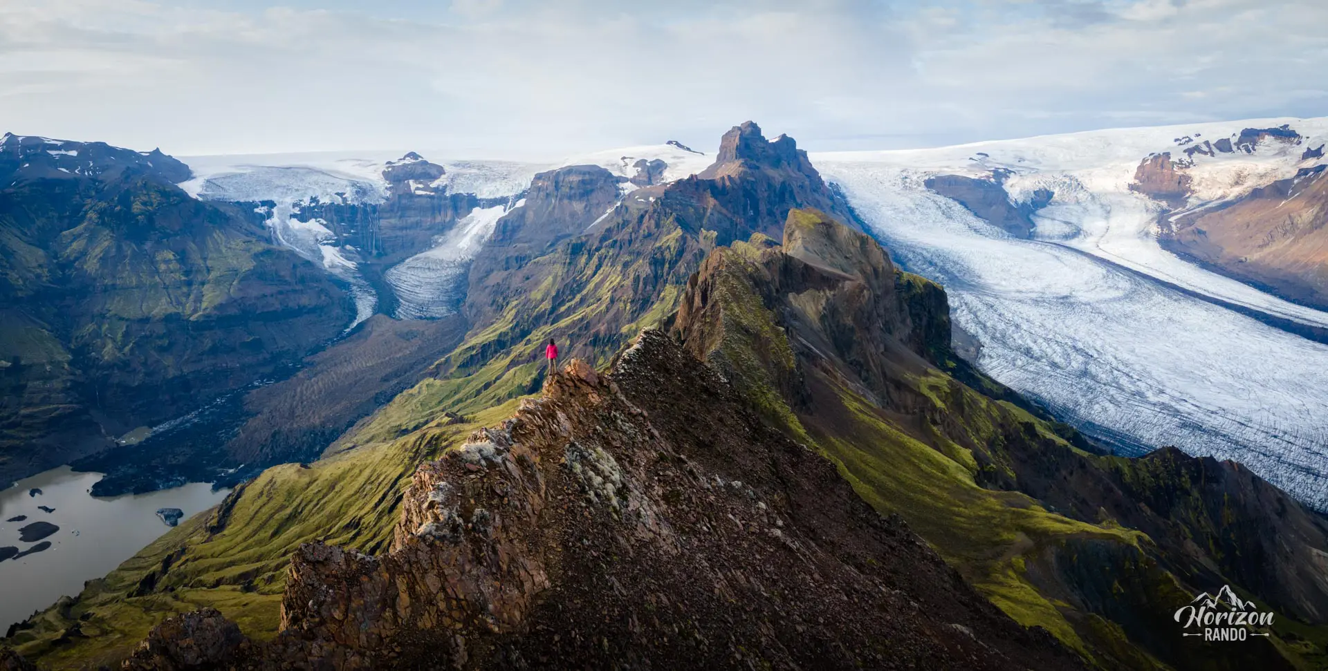 - Le panorama à 360° époustouflant depuis le sommet : vue imprenable sur les deux glaciers géants, Morsárjökull et Skaftafellsjökull, et leurs vallées glaciaires respectives de part et d'autre du sommet.