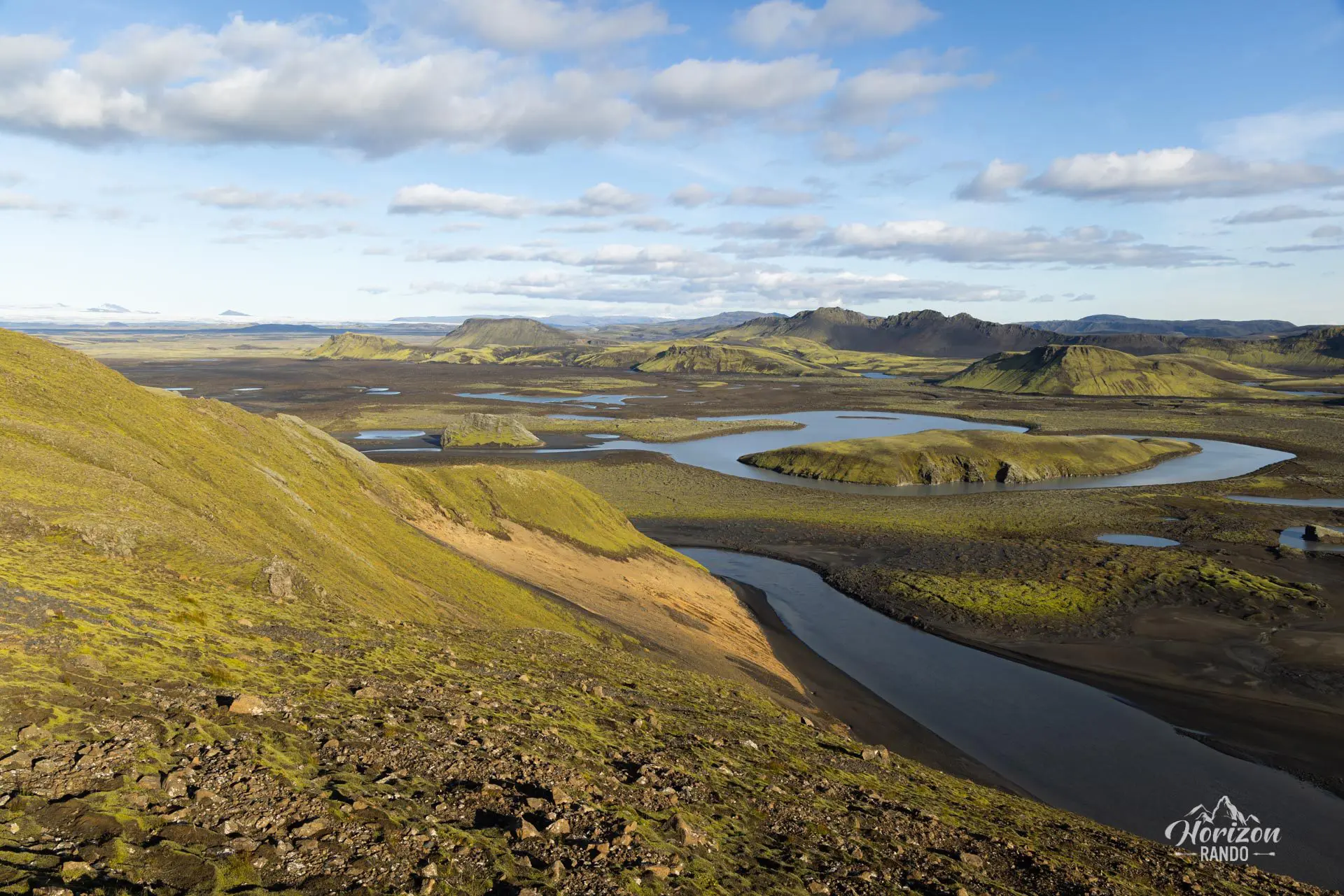 Ce point de vue est un belvédère sur l'est et le nord de la région, avec ses nombreux cours d'eau serpentant à travers les montagnes, et le majestueux Vatnajökull en toile de fond. Explorez également les autres points de vue pittoresques le long des rives du lac de Langisjór. Et surtout, ne manquez pas l'ascension de Sveinstindur, le sommet voisin qui dévoile un panorama des plus remarquables.