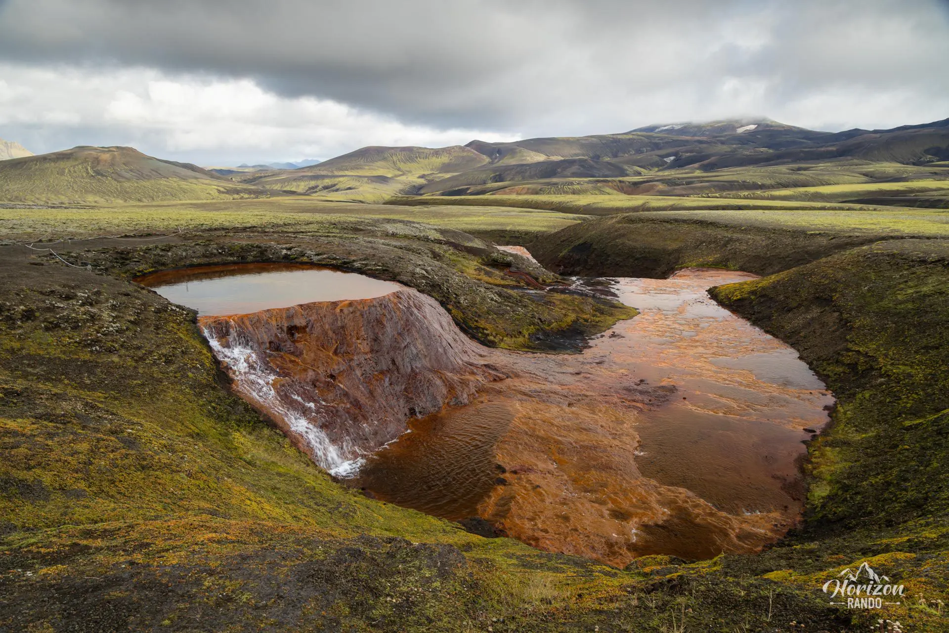 La randonnée de Rauðauga mène à l'une des merveilles naturelles les plus fascinantes d'Islande : l'Œil Rouge, source mystérieuse de la rivière Rauðfossakvísl. Avec une forte teneur en fer, ses eaux ont teinté le lit de la rivière et ses cascades d'une couleur rouge rouille distinctive.