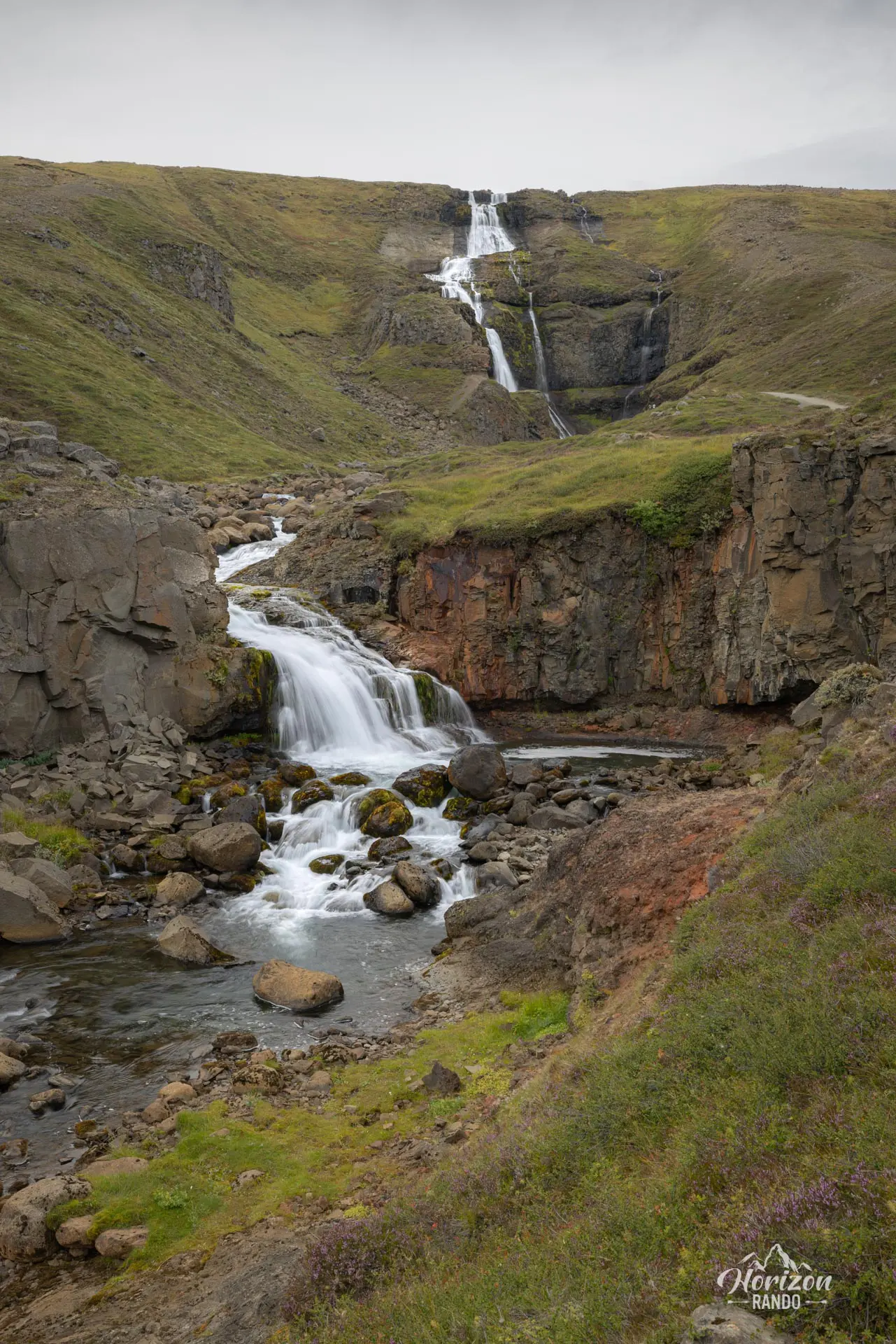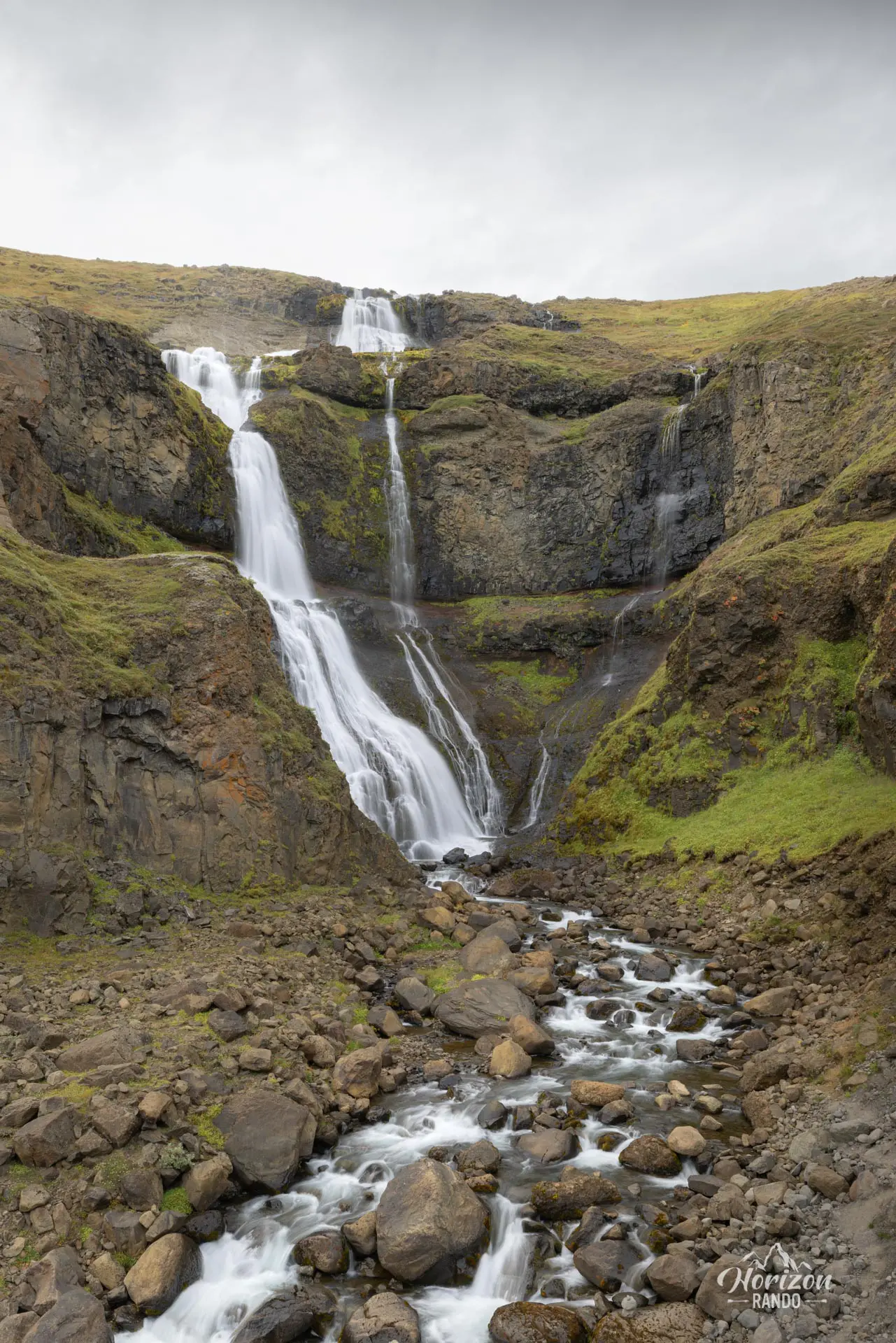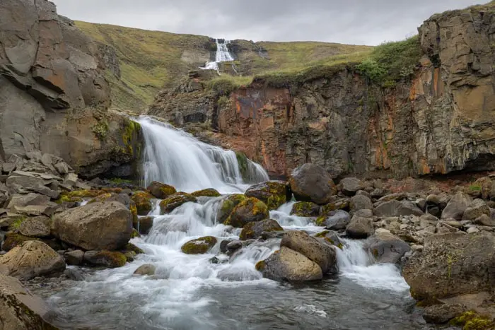 Rjúkandafoss offre un beau spectacle avec ses multiples cascades, formant collectivement une chute majestueuse de 92 mètres de haut, les plaçant parmi les plus imposantes d'Islande. Situées dans le nord-est du pays, elles comptent parmi les rares chutes accessibles directement depuis la célèbre Route 1, également connue sous le nom de Cercle d'Or. Faites-y donc une halte bienvenue, d'autant que rares sont ceux qui prennent le temps de les contempler !