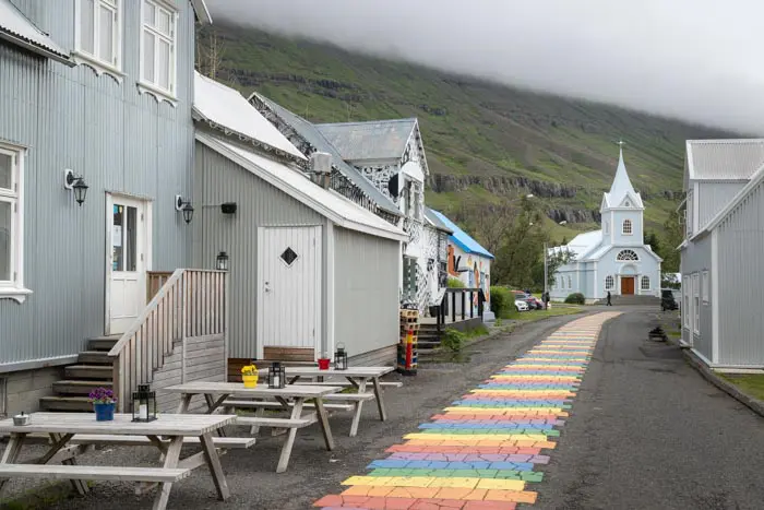 Connue comme une capitale artistique, Seyðisfjörður abrite après Reykjavik le plus grand nombre de galeries d'art et de boutiques de design du pays. Son église au bleu clair, inspirée de la Norvège, en est le symbole emblématique. Vous découvrirez également ses maisons aux couleurs vives, typiquement scandinaves. Ne manquez pas de vous promener sur l'Arc-en-ciel de Seyðisfjörður, un chemin carrelé symbolisant le soutien du village au mouvement LGBTQI.