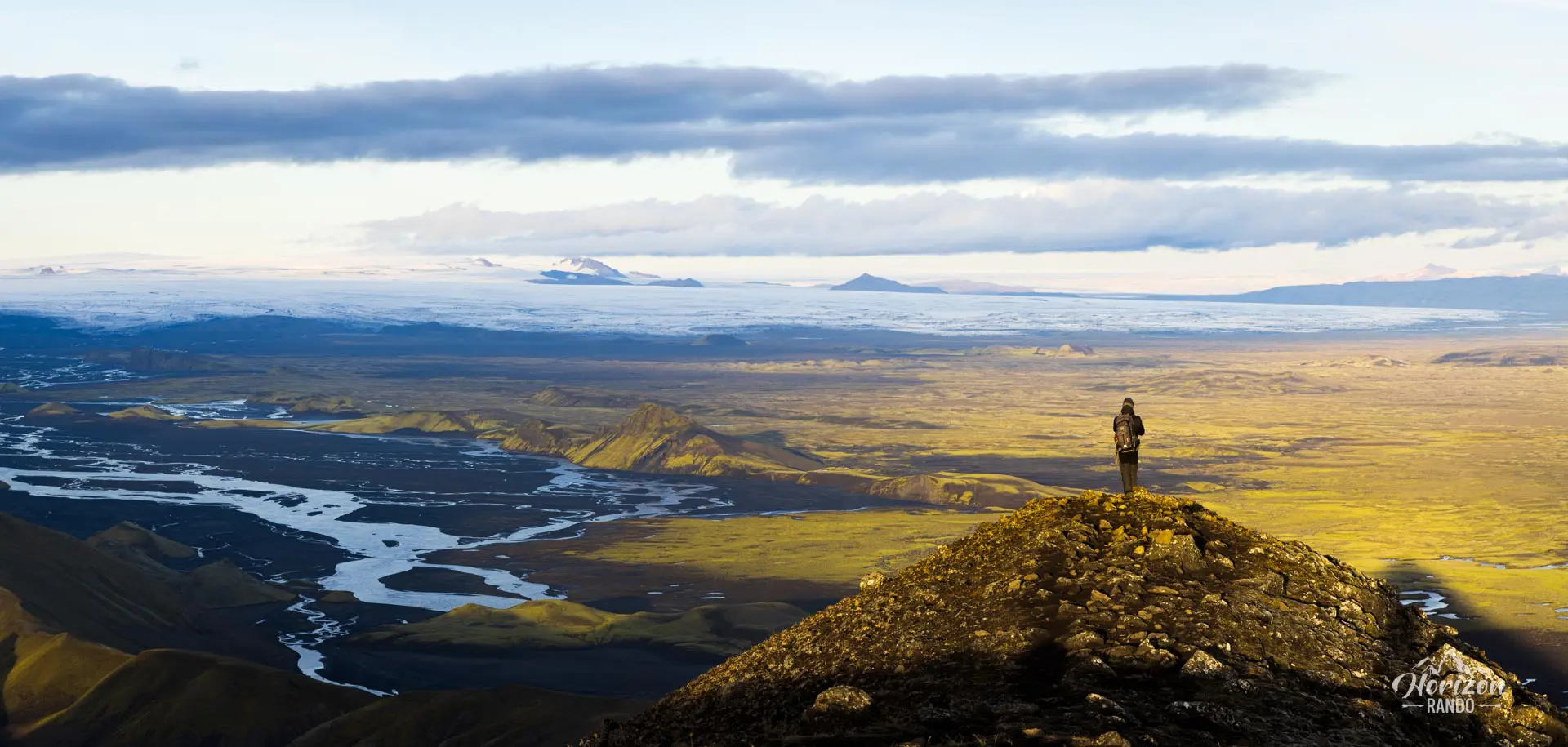 Le sommet dévoile l'un des plus sublimes panoramas d'Islande — le plus beau selon moi. Aucune photo ne saurait véritablement rendre justice à cet endroit; il faut être sur place pour comprendre l'ampleur de la beauté de la vue. Sveinstindur dévoile les vastes étendues des calottes glaciaires de Vatnajökull et de Mýrdalsjökull, des déserts de sable noir s'étendant à perte de vue, des centaines de sommets montagneux, des rivières sinueuses, et des dizaines de kilomètres d'horizon dans toutes les directions. L'immensité du paysage et le silence qui y règne éveillent des émotions d'une rare intensité.