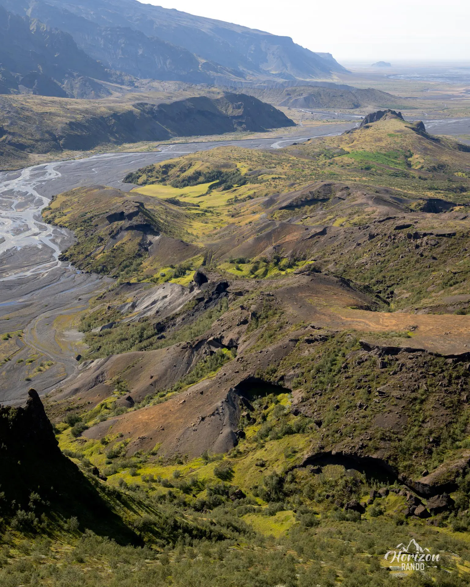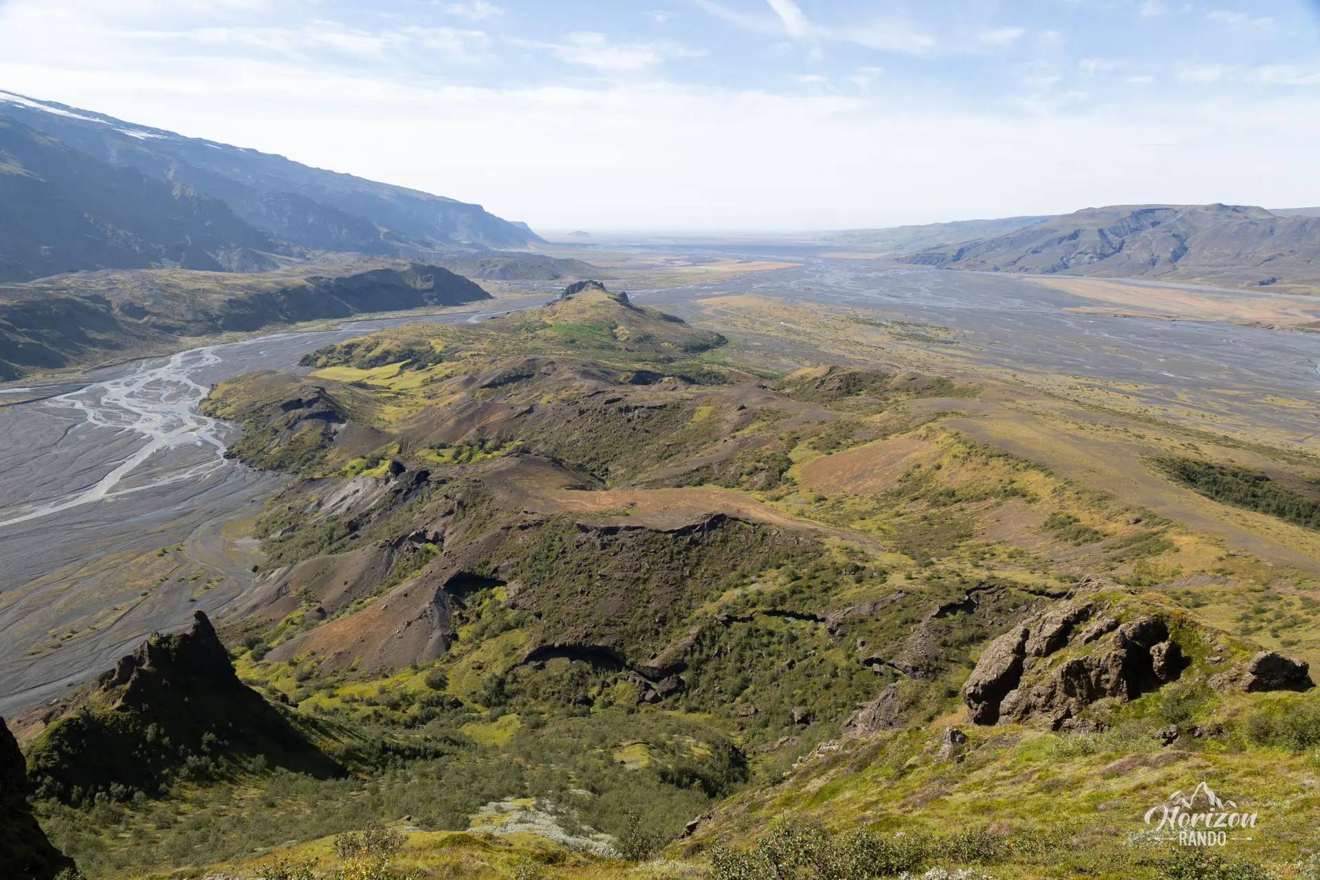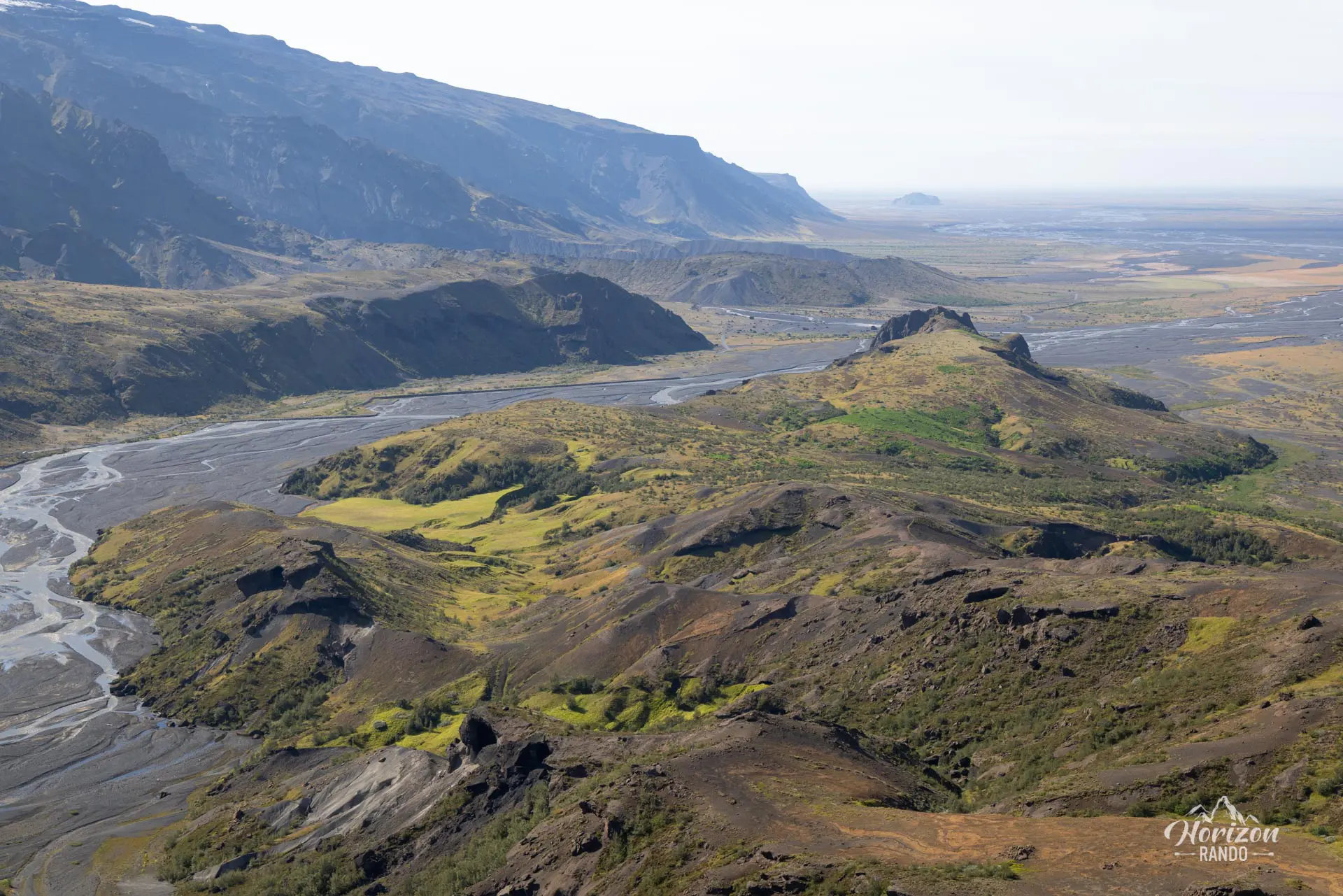 - Le panorama à 360° depuis le sommet, considéré comme l'un des plus beaux d'Islande, offrant une vue spectaculaire sur la vallée de Þórsmörk, les glaciers et montagnes alentours.
