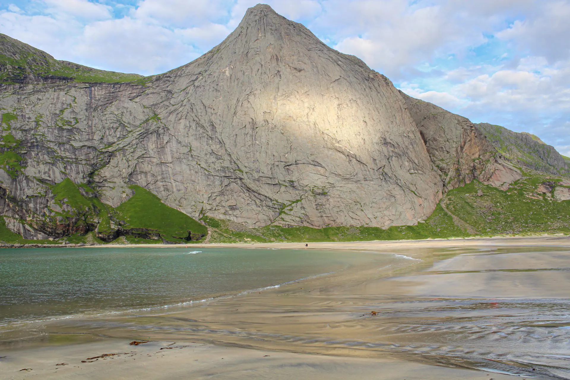 Cette randonnée vous conduit à la plage de Bunes, l'une des plus belles plages de Norvège, située sur l'île de Moskenesøya dans l'archipel des Lofoten. Cette étendue de sable blanc est bordée par les falaises impressionnantes de Helvetestinden et Storskiva.