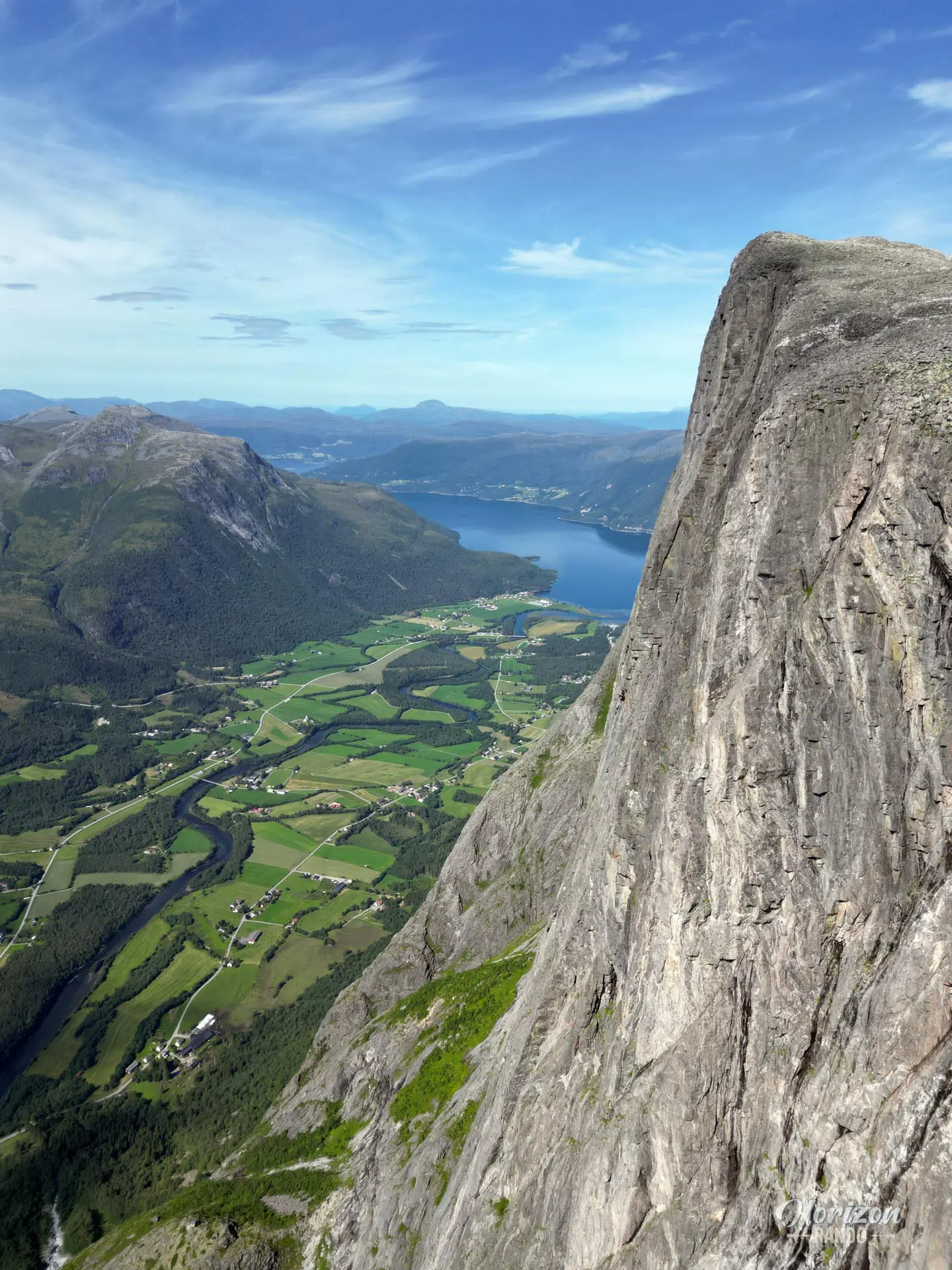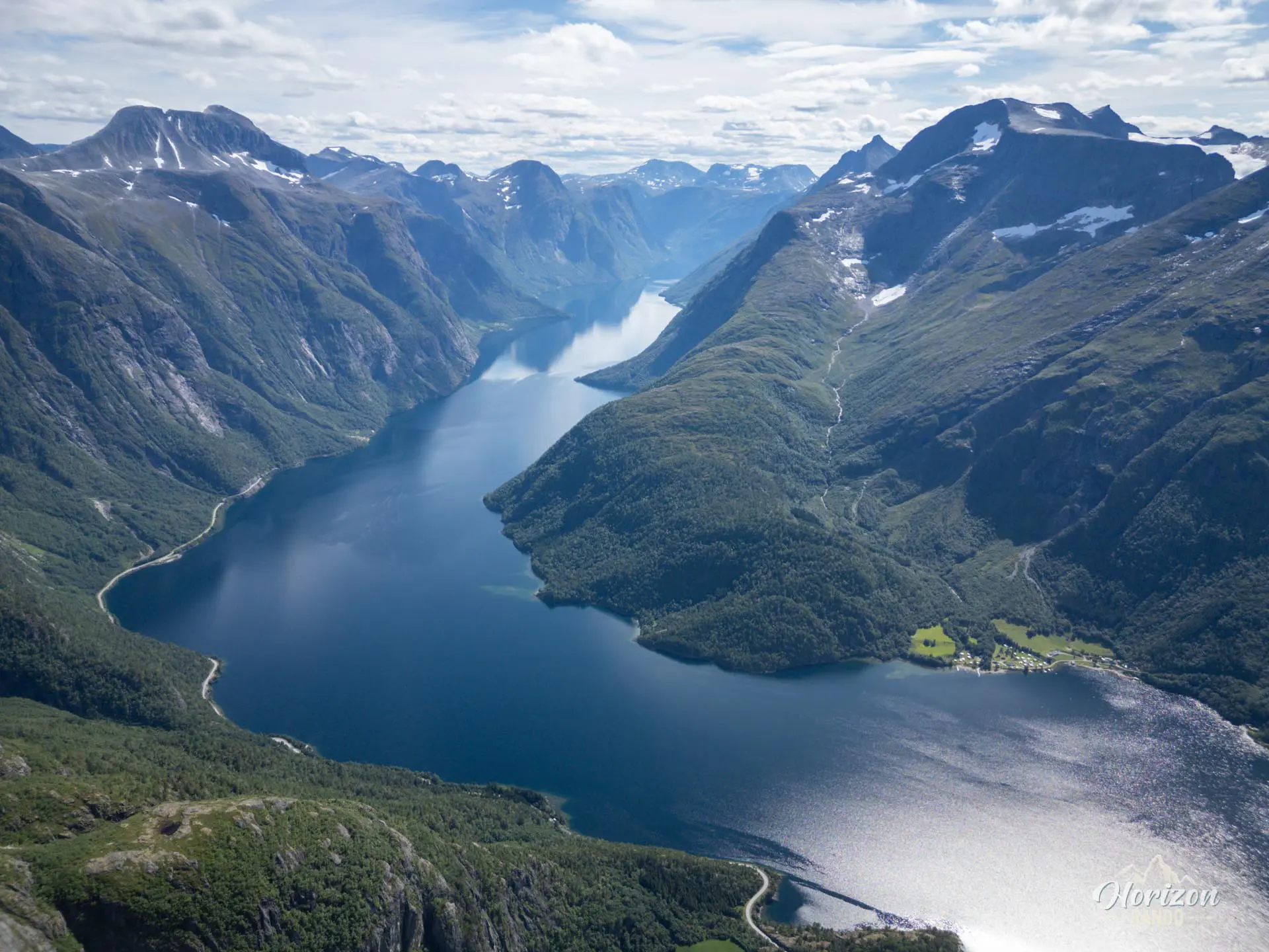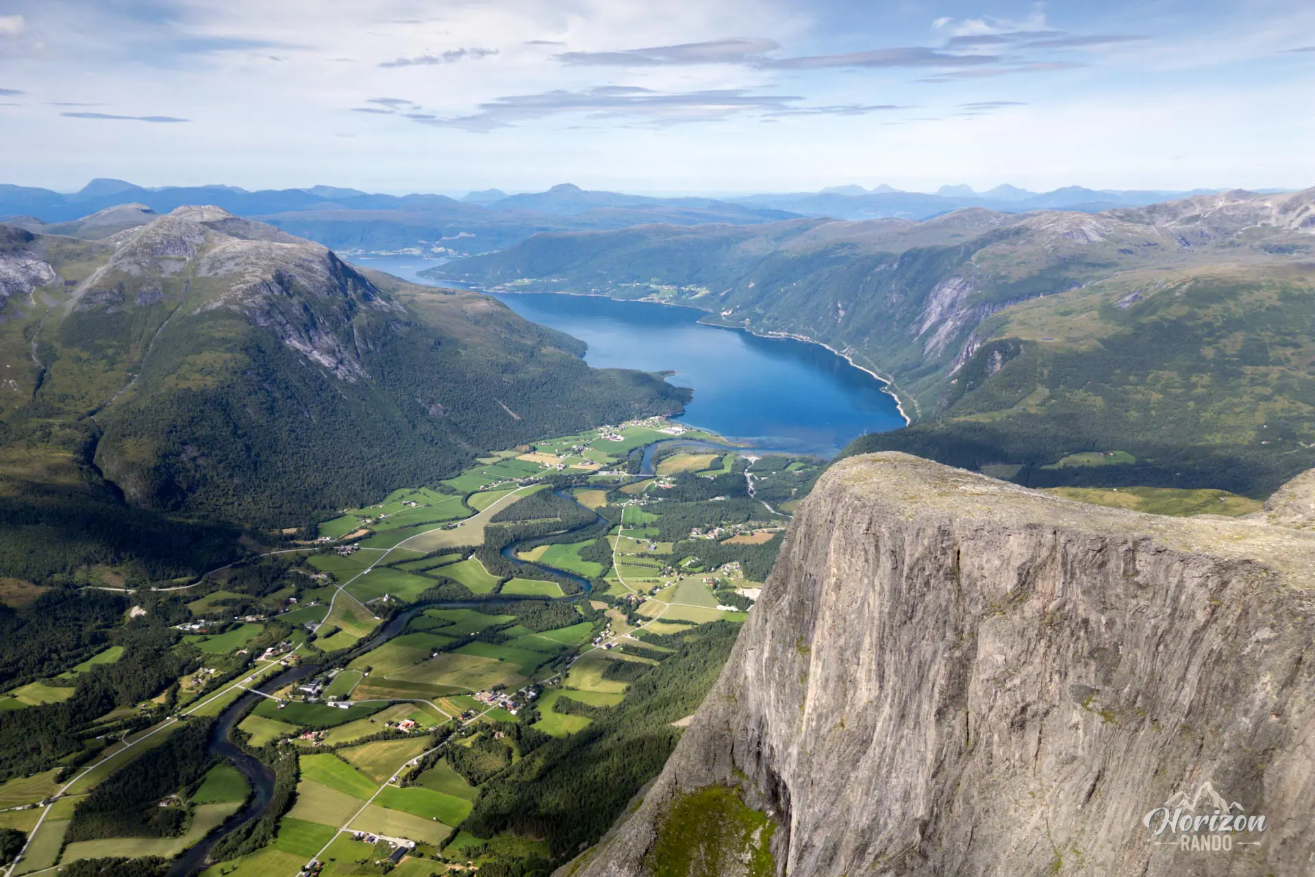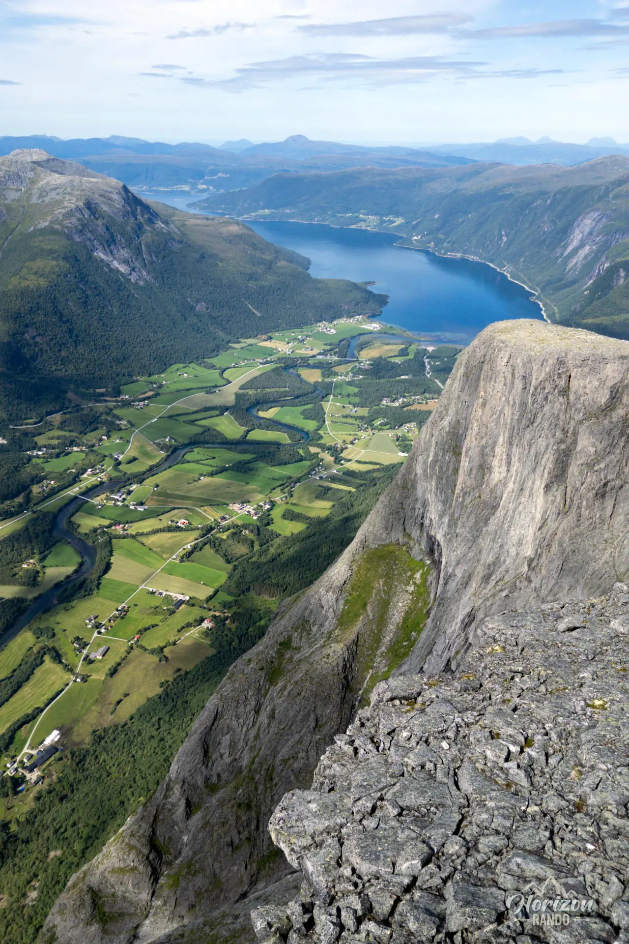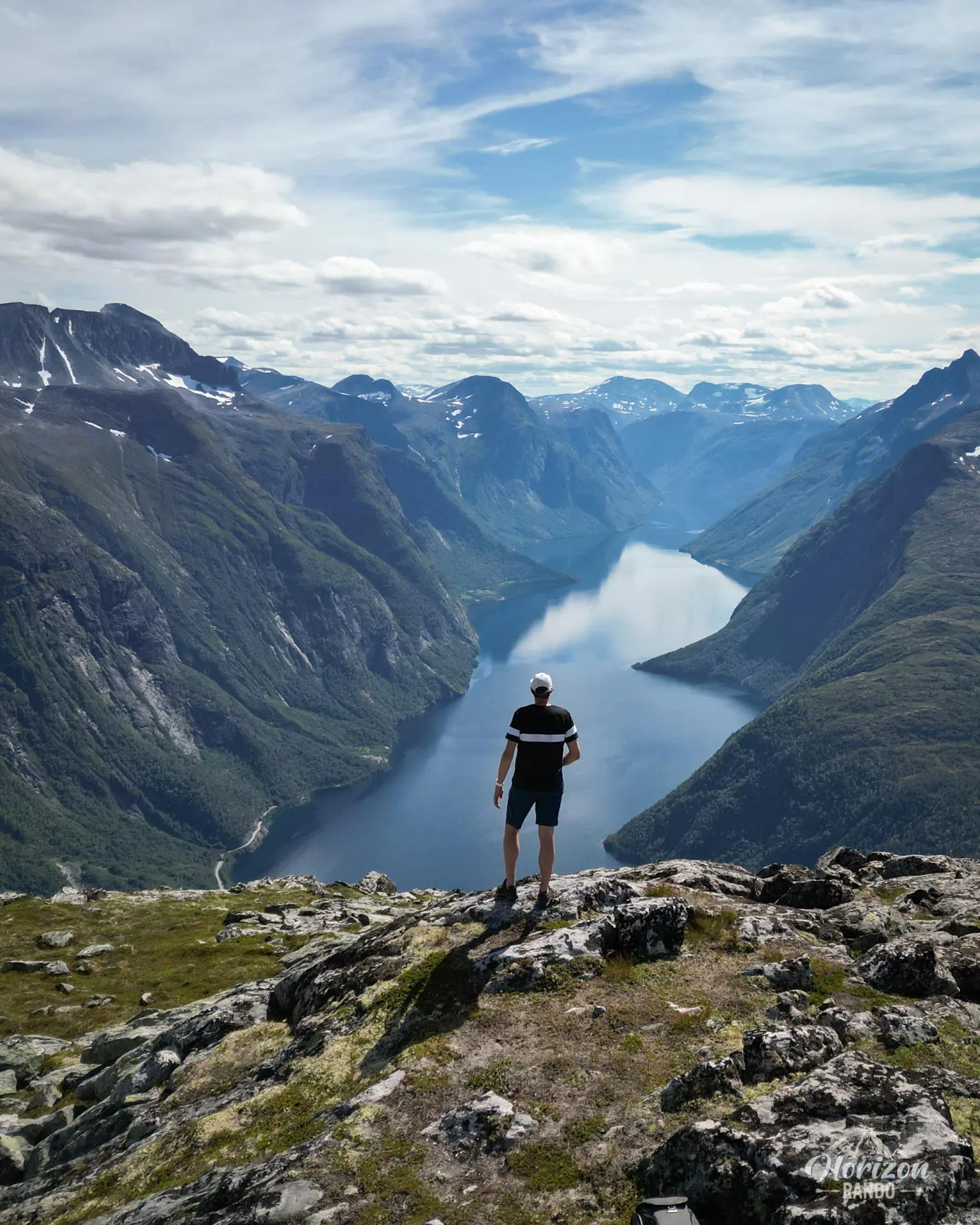 - Un panorama saisissant et vertical : Du sommet, la vue s’ouvre sur le lac Eikesdalsvatnet, long de près de 18 km et bordé de montagnes abruptes dépassant les 1 700 mètres plongeant dans ses eaux. Un spectacle vertigineux et majestueux.