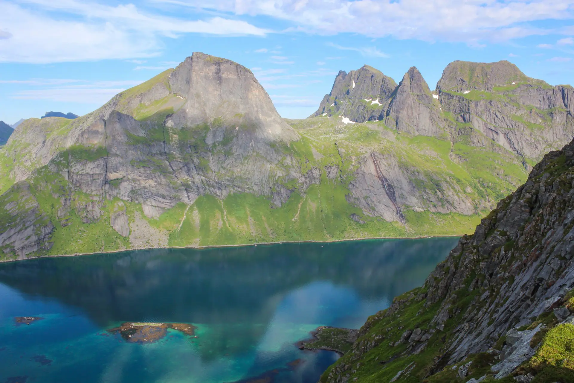 - Panorama sommital exceptionnel : vues grandioses sur les magnifiques chaînes de montagnes des Lofoten, les fjords aux eaux turquoise, les longues plages et les villages colorés.
