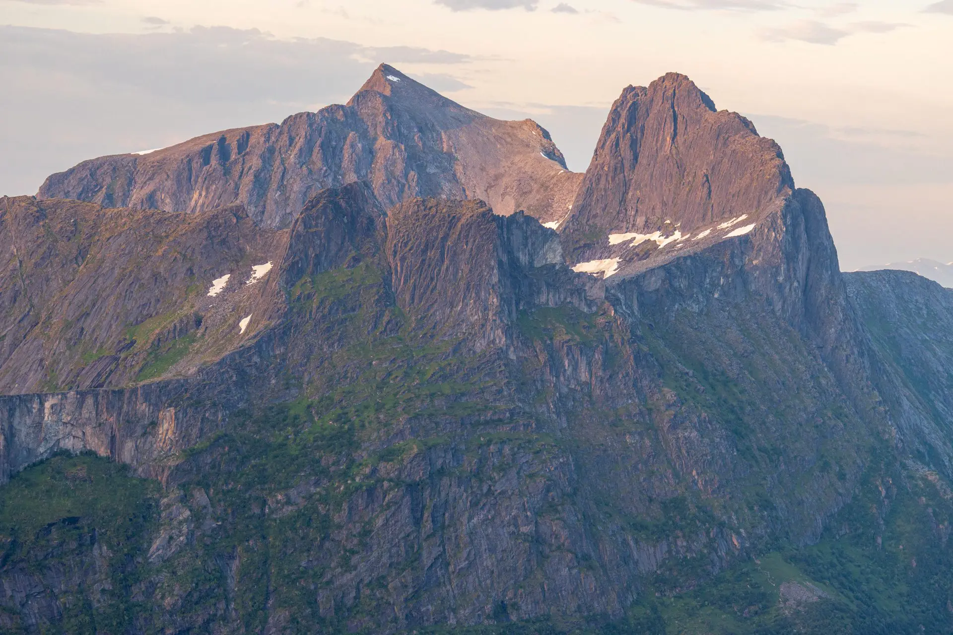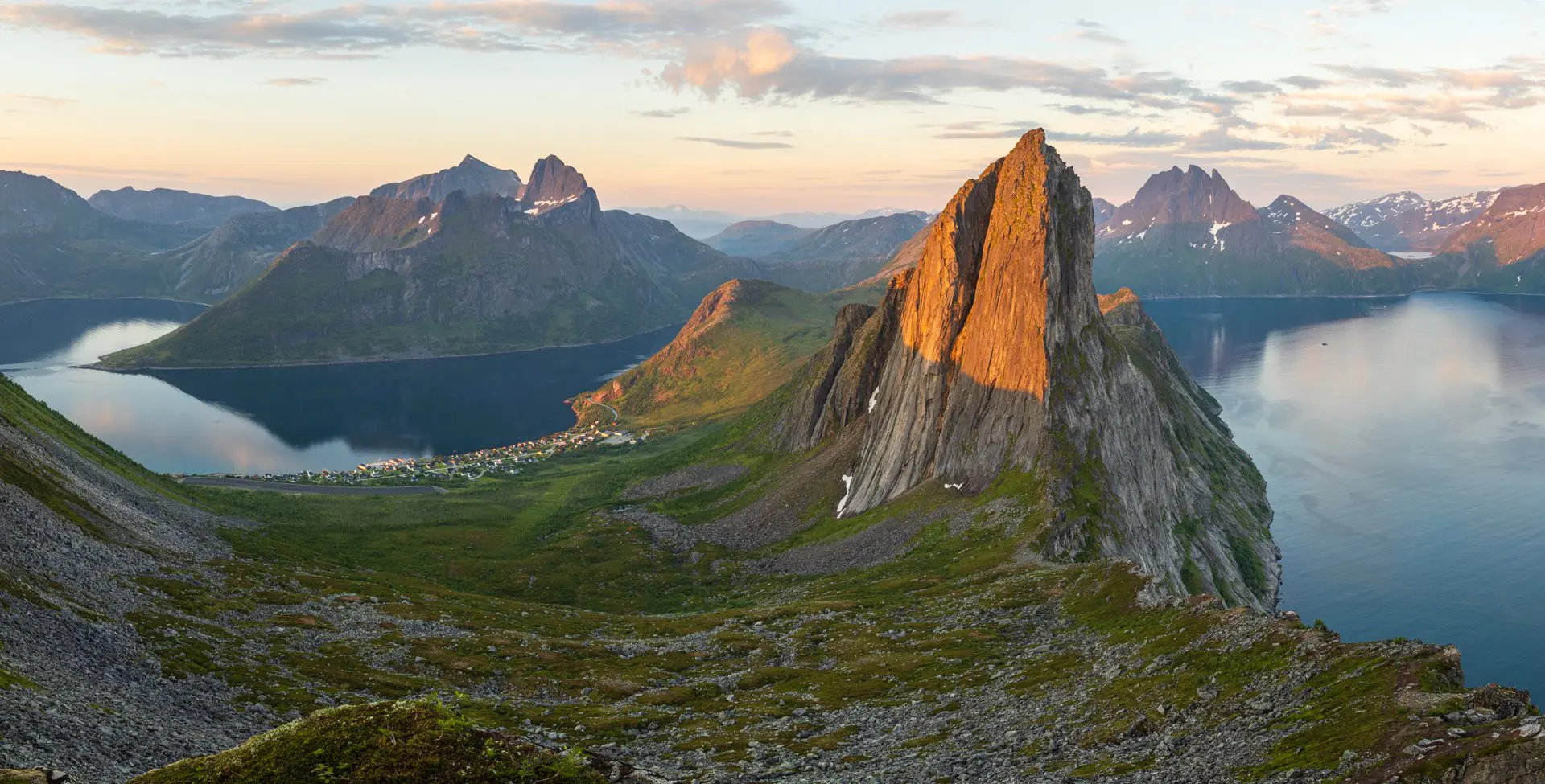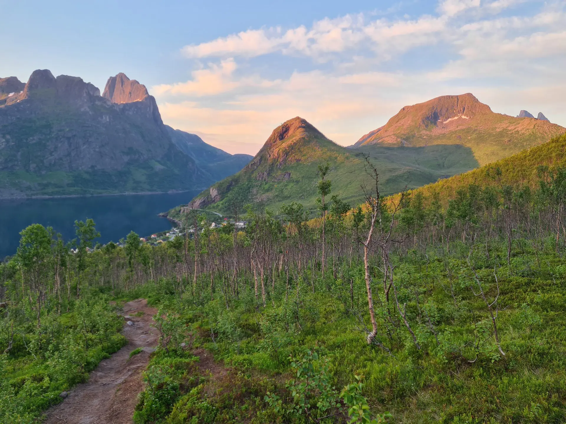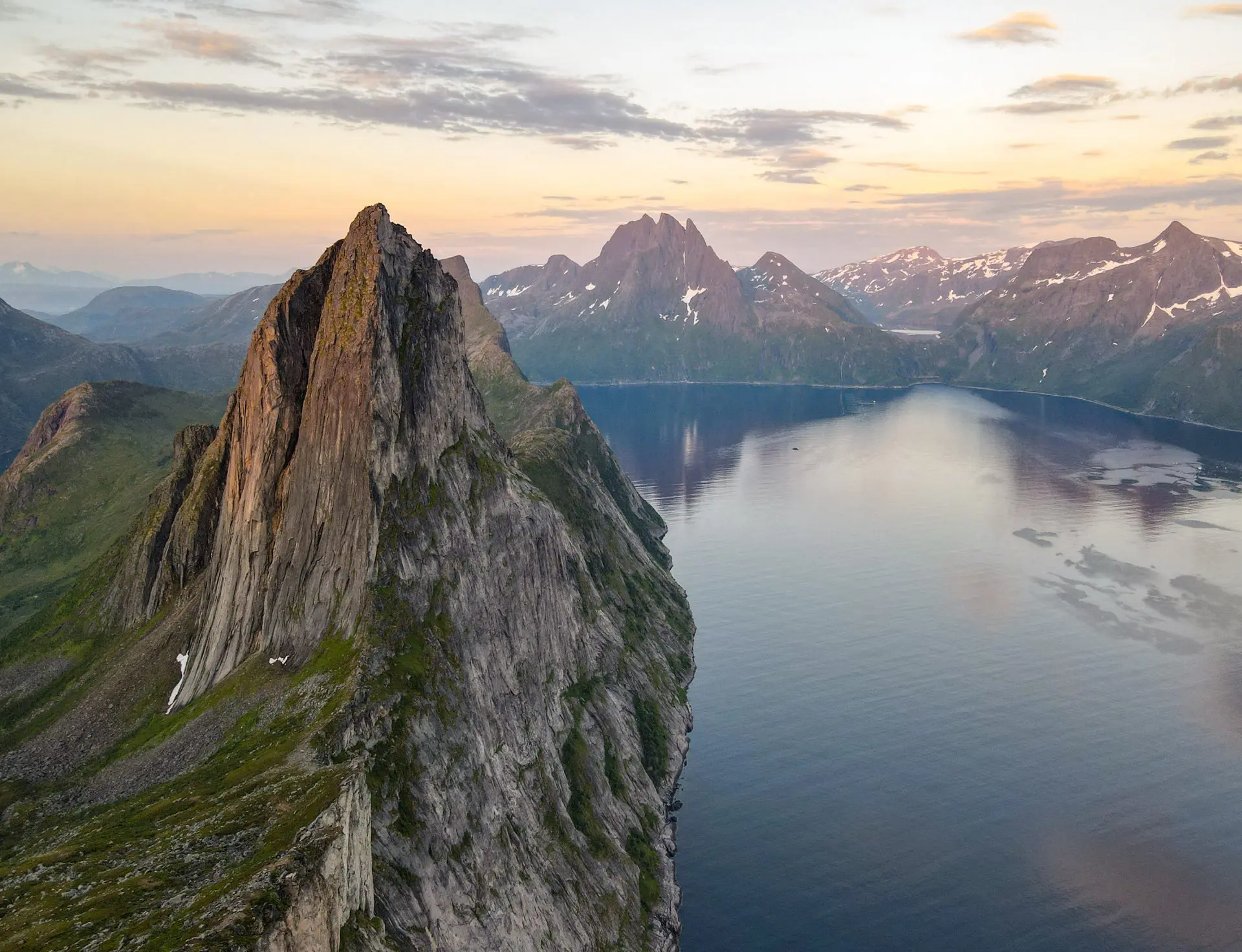 Cette randonnée courte mais intense vous récompense par des vues spectaculaires de chaque côté : Segla, bien sûr, mais aussi les fjords de Mefjorden et d'Oyfjorden, ainsi que sur la chaîne de Kongen au nord.
